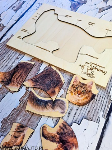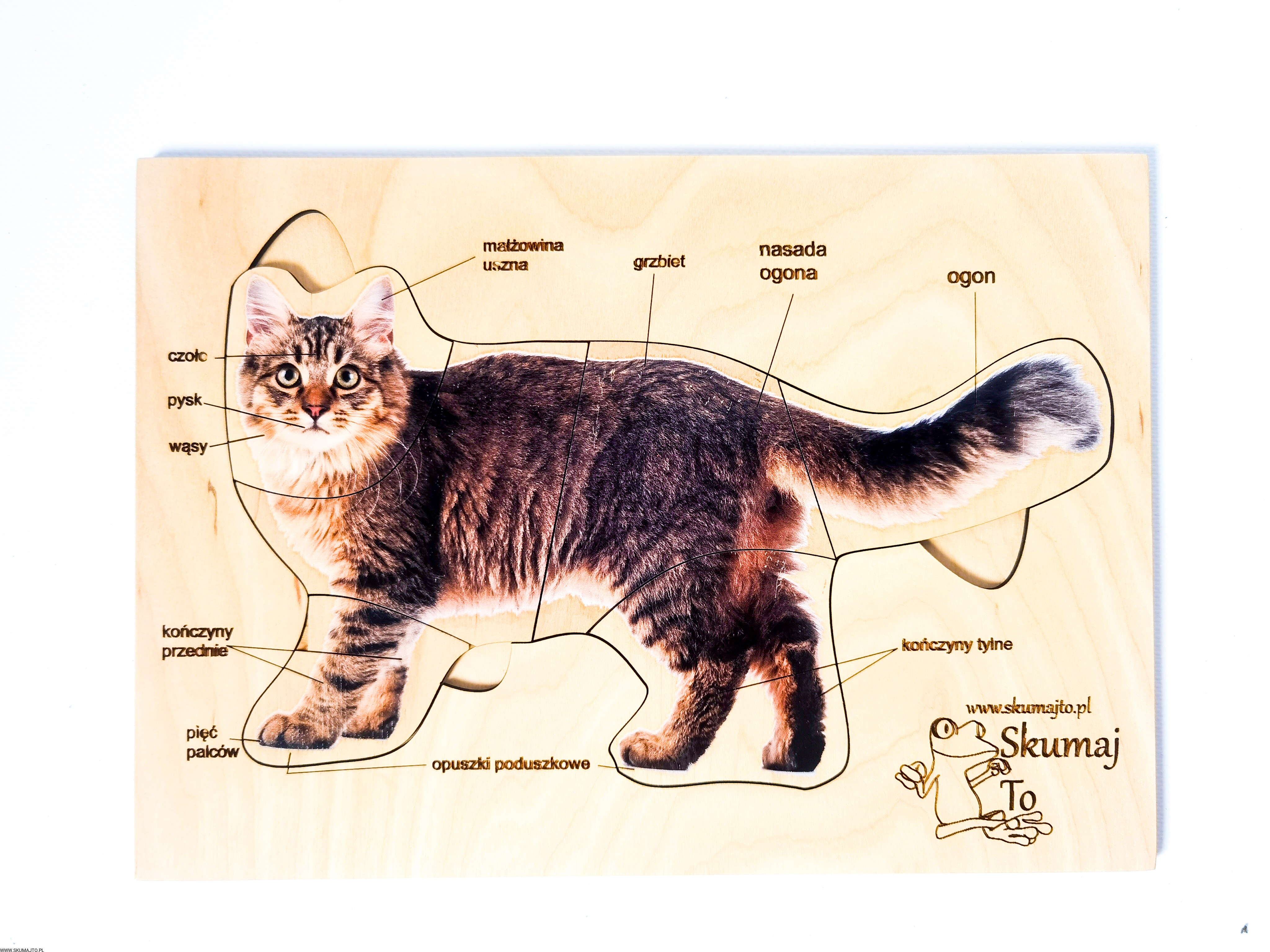 Budowa zewnętrzna kota, drewniana układanka, budowa kota