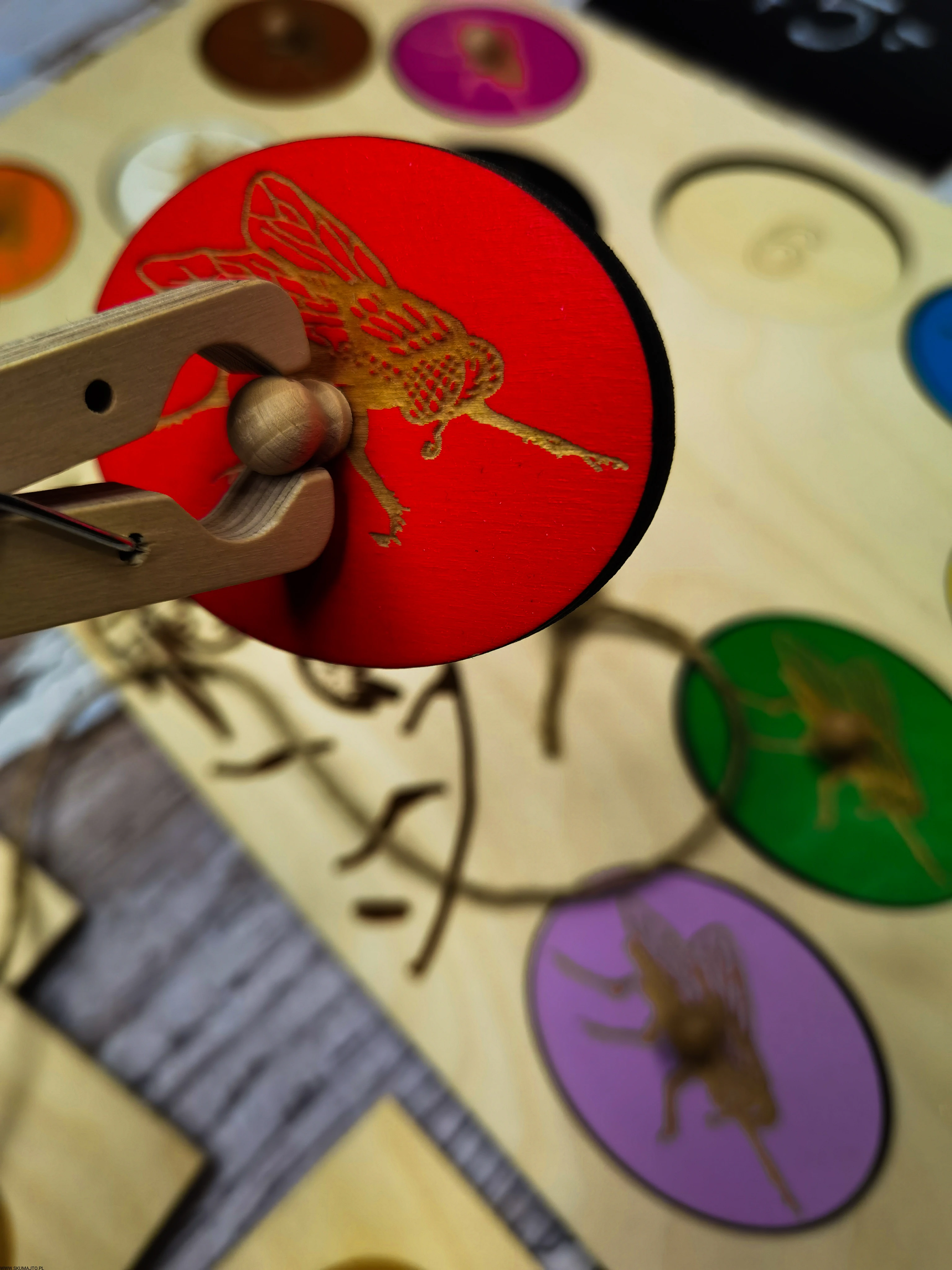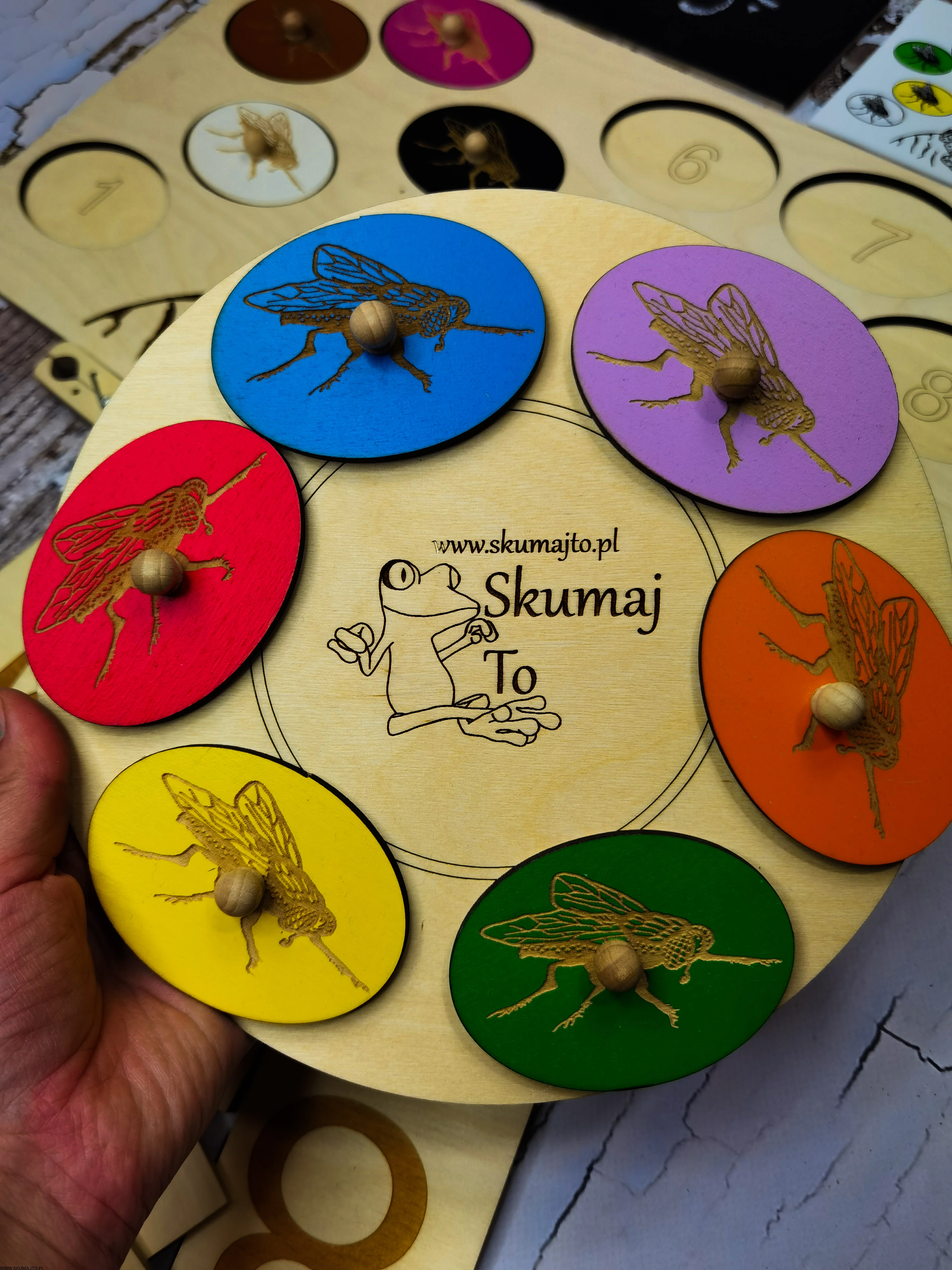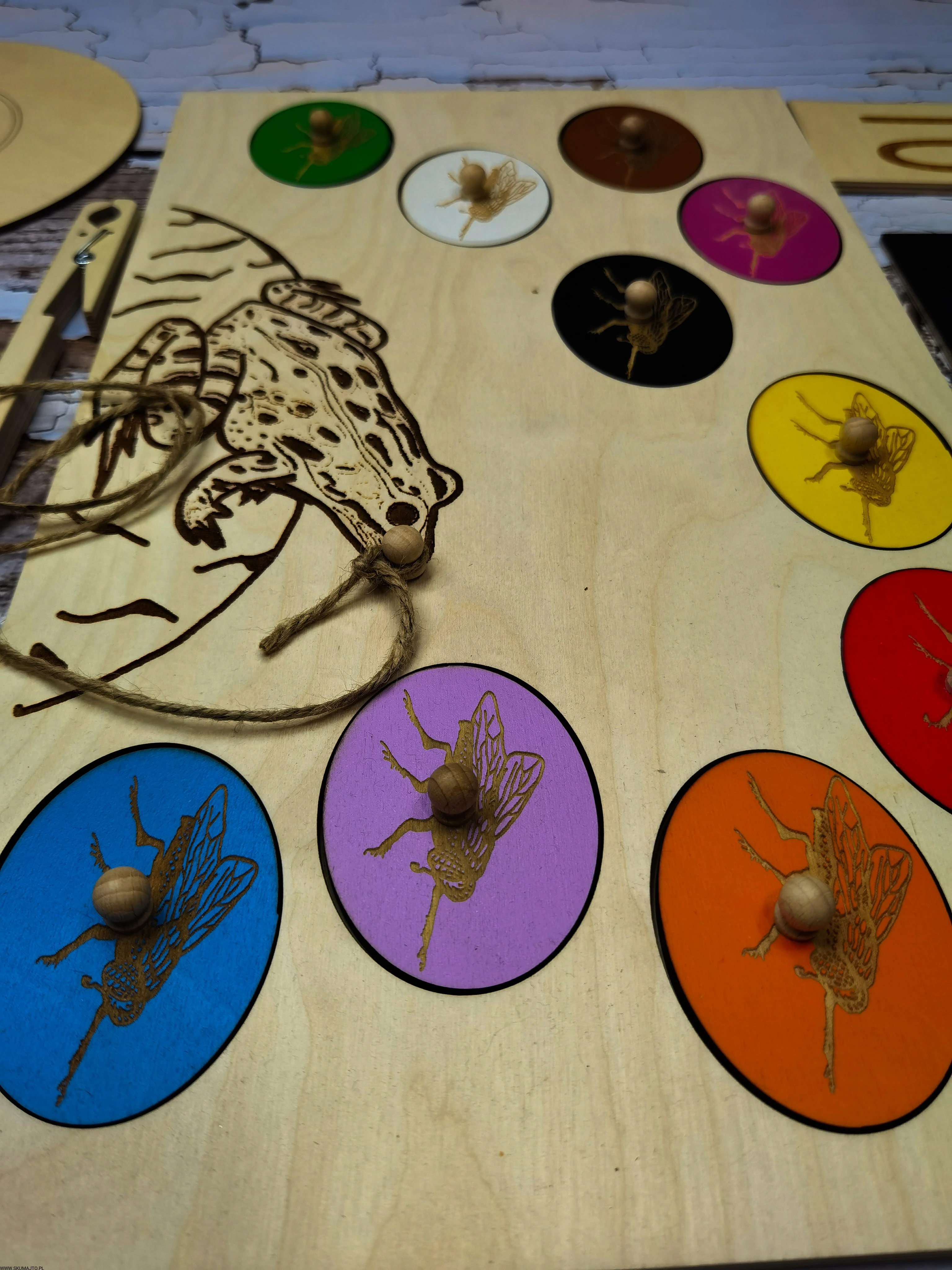 - Kolorowe Muchy: Różne kolory do układania.