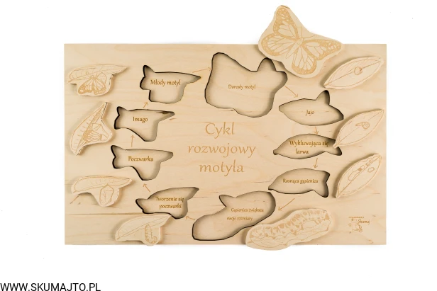 "Mama!!!" - krzyczy mój trzylatek, który uwielbia motyle! "gąsienica nam odlatuje!". Starszy syn podchodzi do sprawy bardzo poważnie - udało mu się obserwować cykl rozwojowy motyla we własnym domu na żywym okazie. A na podstawie tych wszystkich motylich miłości powstała układanka !