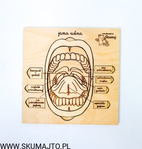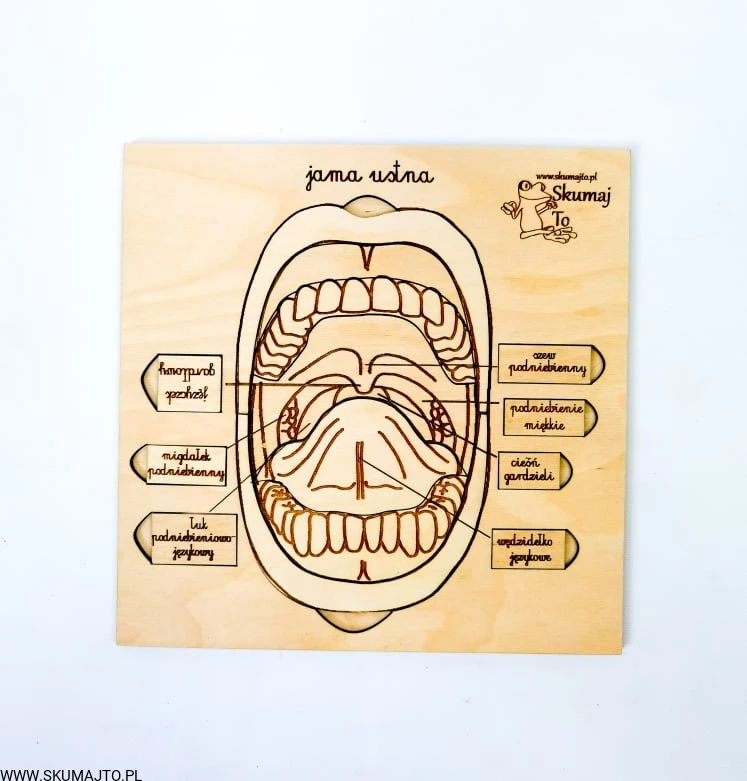 Drewniana układanka jama ustna, wyjmowane elementy z podpisami