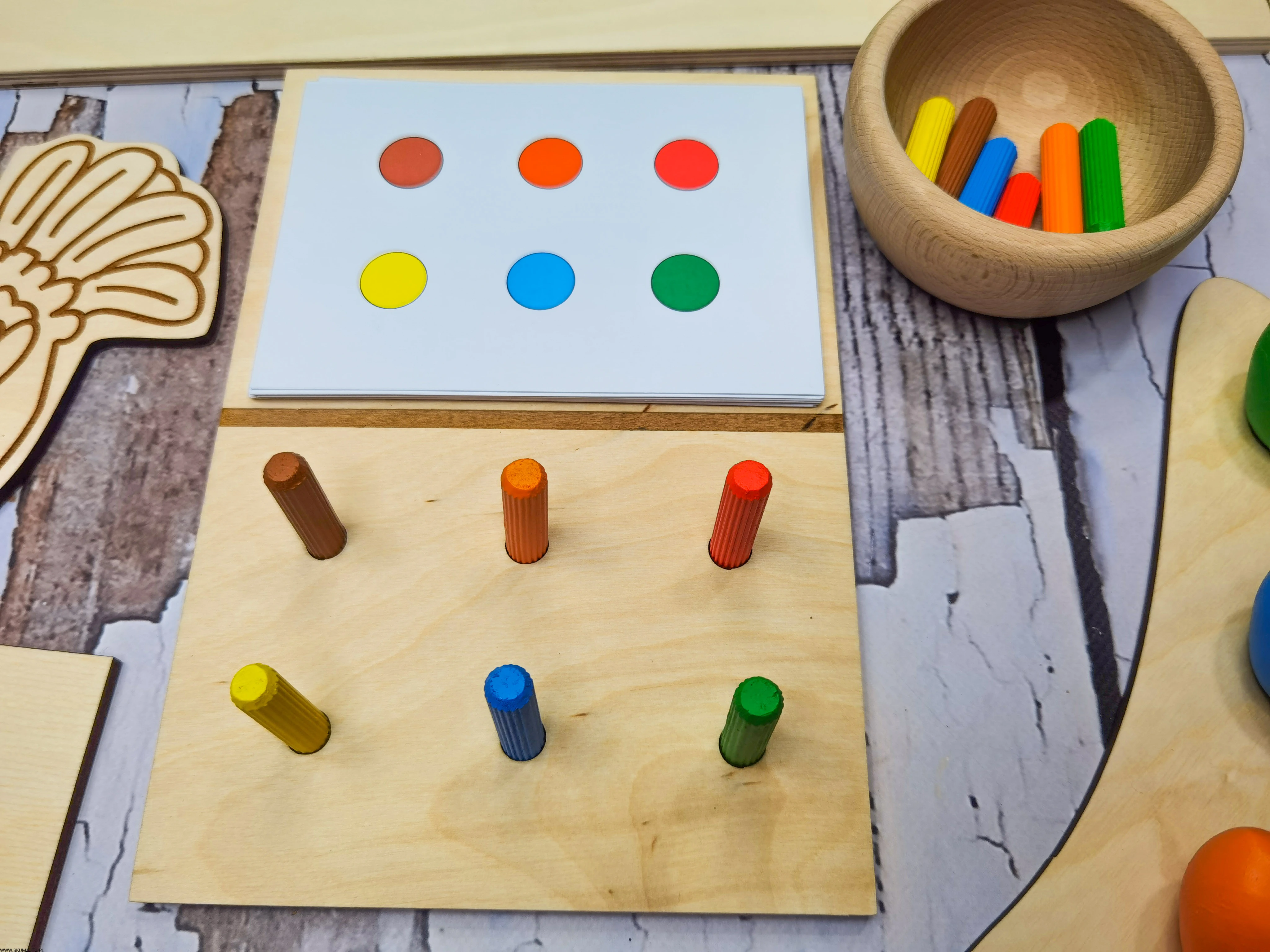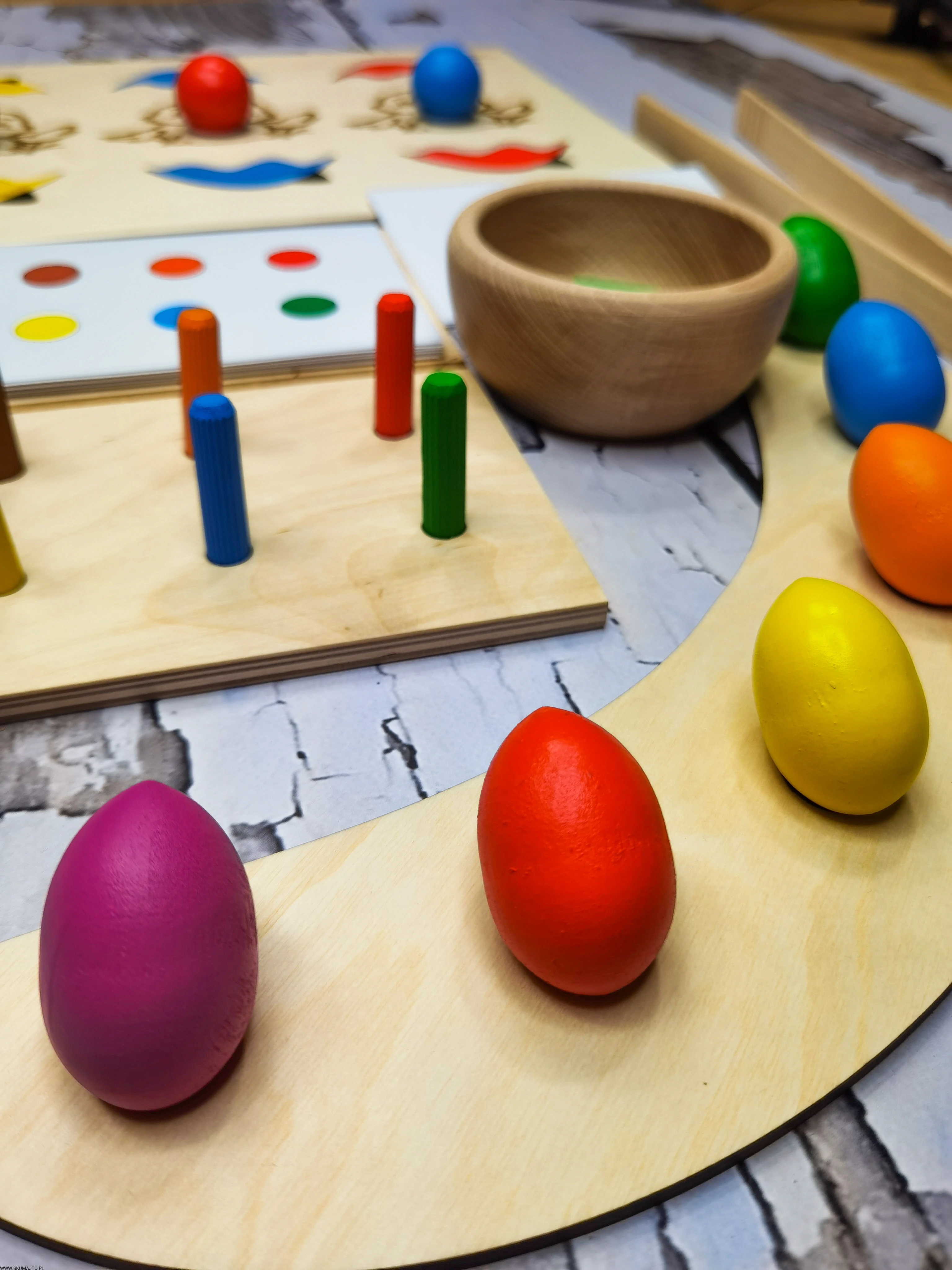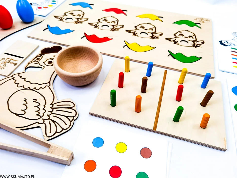 - Rozwój Motoryki i Precyzji: Używanie drewnianych szczypiec do przenoszenia elementów rozwija małą motorykę oraz koordynację ręka-oko.