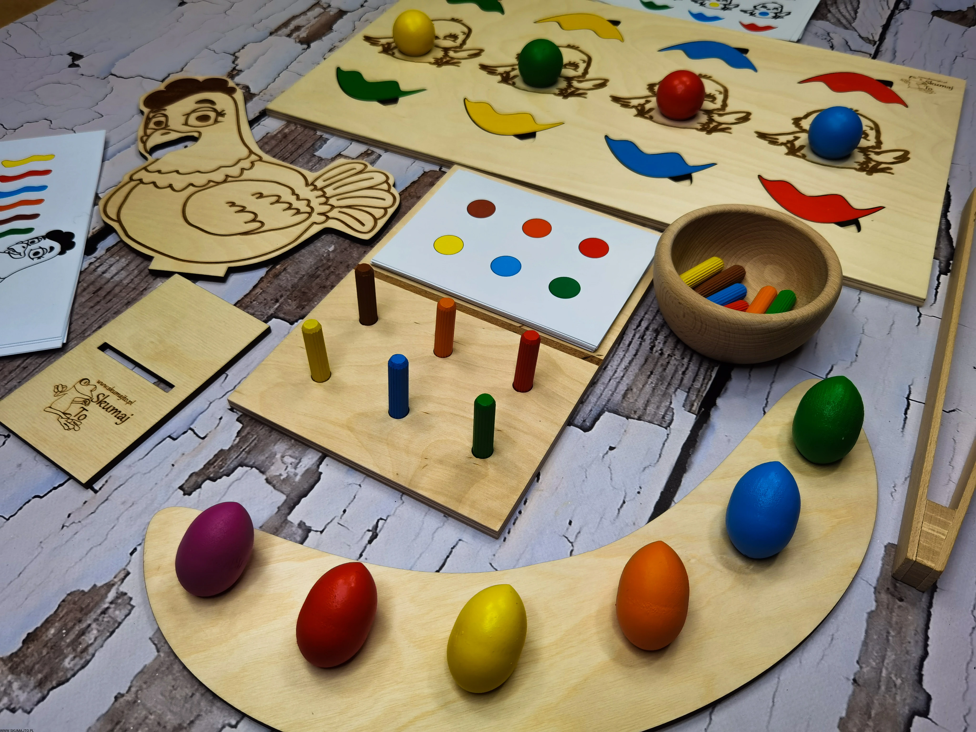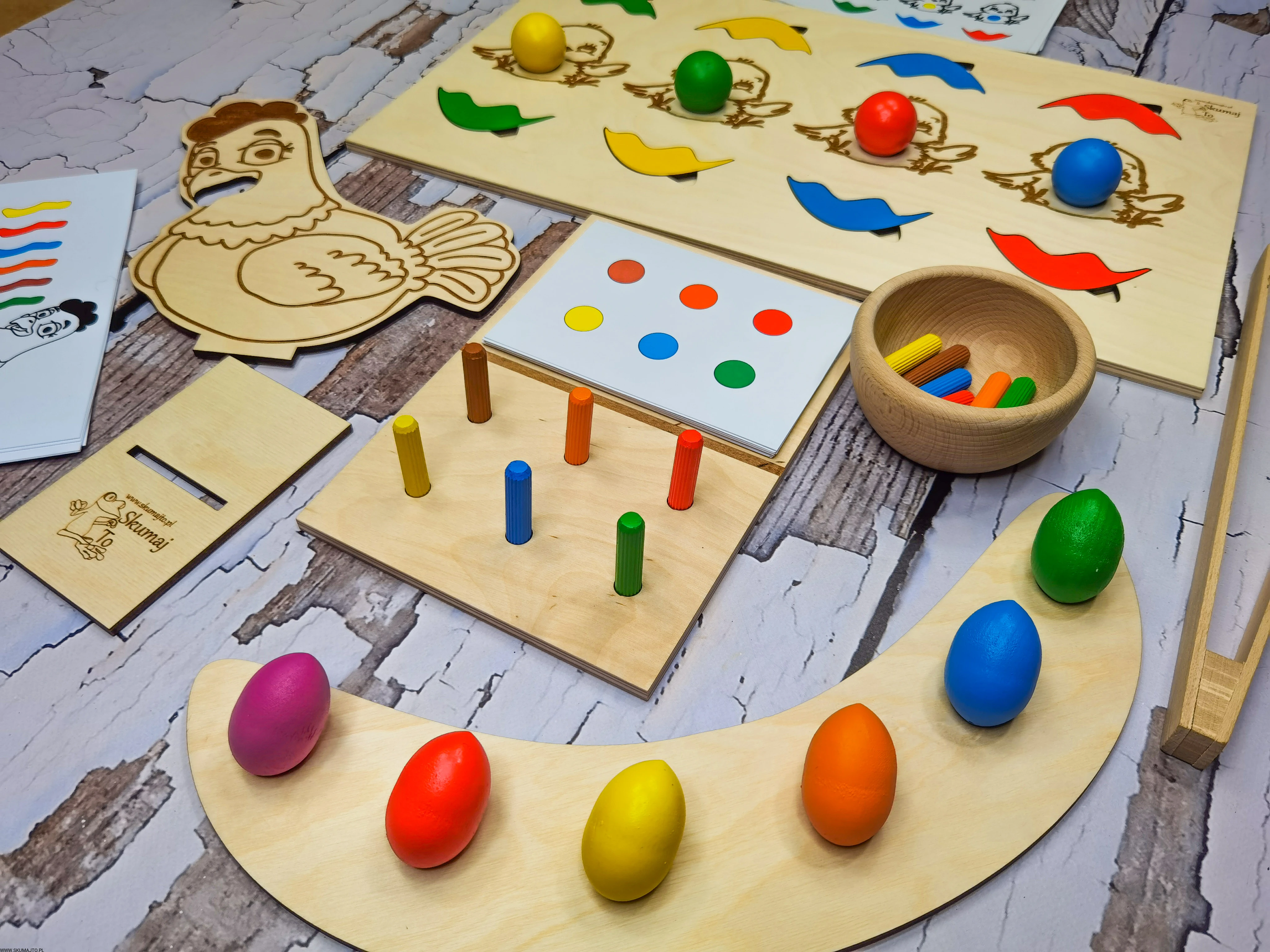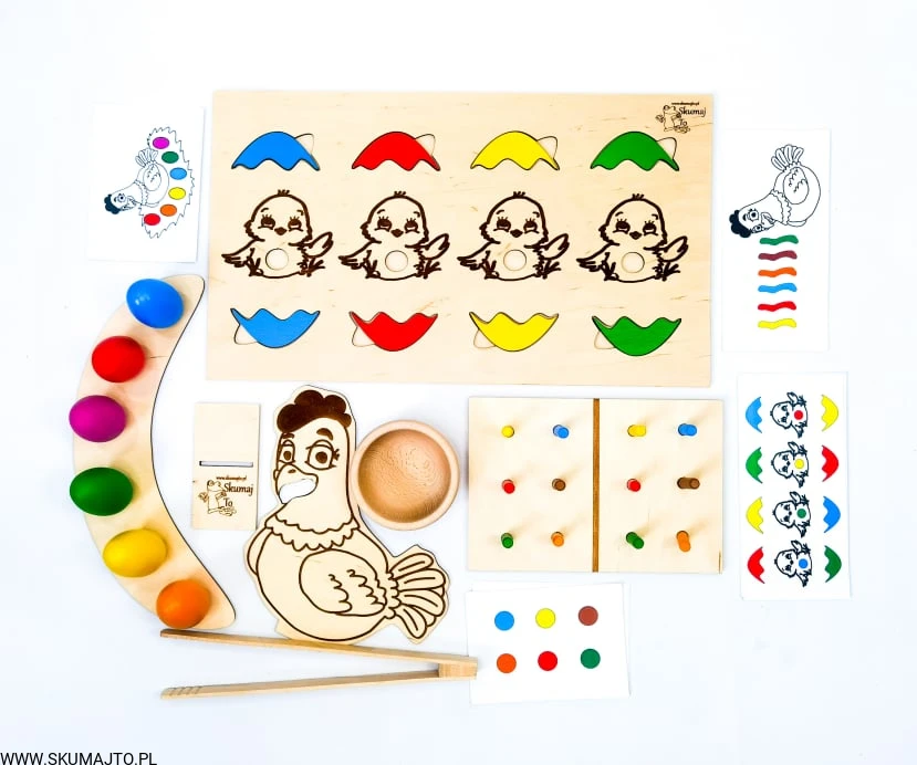 - Opieka nad Kurczaczkami: Gdy kurczaczki się wyklują, dziecko odwzorowuje kolejność skorupek i brzuszków, ćwicząc precyzję i logiczne myślenie.