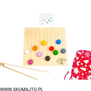Kolorowe bombki, odwzorowywanie, kolorowe kulki, szczypce, motoryka