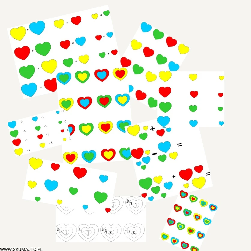 - Kodowanie i Litery: Urozmaicaj zabawę, prosząc dziecko o odwzorowanie serc z kart pracy, kodując kolory lub litery.