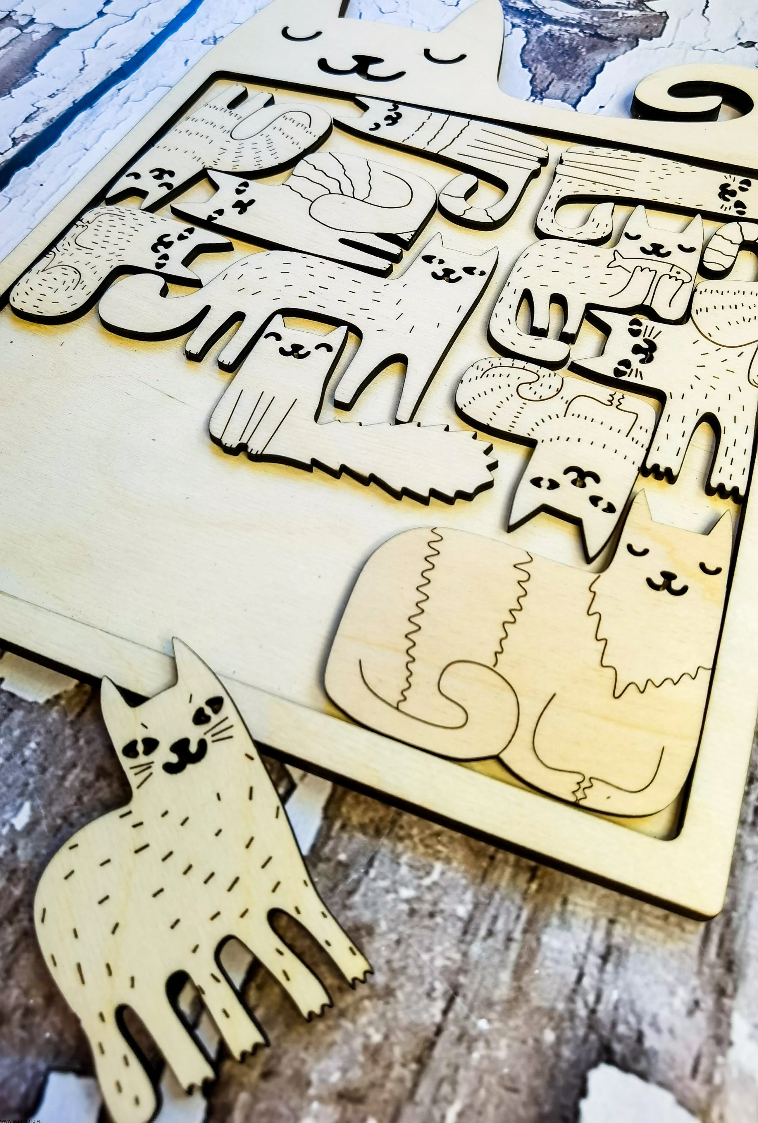 - Drewniane kotki do układania