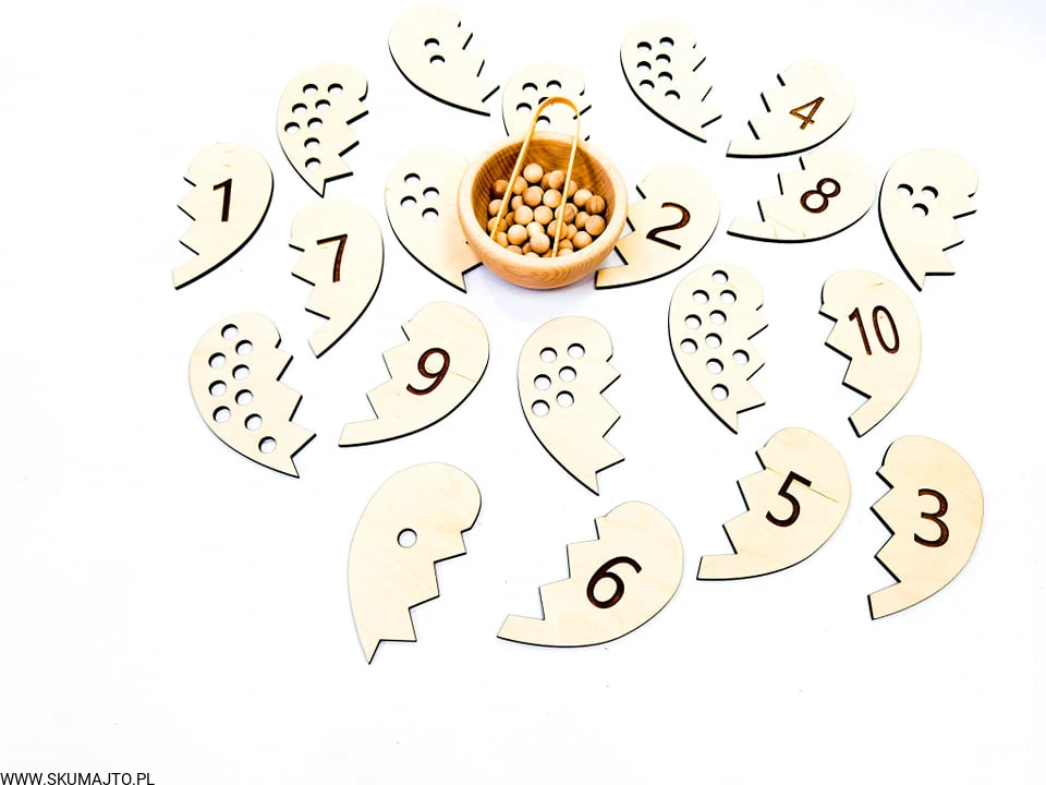 Matematyka może być fascynującą przygodą! Dzieci uwielbiają przeliczać nawet najdrobniejsze rzeczy, takie jak ilość ziemniaków na talerzu podczas obiadu. Wychodząc naprzeciw ich chłonności do liczenia, stworzyliśmy wyjątkową układankę "Matematyczne Serca", która uczy cyferek i przeliczania w zakresie do 10.