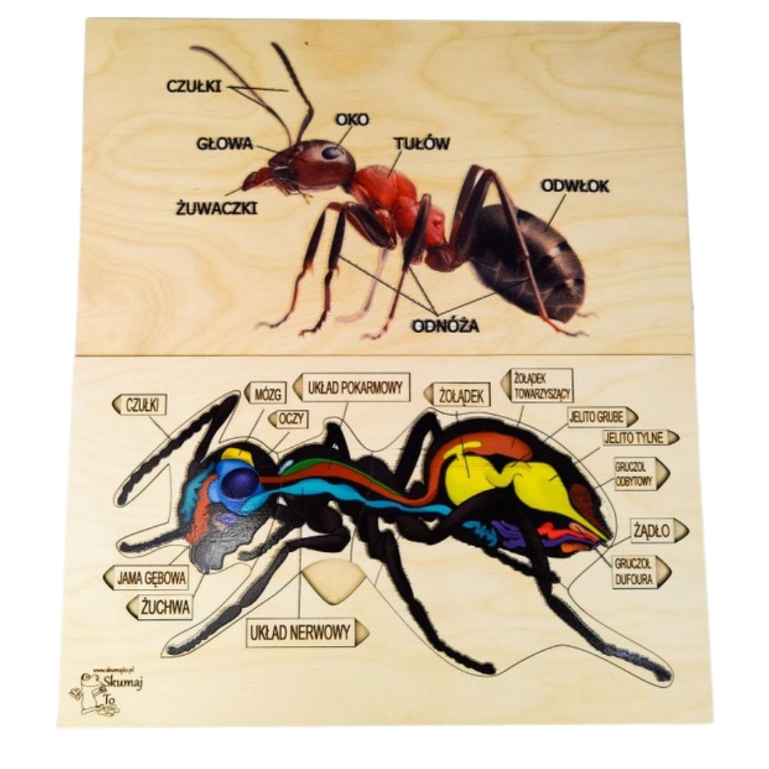 Przykładem takiego rozwiązania jest układanka edukacyjna przedstawiająca anatomię mrówki, która pozwala dzieciom uczyć się poprzez działanie.