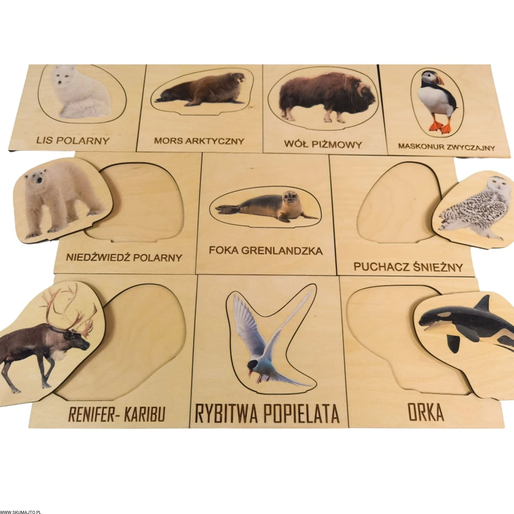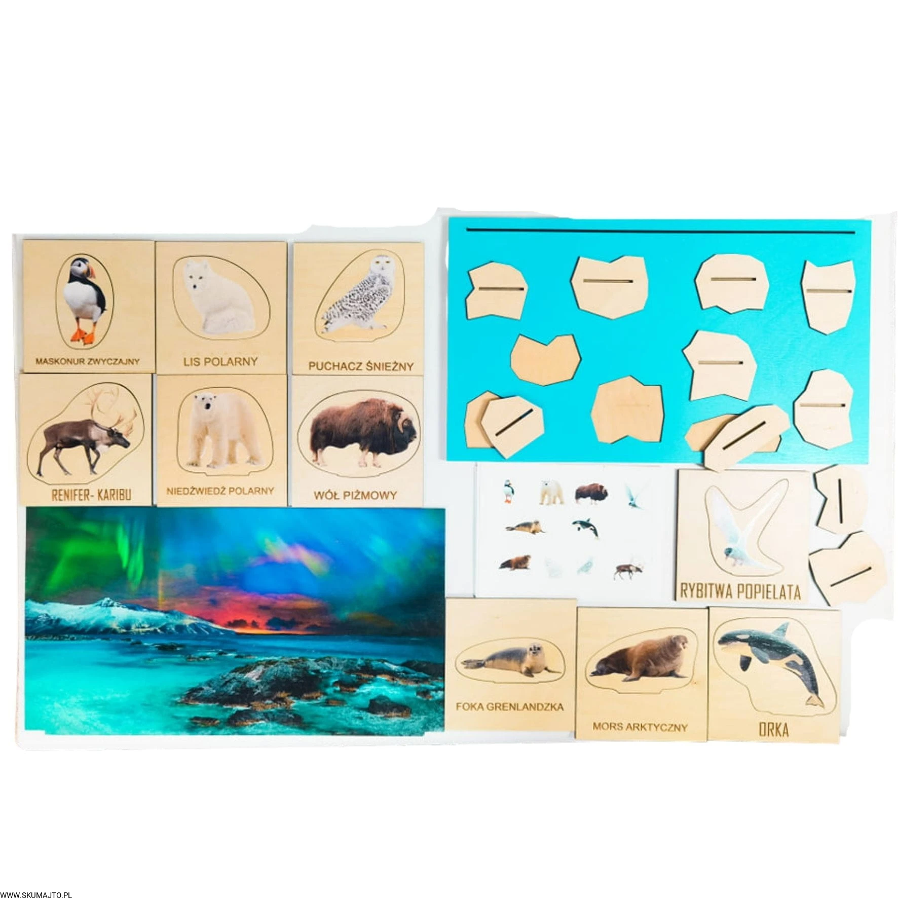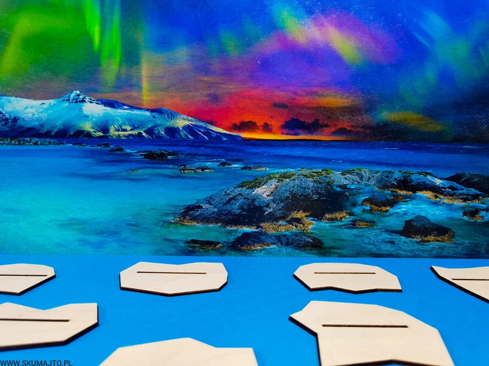 Arktyka, drewniana układanka, makieta, zwierzęta Arktyki, zorza polarna, odwzorowywanie
