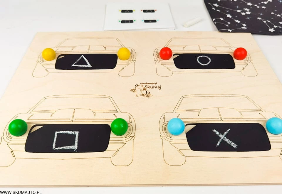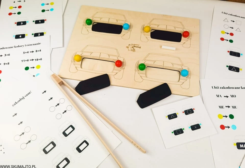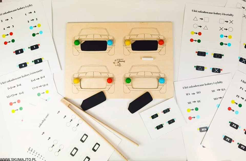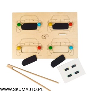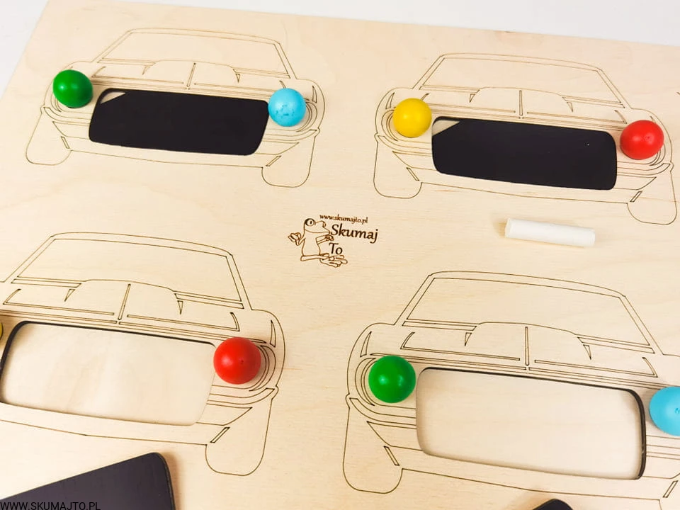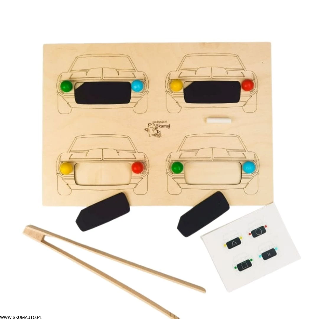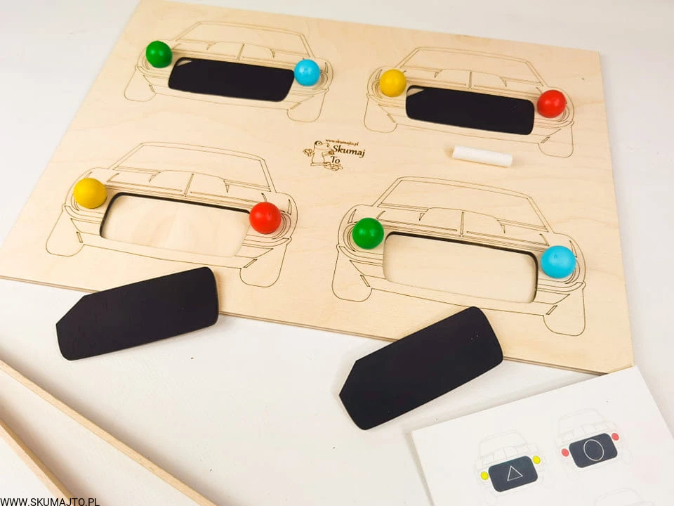 Auta, drewniana układanka, samochody, odwzorowywanie, nauka kolorów