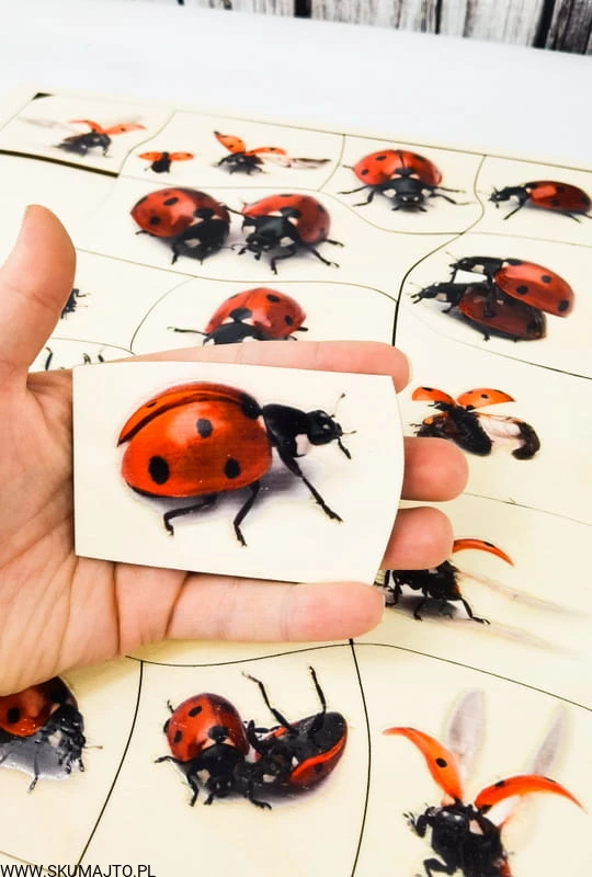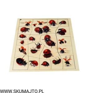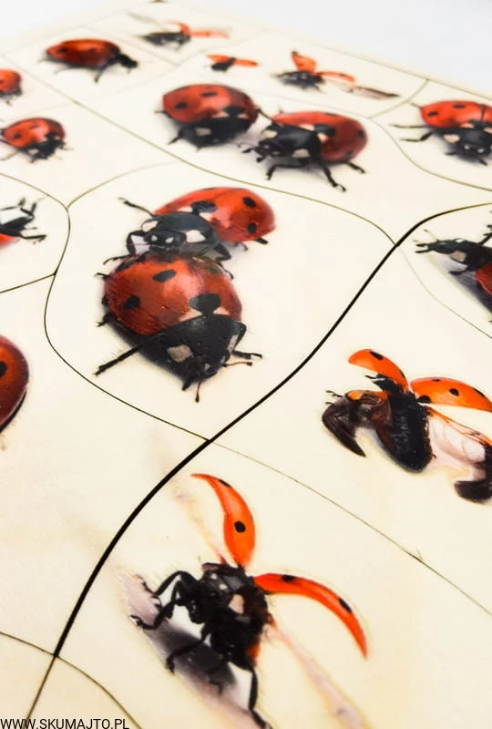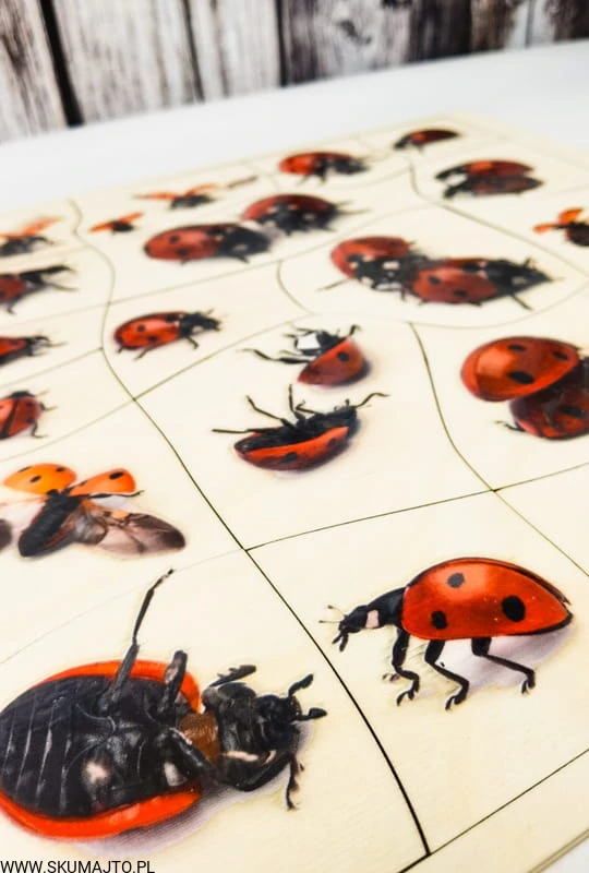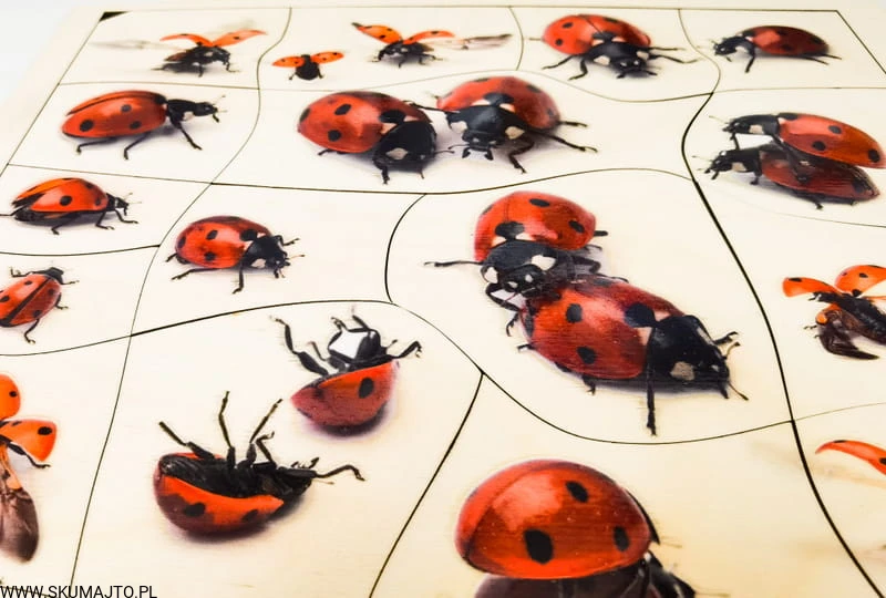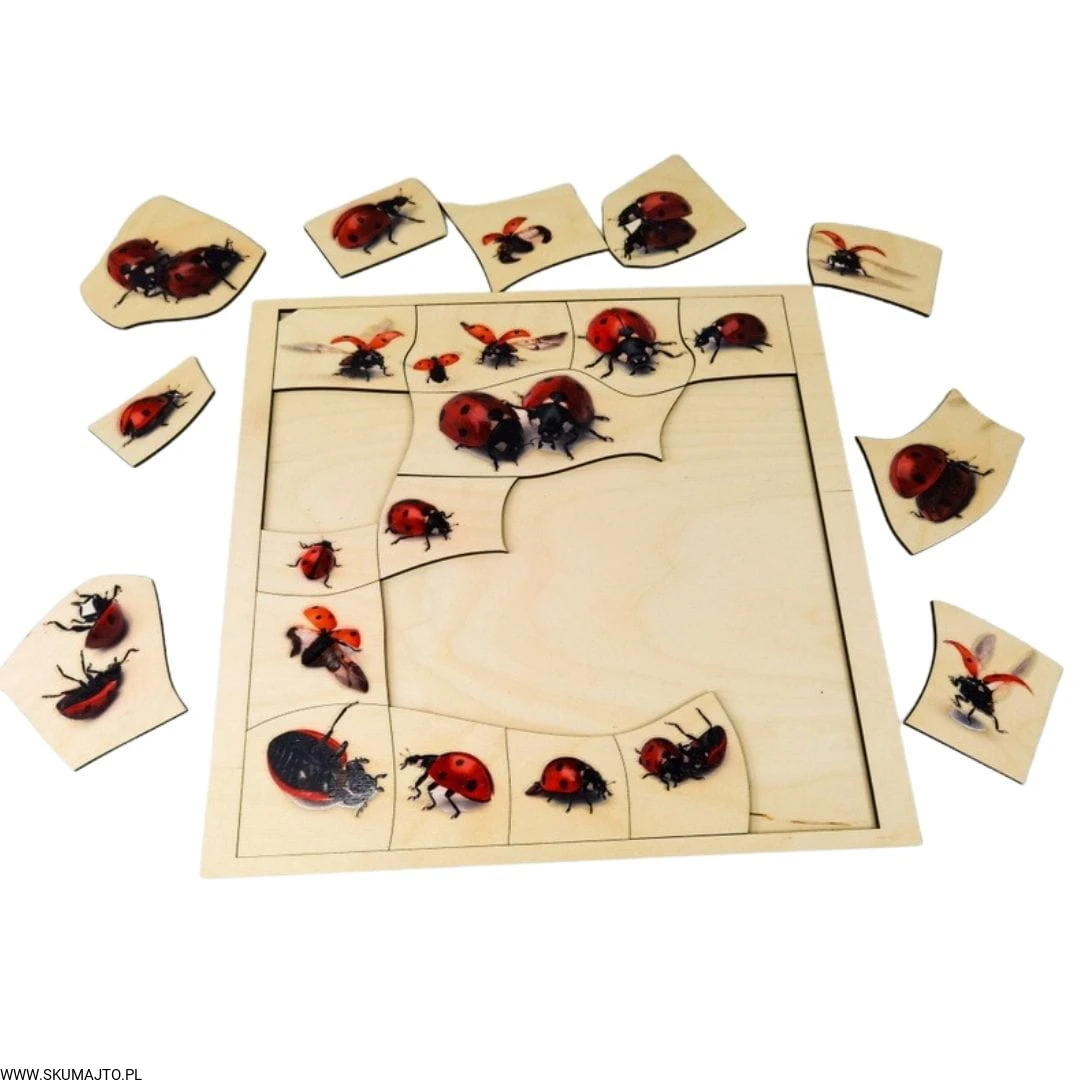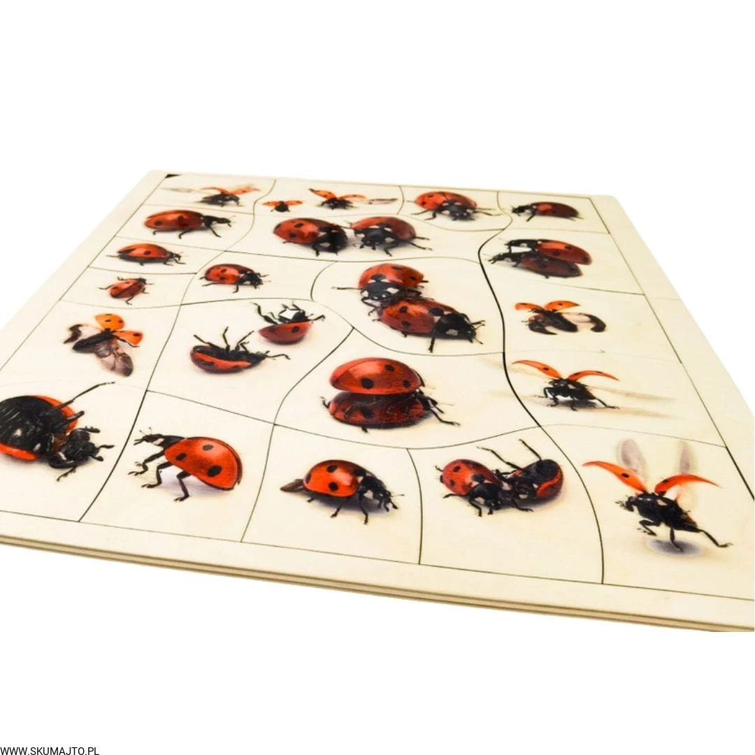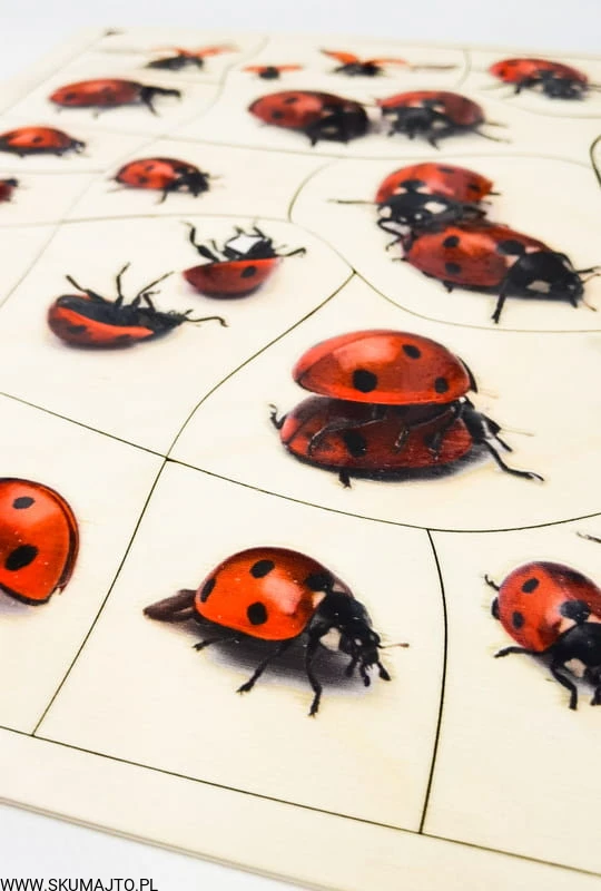 Biedronki, drewniana układanka, puzzle z biedronkami, logiczna układanka