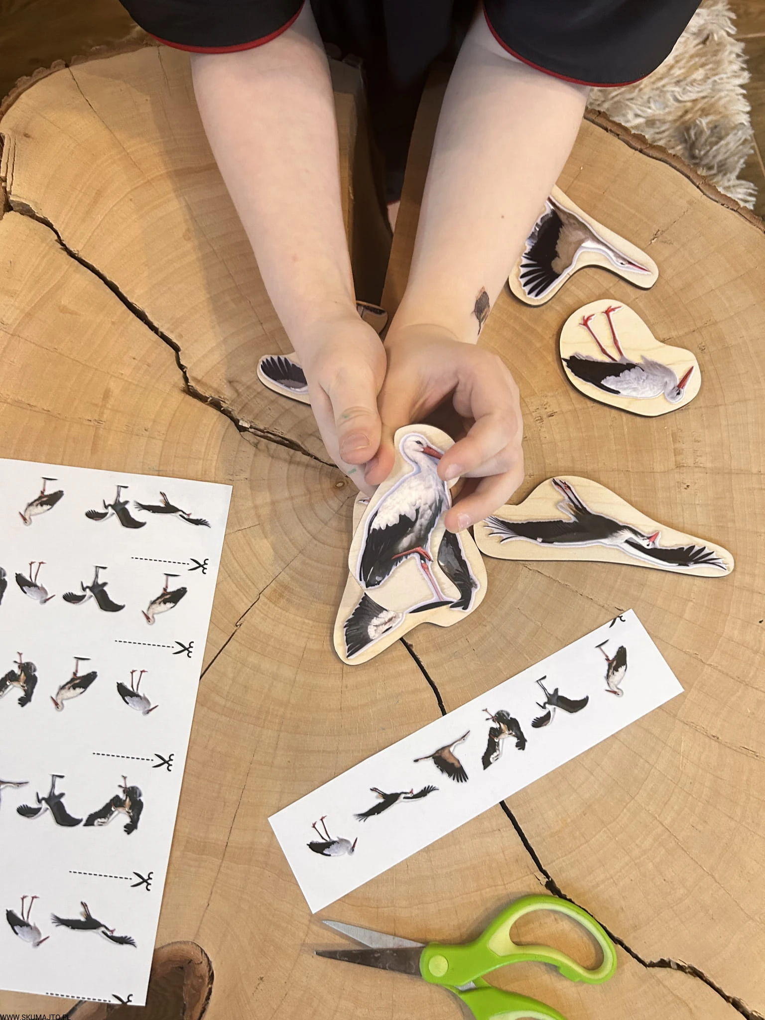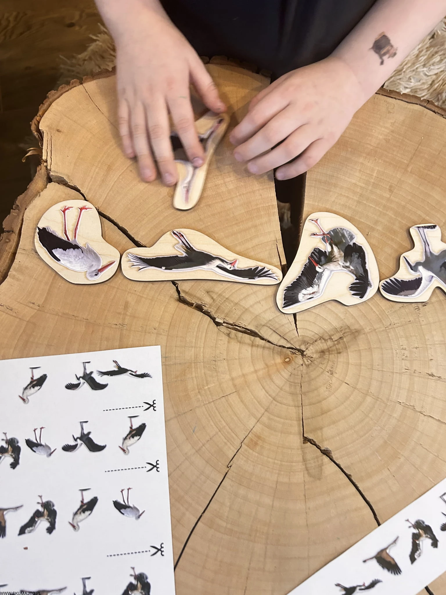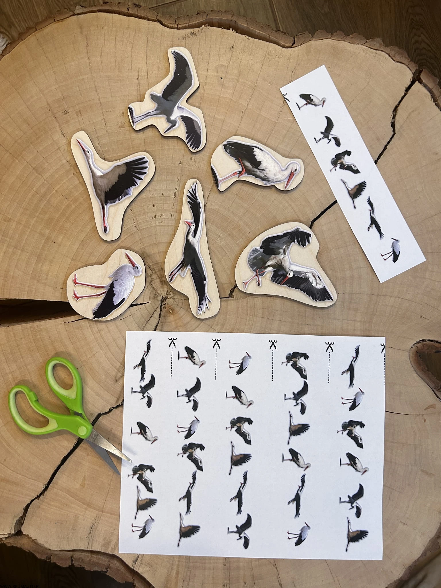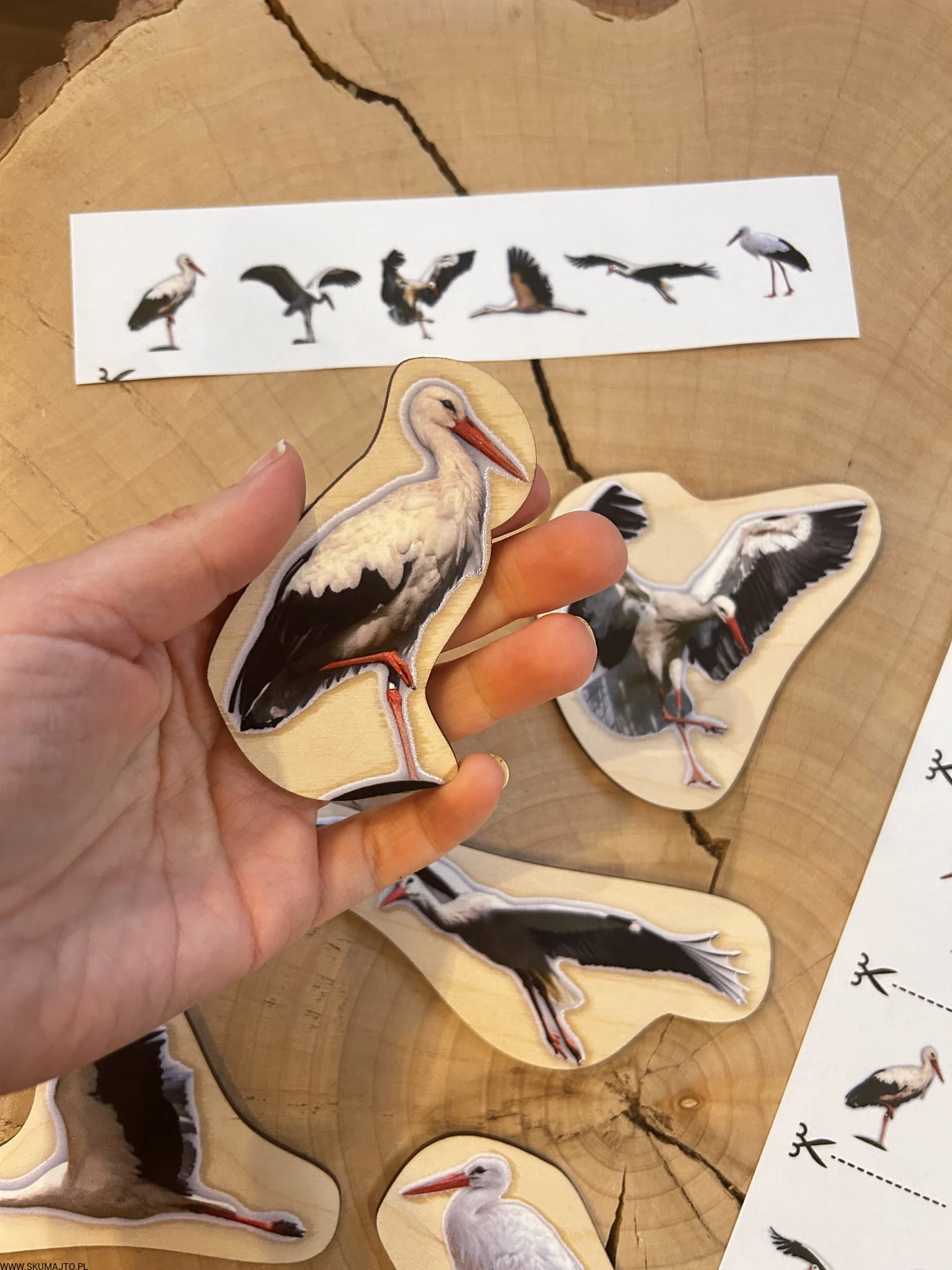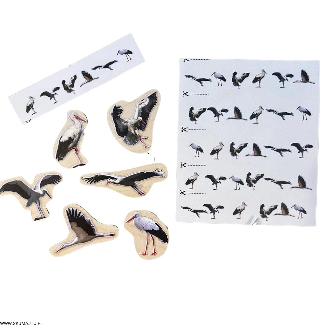 Bociany, drewniana układanka do odwzorowywania