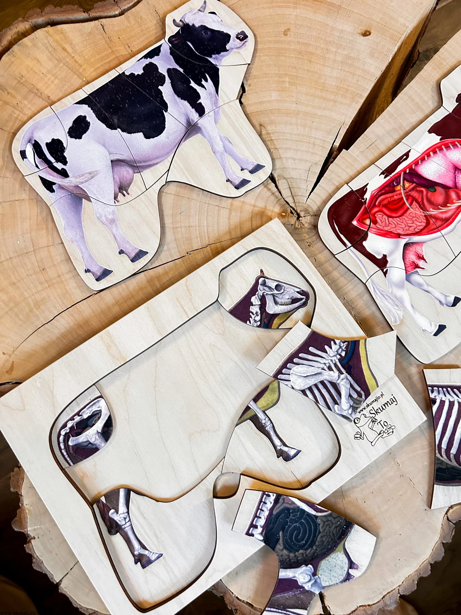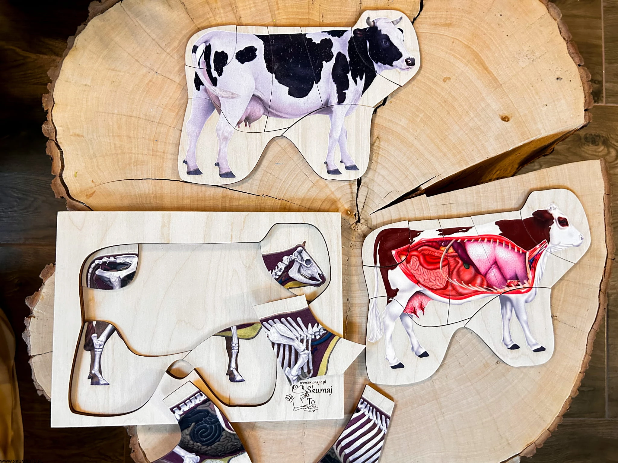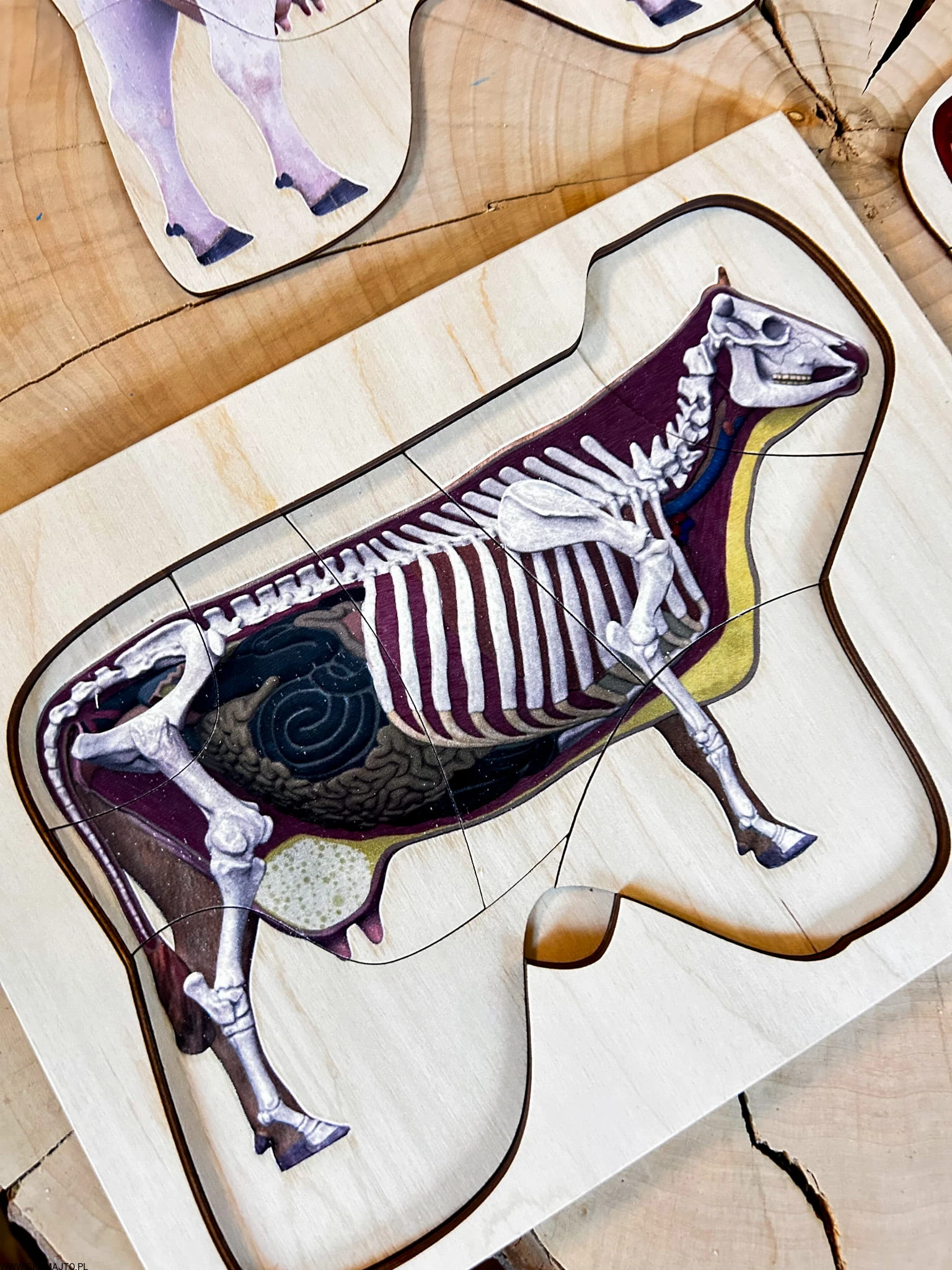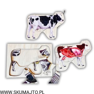 Budowa krowy, drewniana zabawka edukacyjna, montessori