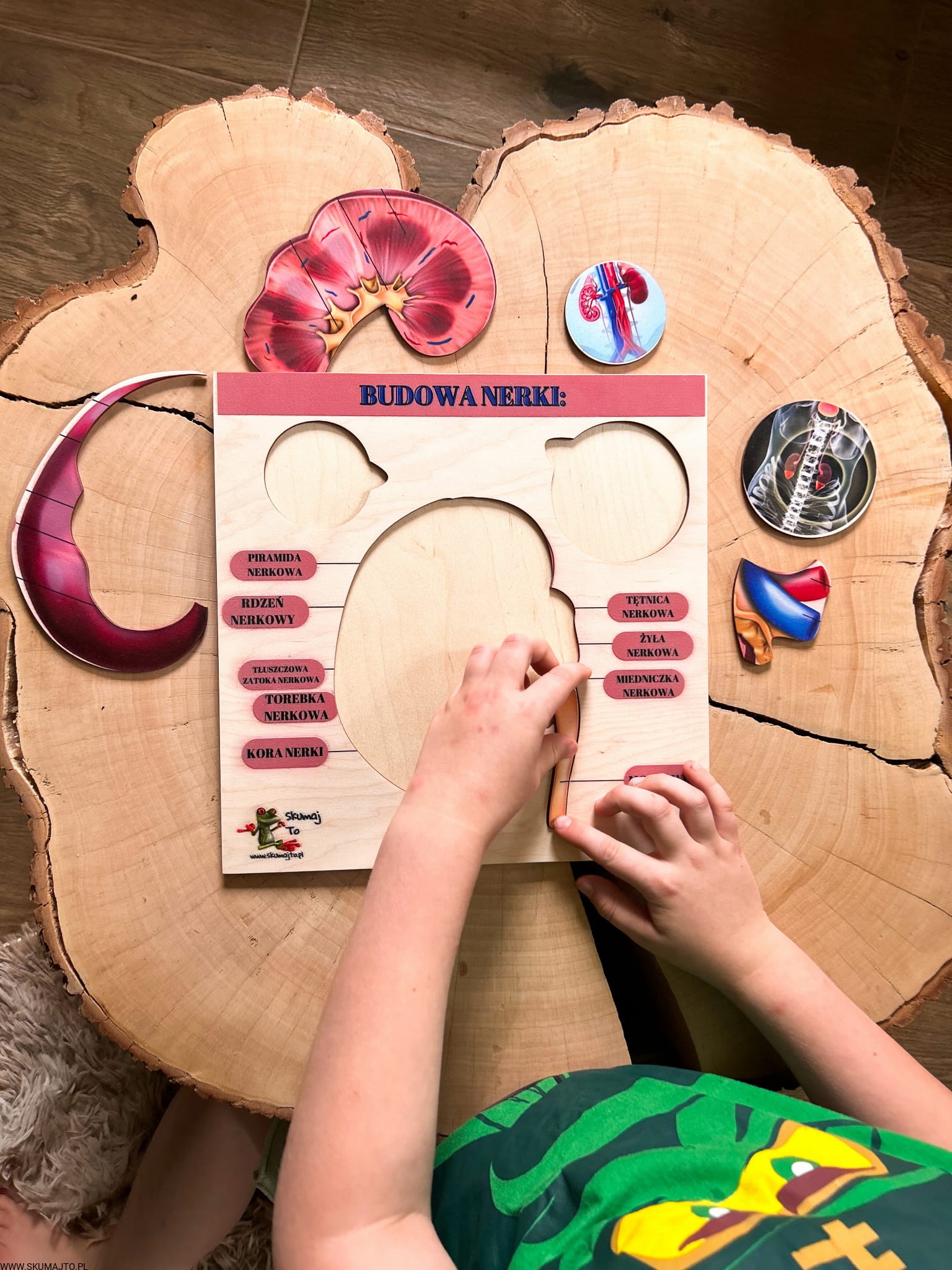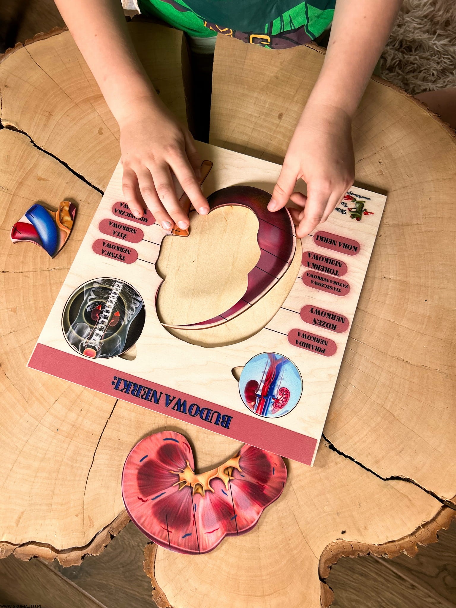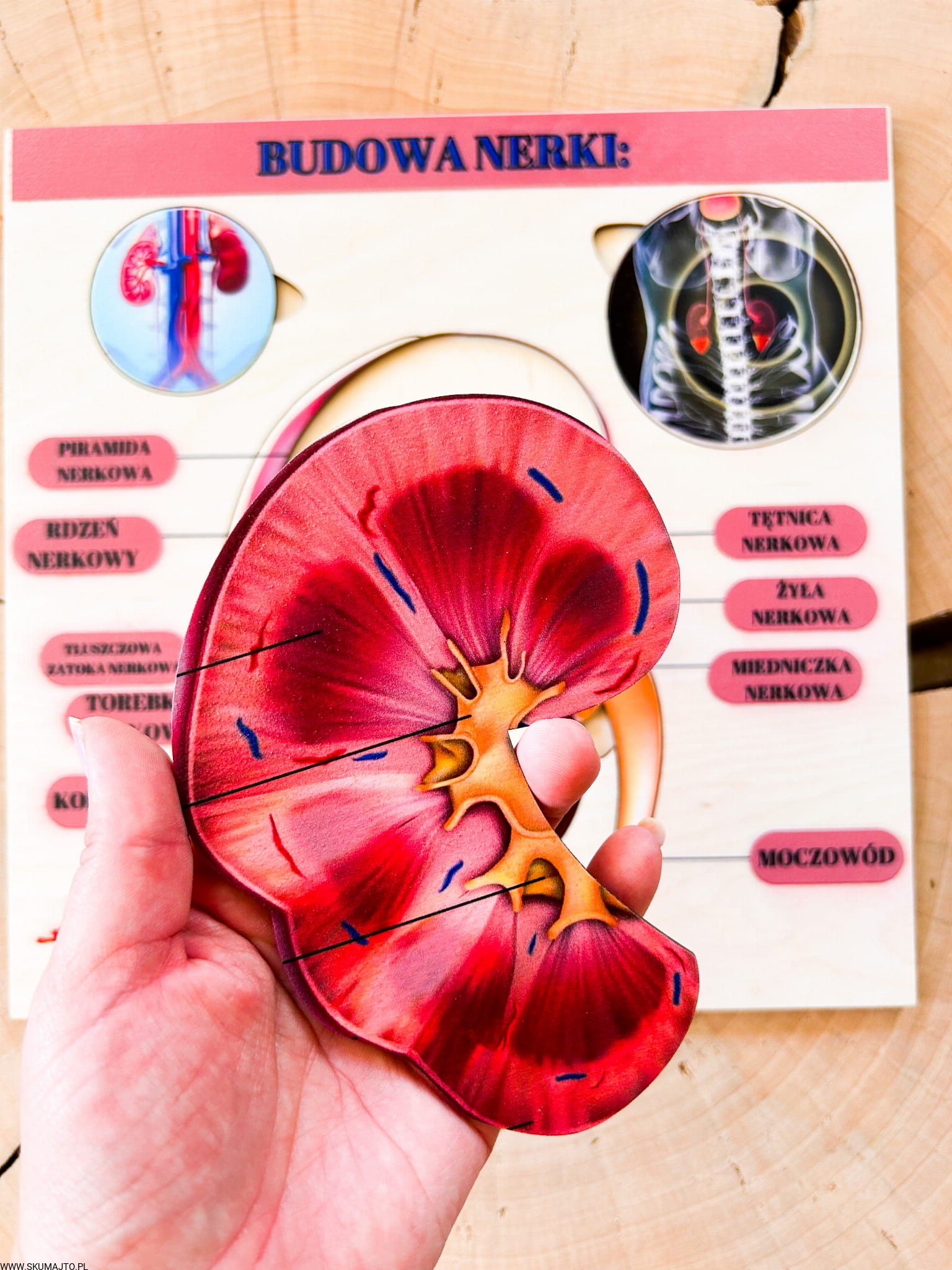Budowa nerki, anatomia nerki, nerka, drewniana układanka