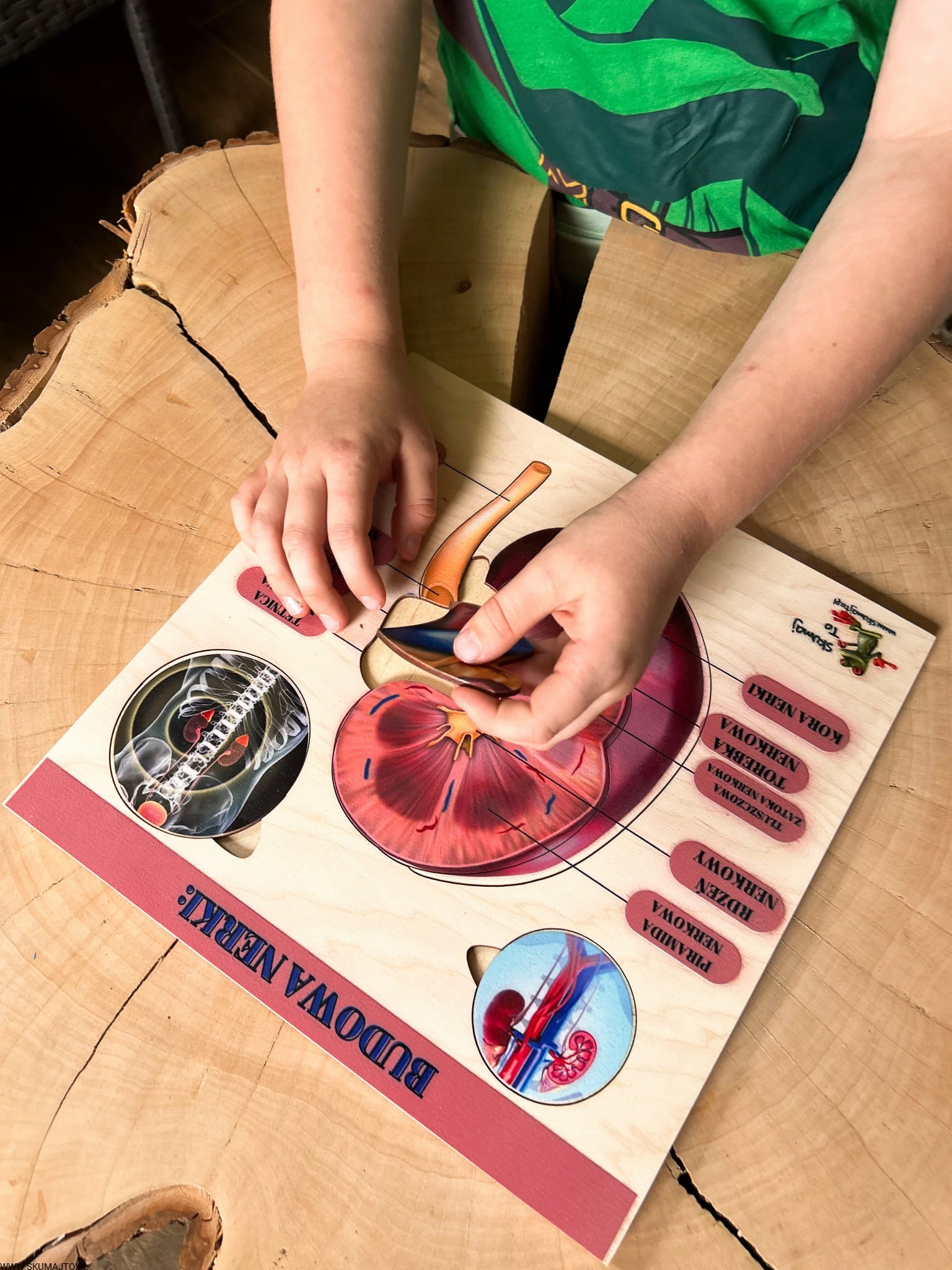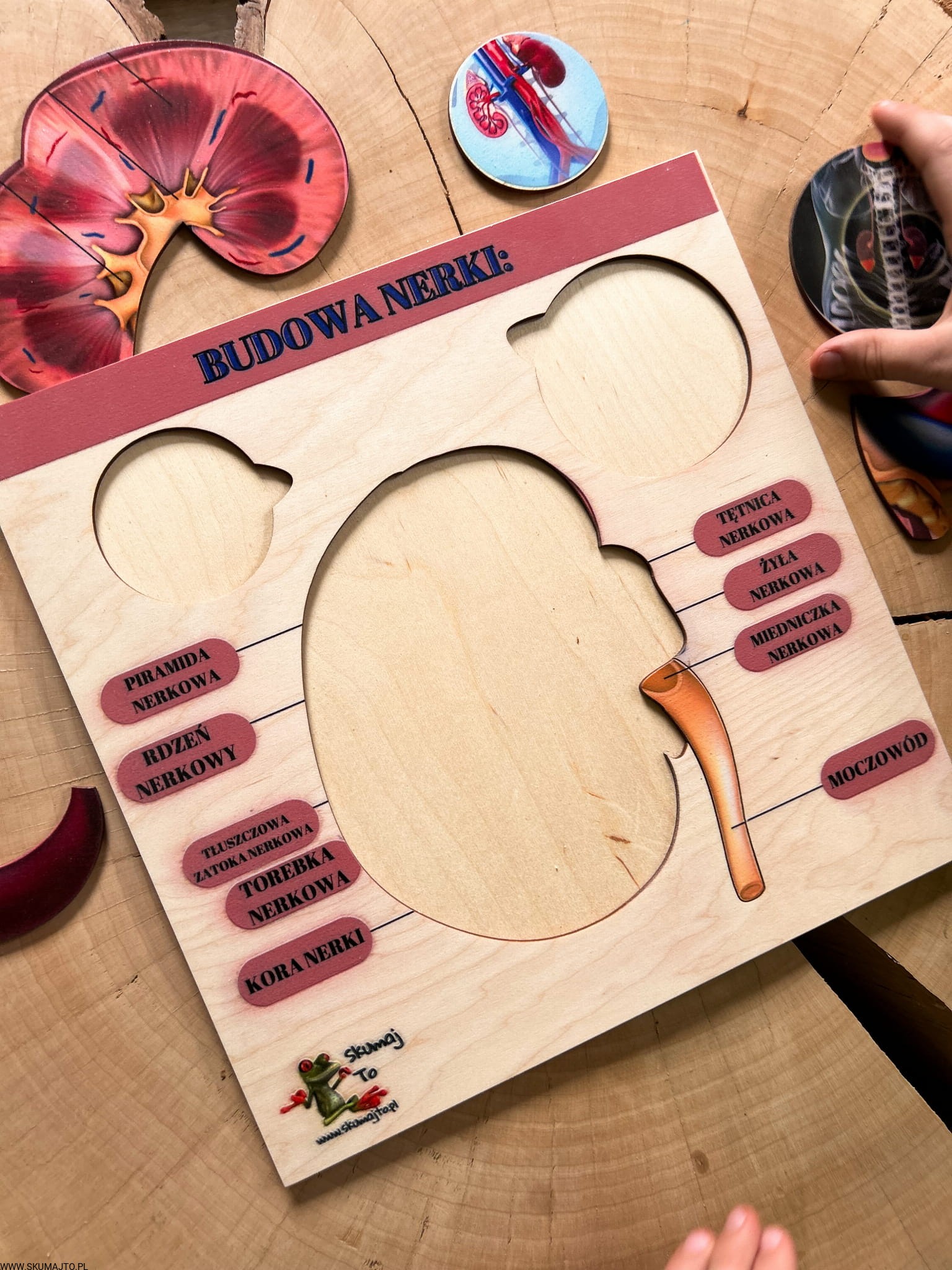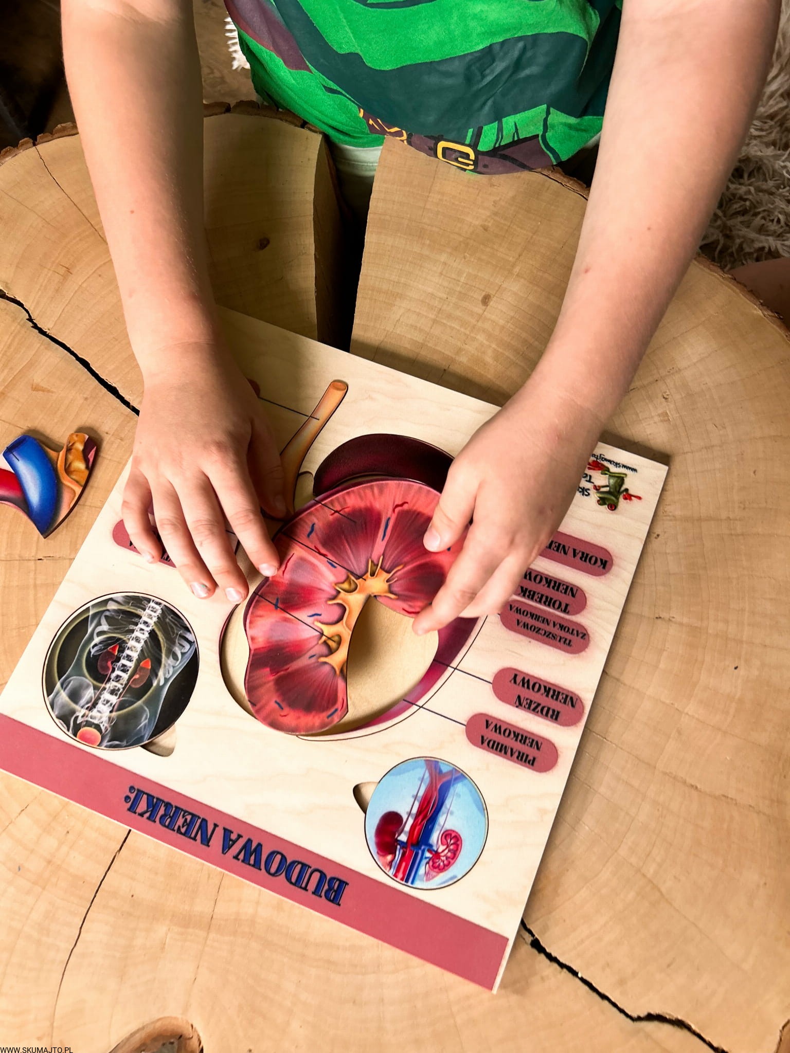 Budowa nerki, anatomia nerki, nerka, drewniana układanka