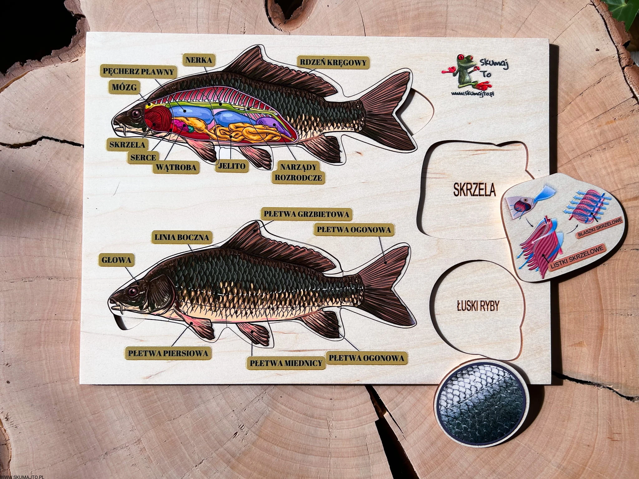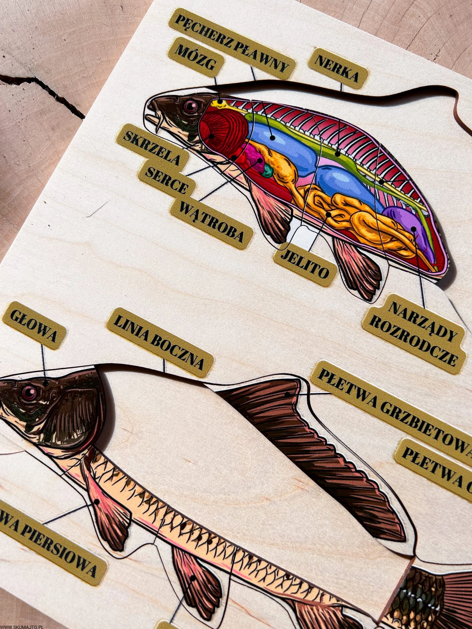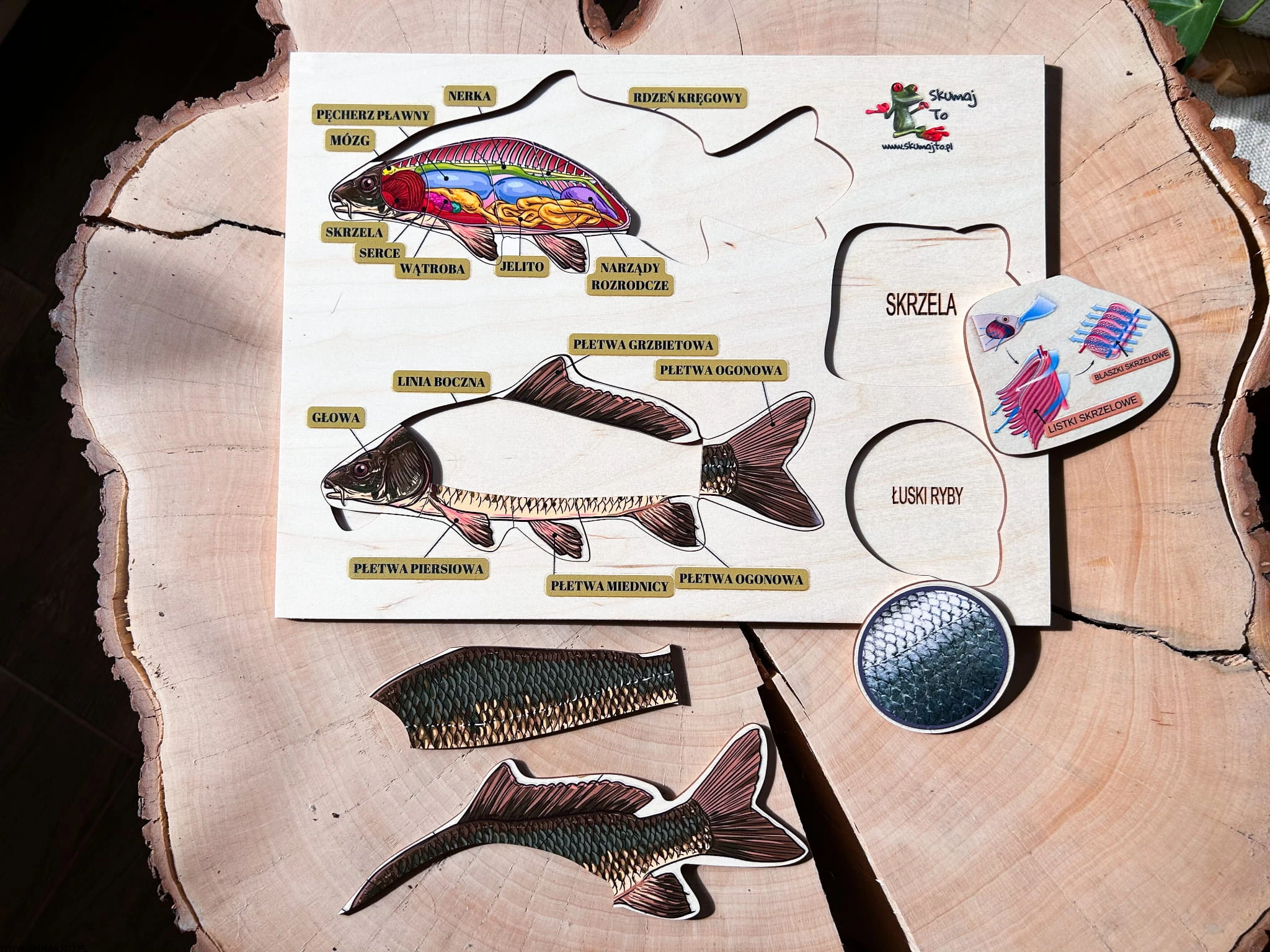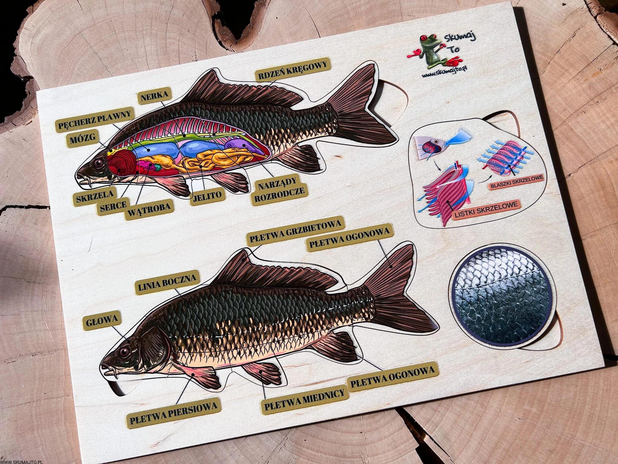 Budowa ryby układanka, anatomia ryb, drewniana układanka o rybie, ciekawostki o rybach