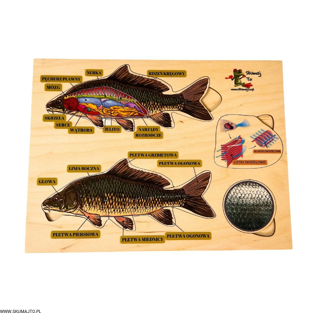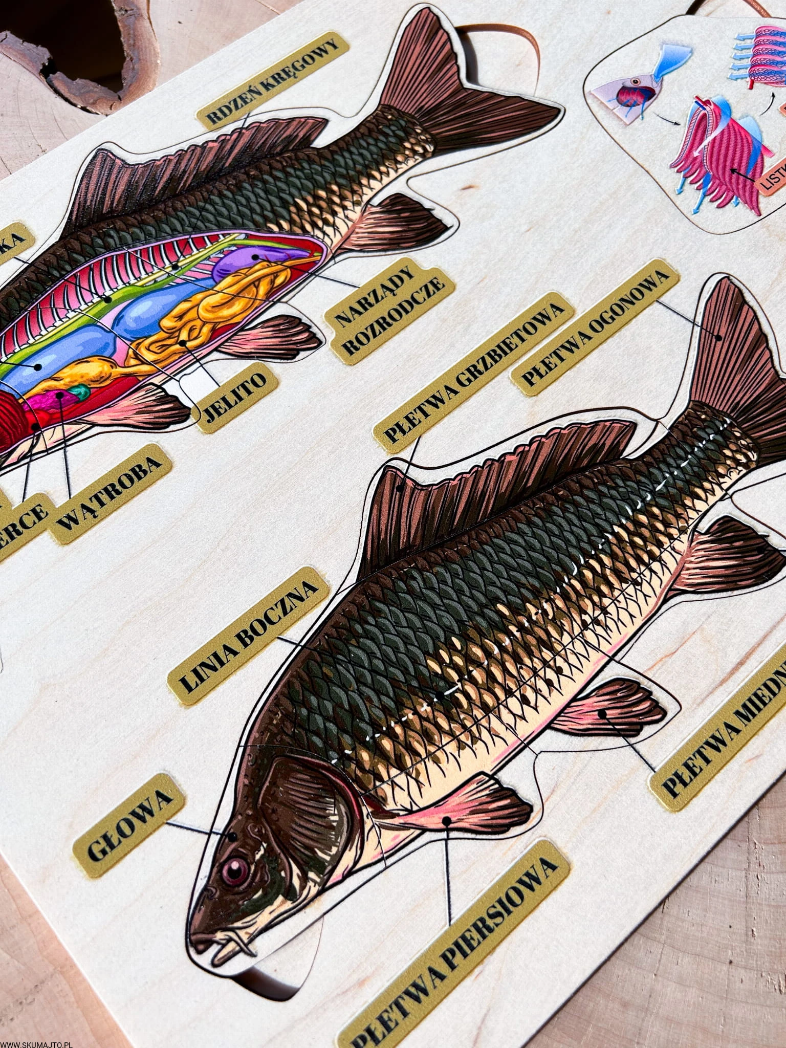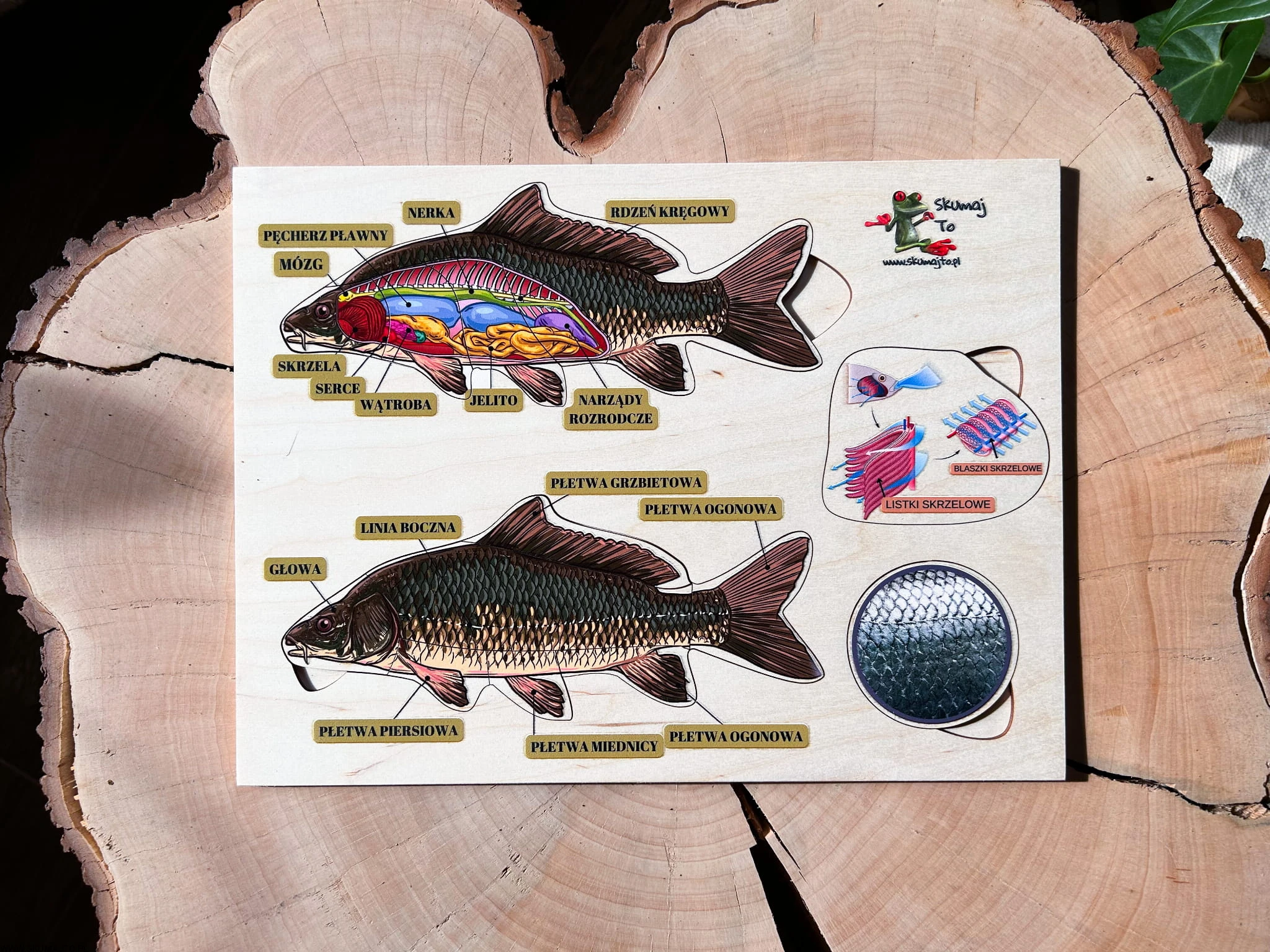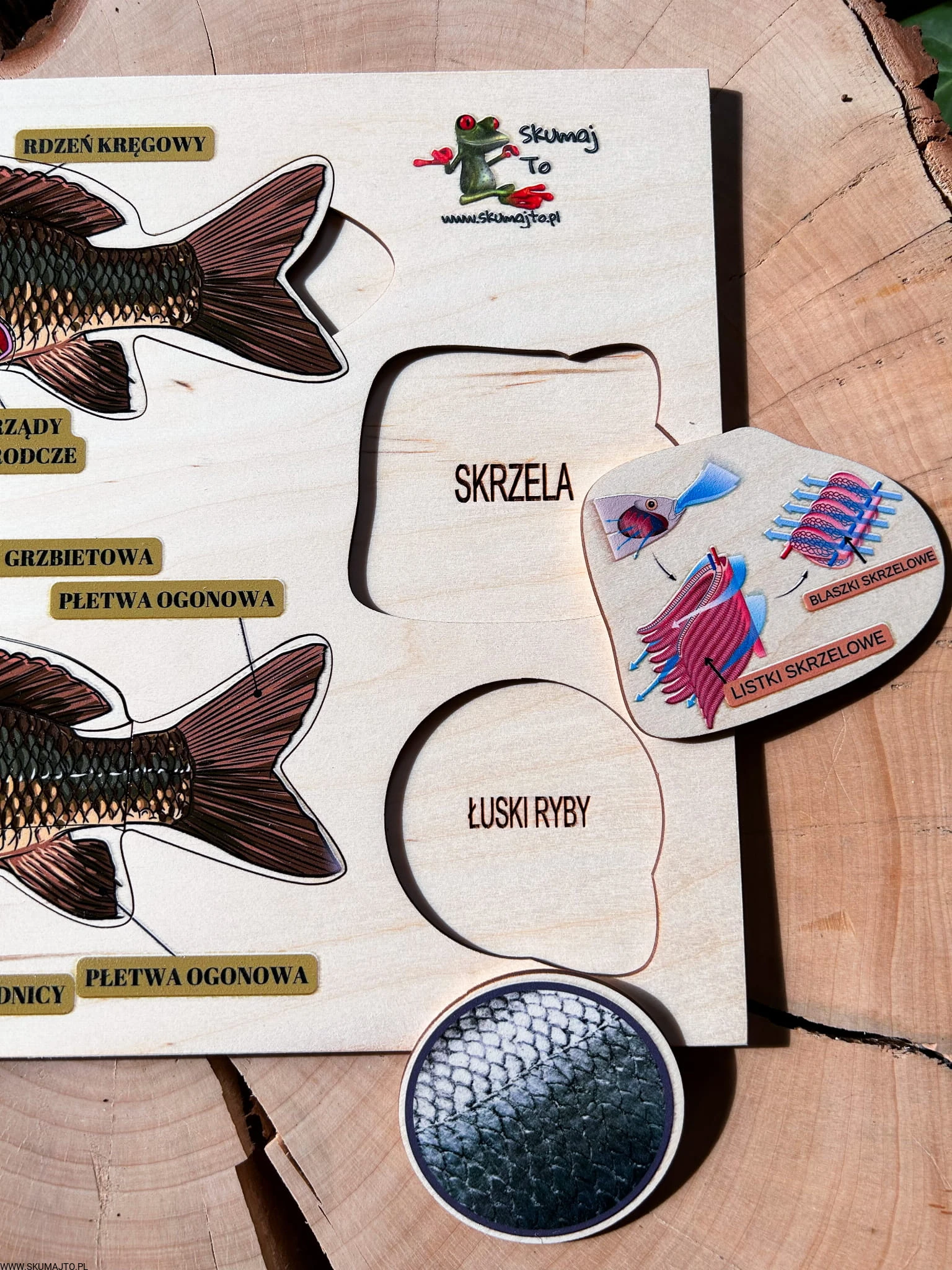 Budowa ryby układanka, anatomia ryb, drewniana układanka o rybie, ciekawostki o rybach