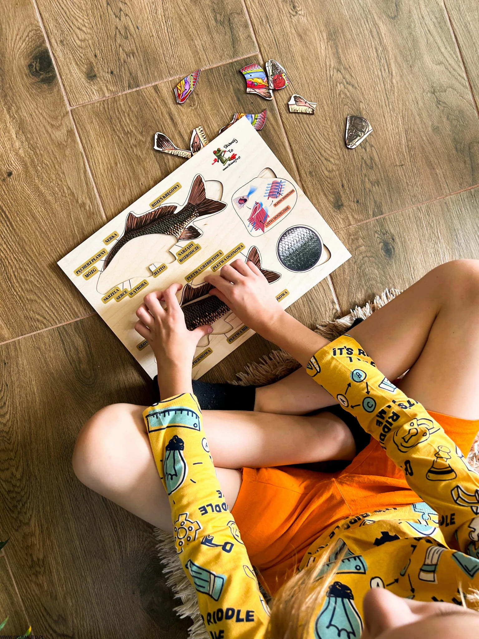 Nasza układanka to nie tylko nauka przez zabawę, to także rozwijanie zdolności manualnych, logicznego myślenia i kreatywności. Dzieci mogą tworzyć, odtwarzać i eksperymentować, ucząc się przy tym cennych informacji na temat budowy ryb. To zabawa, która stawia naukę na pierwszym miejscu.