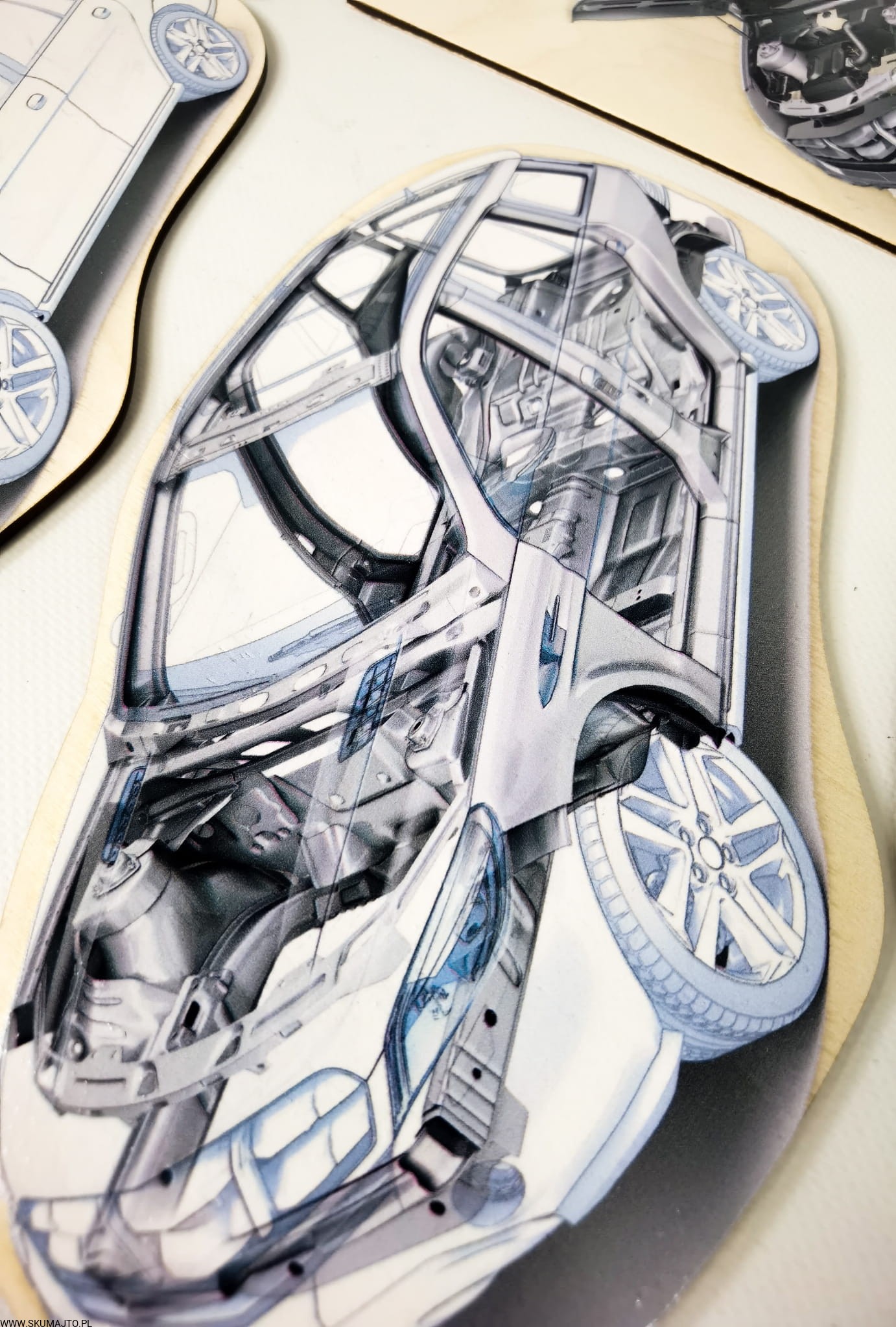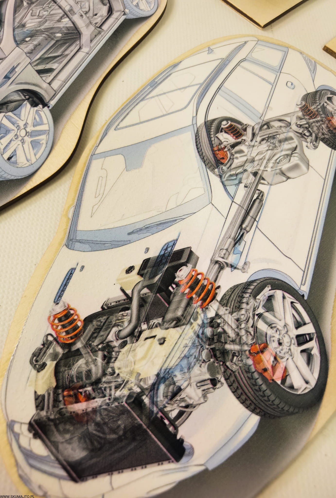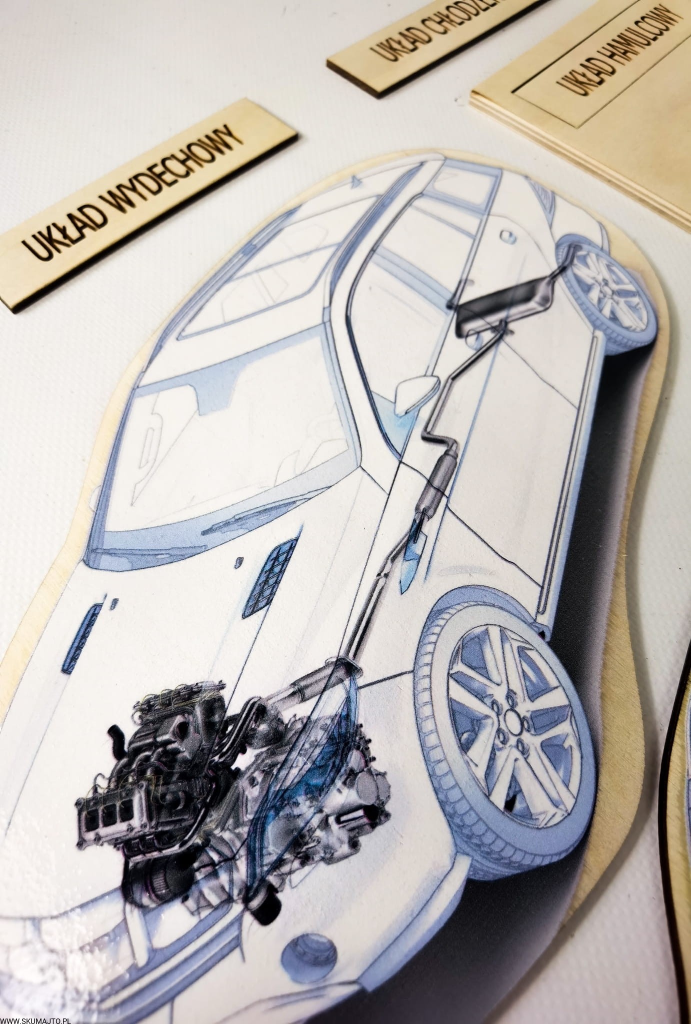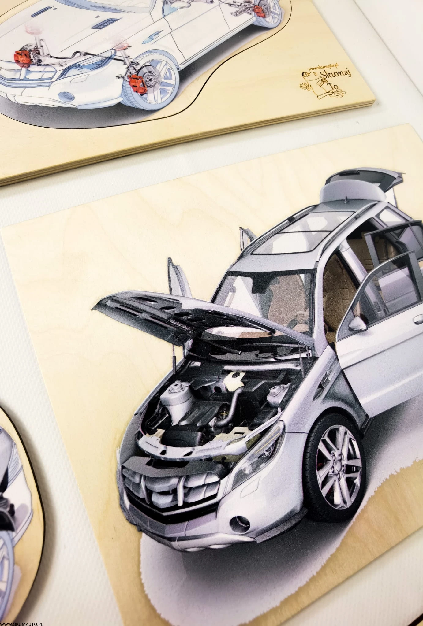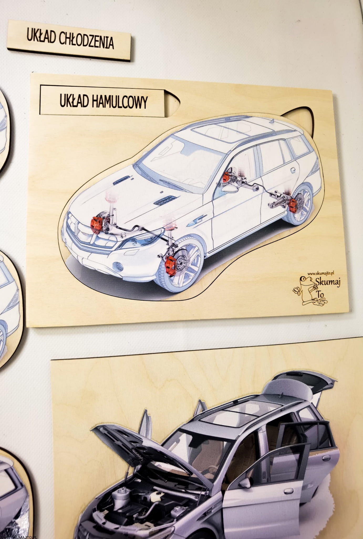 Budowa samochodu, drewniana układanka o autach, drewniany samochód
