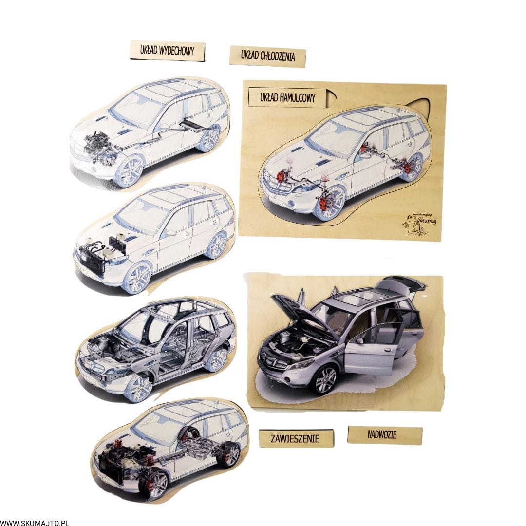 Samochód to skomplikowany mechanizm, w którym każdy układ pełni kluczową rolę. Dzięki naszej układance Twoje dziecko pozna tajniki budowy auta w sposób prosty i przyjemny. Stworzyliśmy tę pomoc edukacyjną we współpracy z mechanikiem, aby odpowiedzieć na wszystkie pytania małych odkrywców.