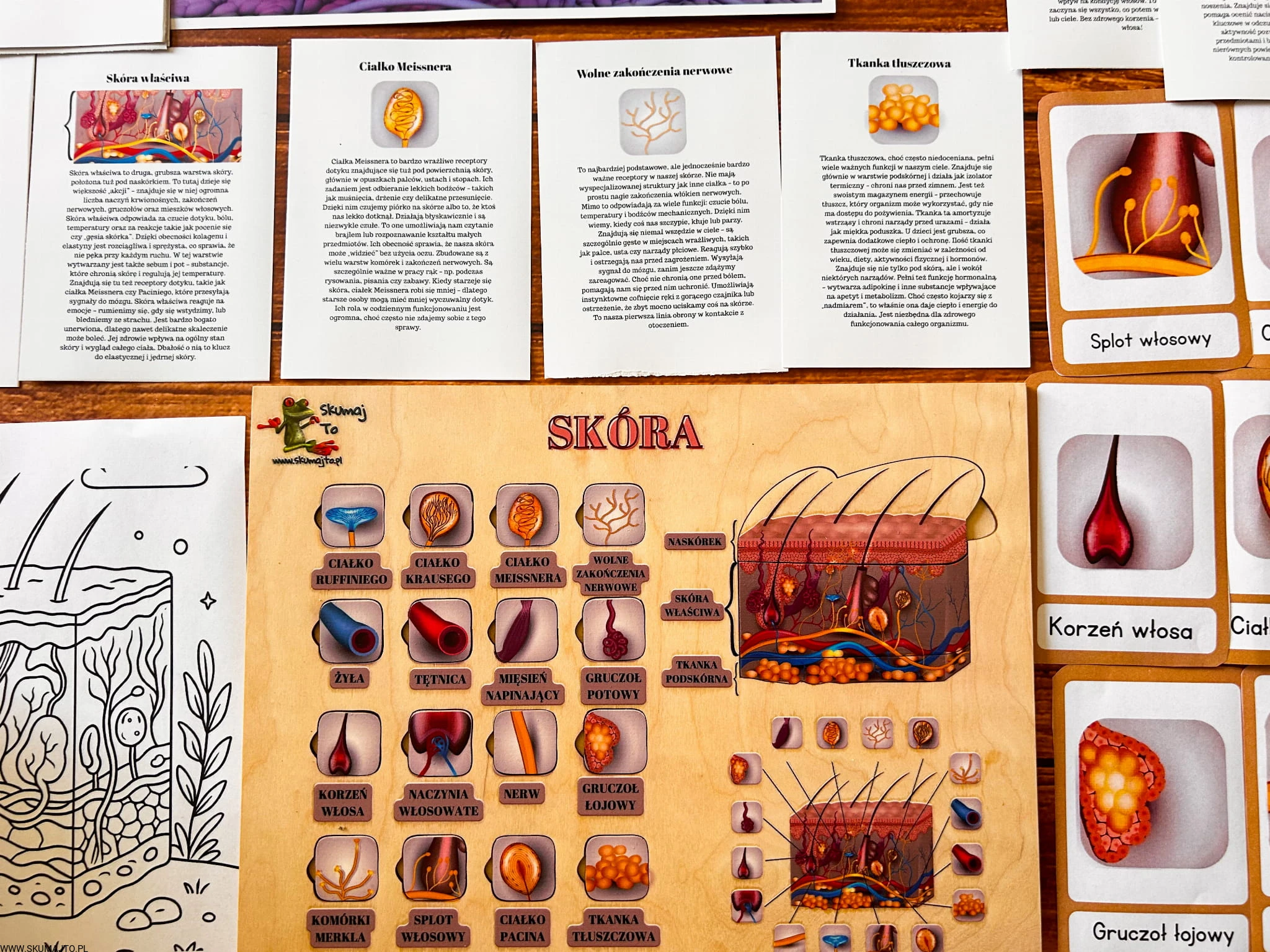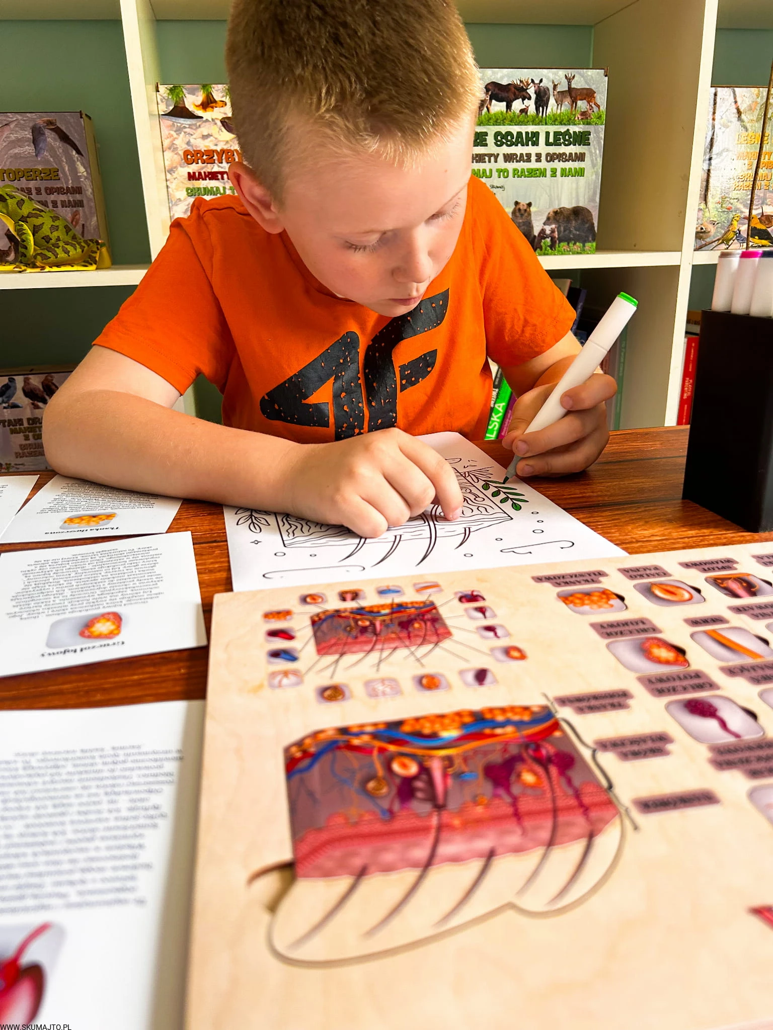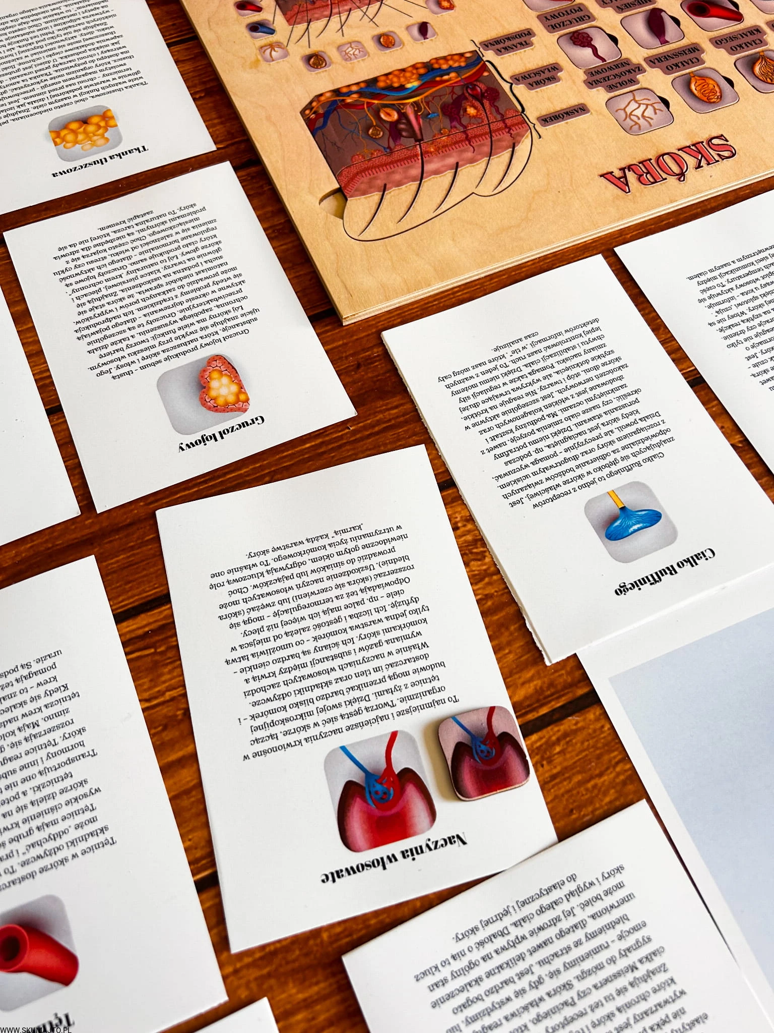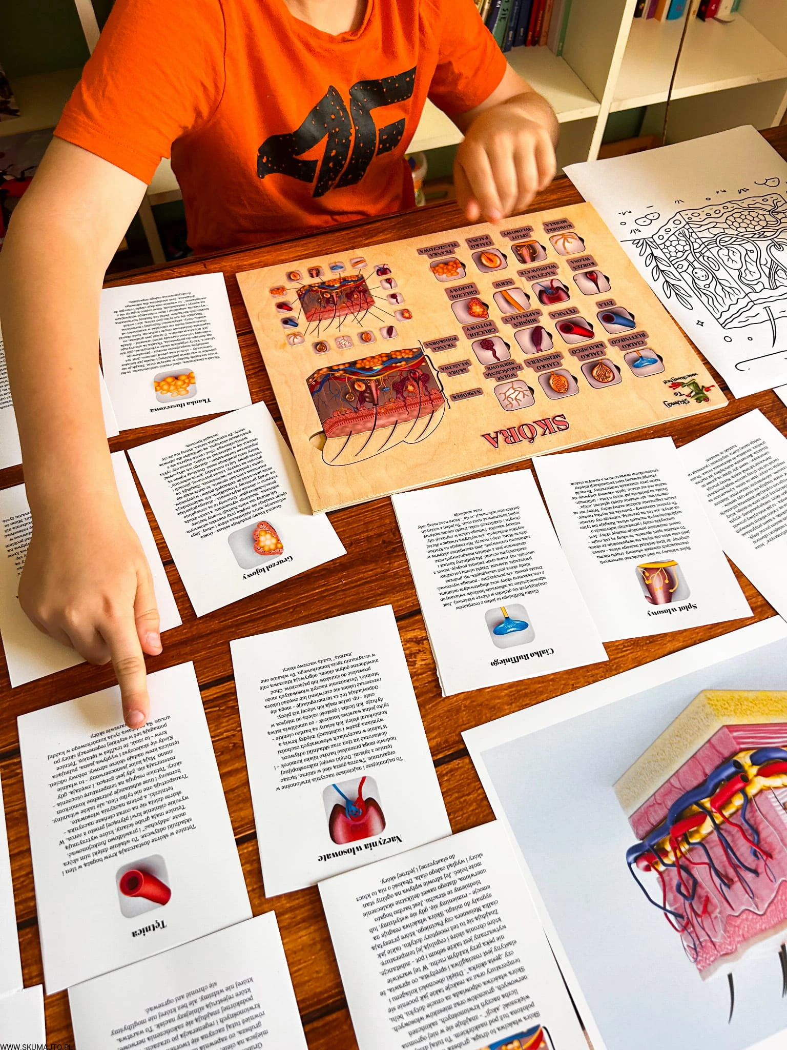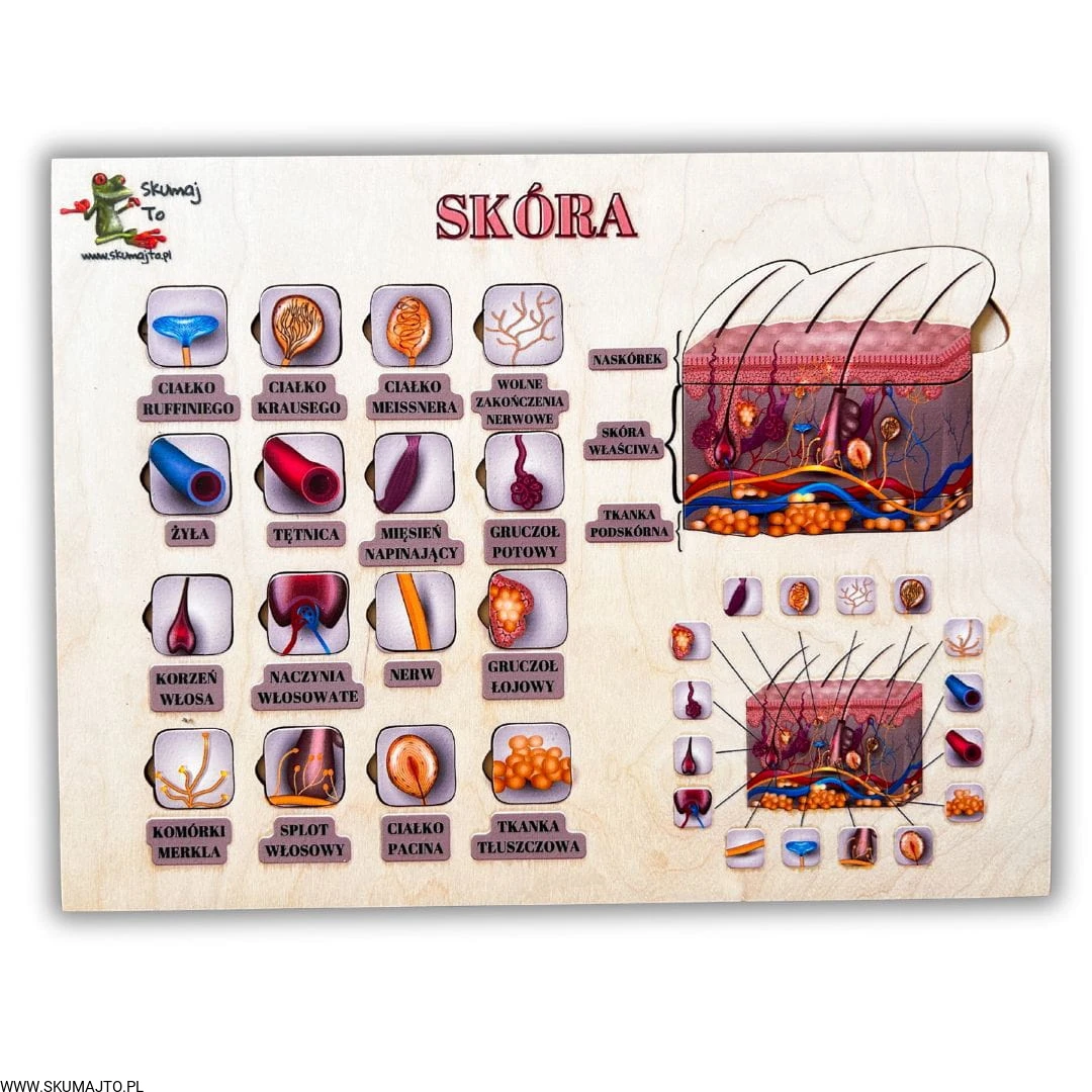 Układanka edukacyjna „Skóra” to kompletna, piękna i bogata w treść pomoc, która zmienia naukę anatomii w przygodę.