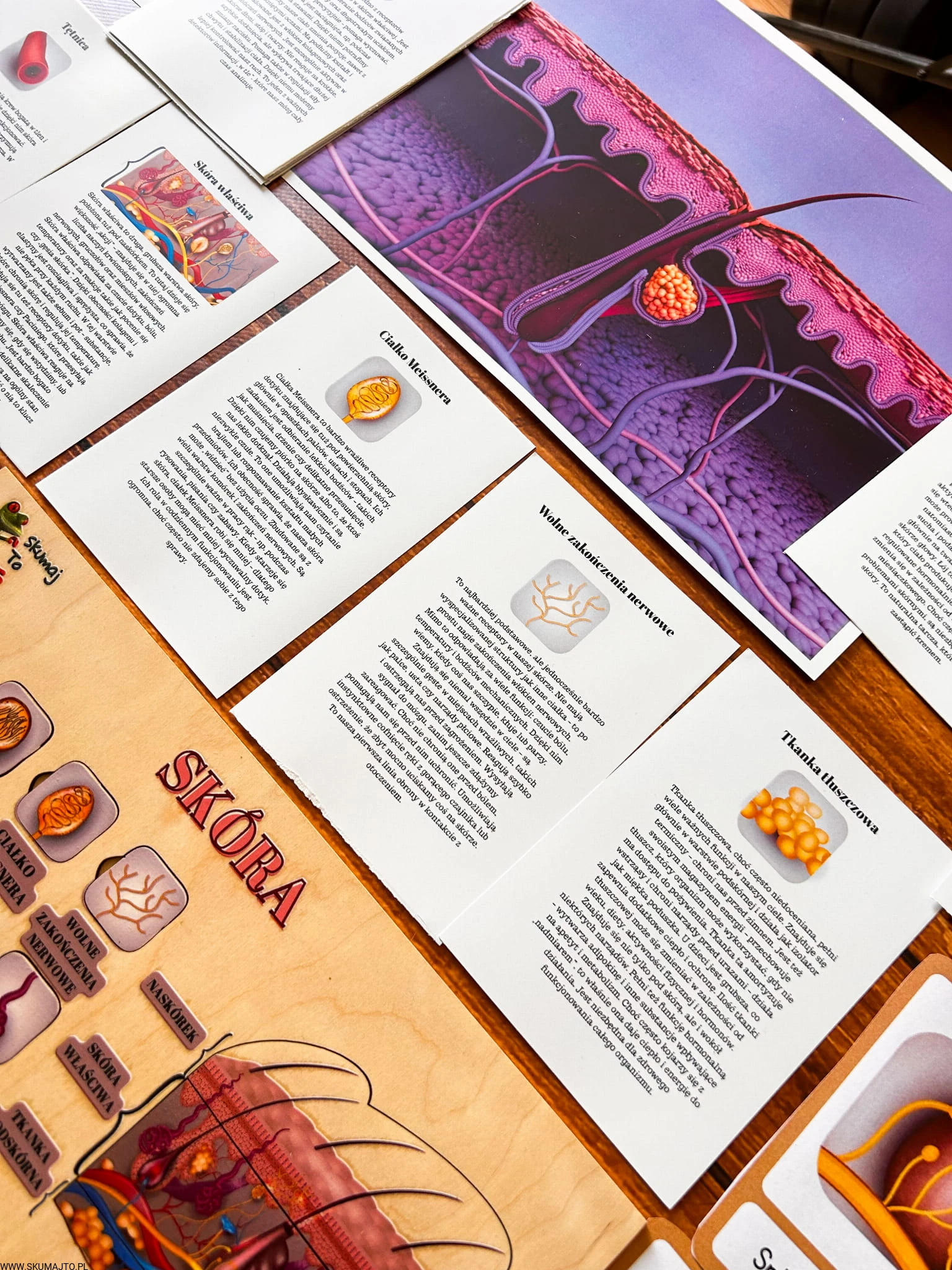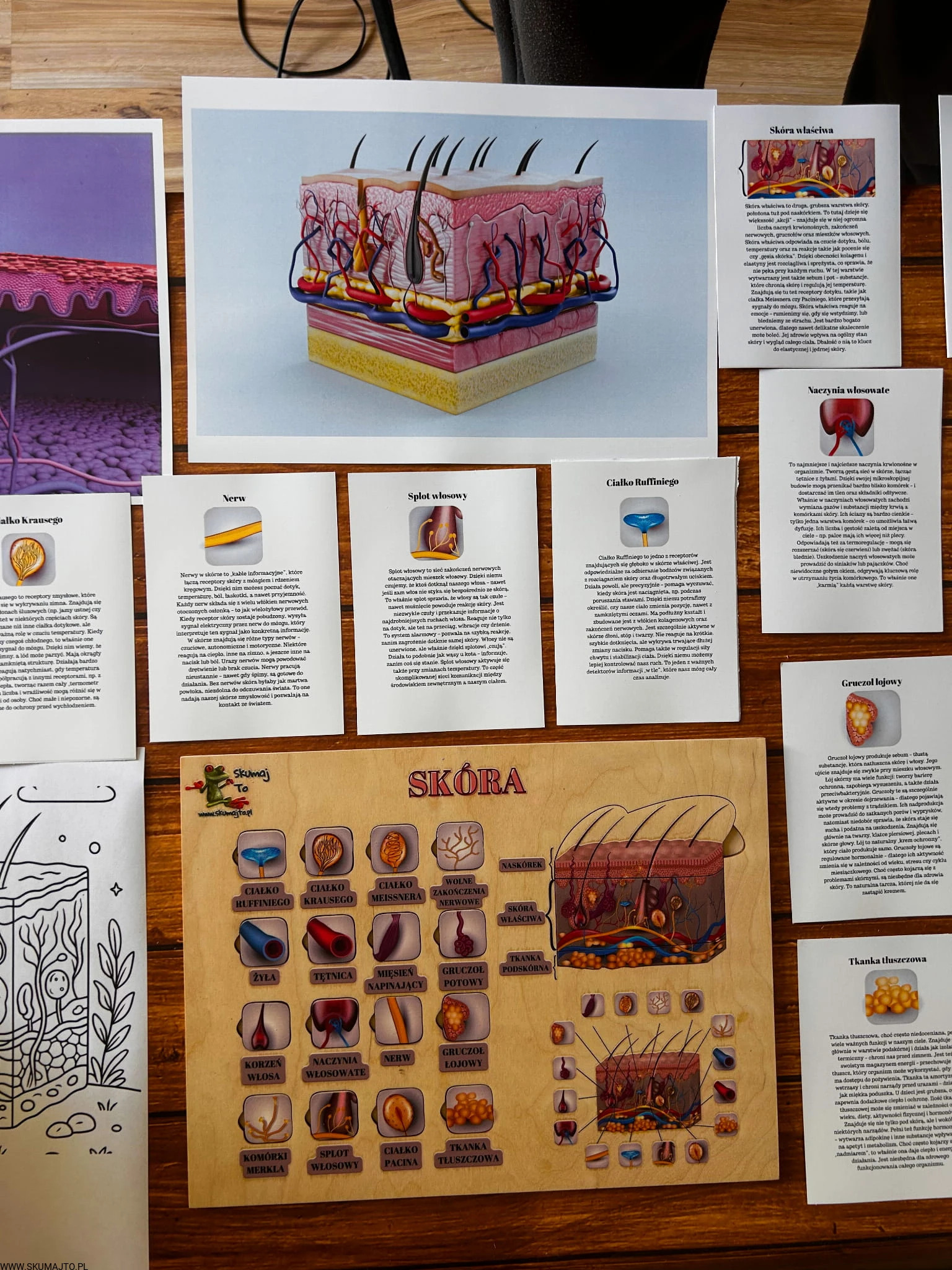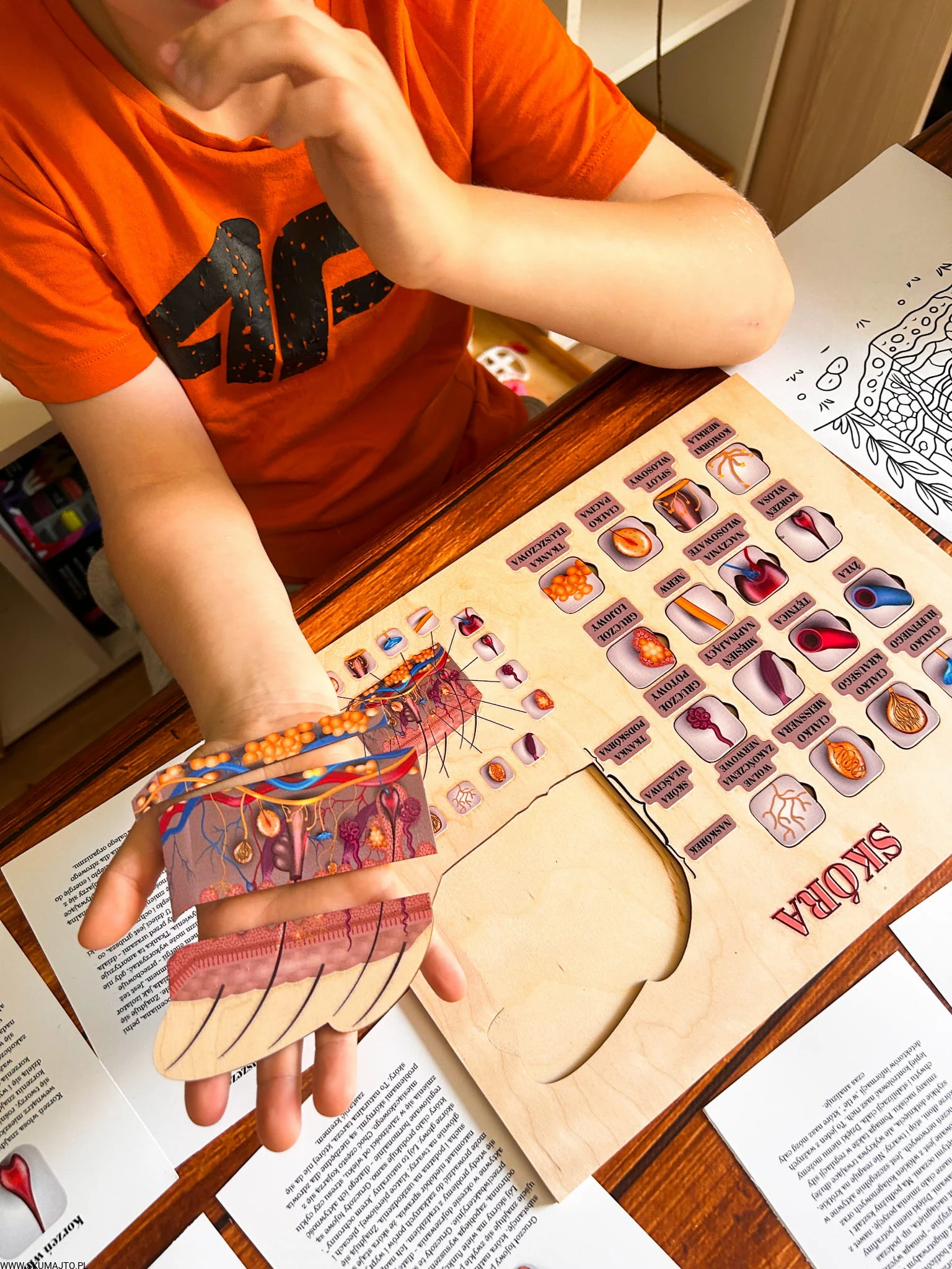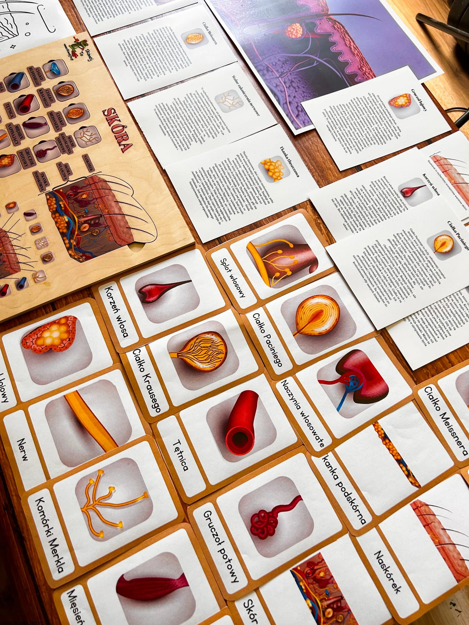 Układanka edukacyjna „Skóra” to kompletna, piękna i bogata w treść pomoc, która zmienia naukę anatomii w przygodę.