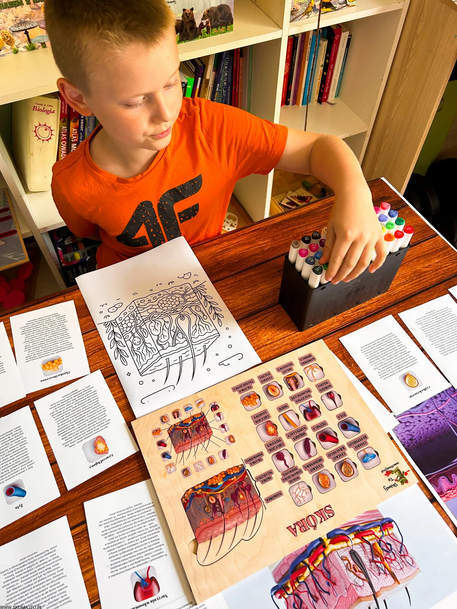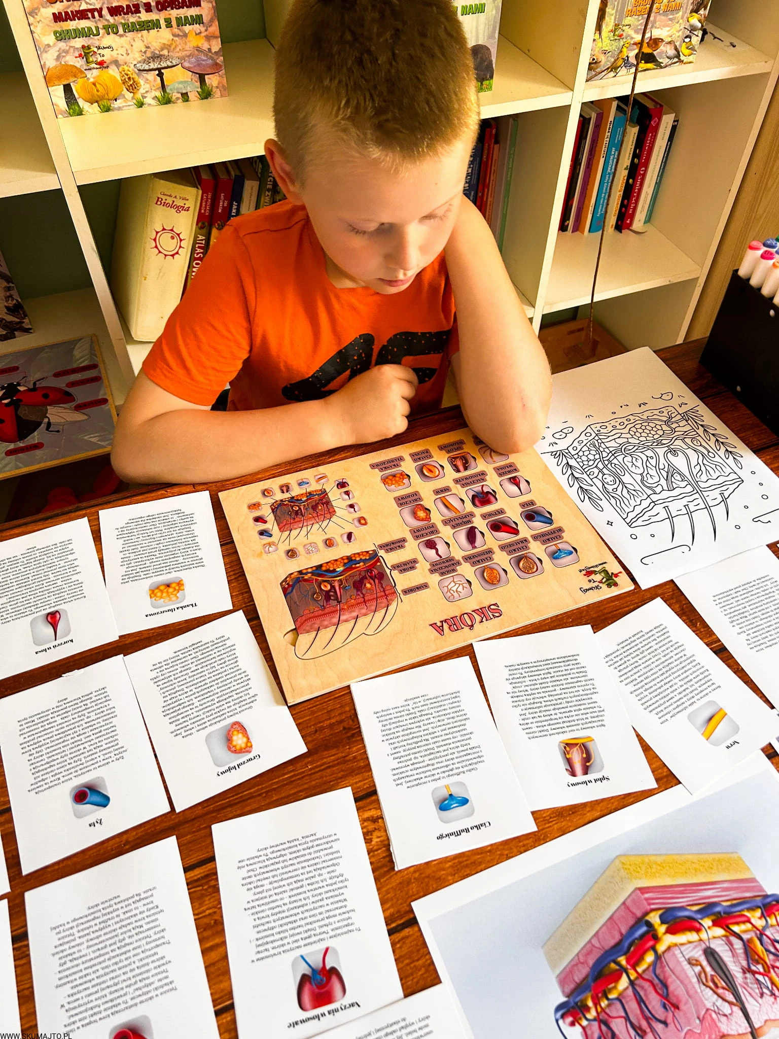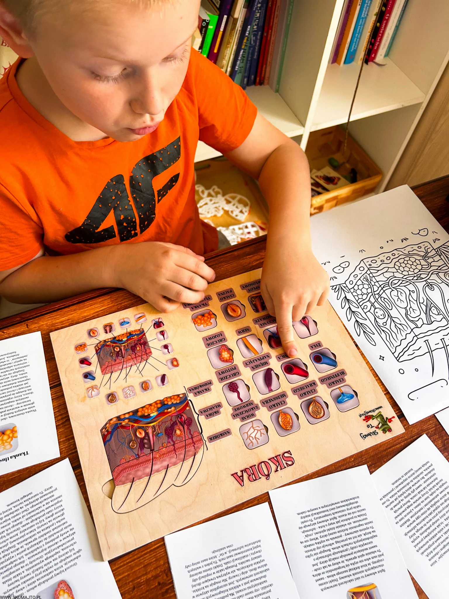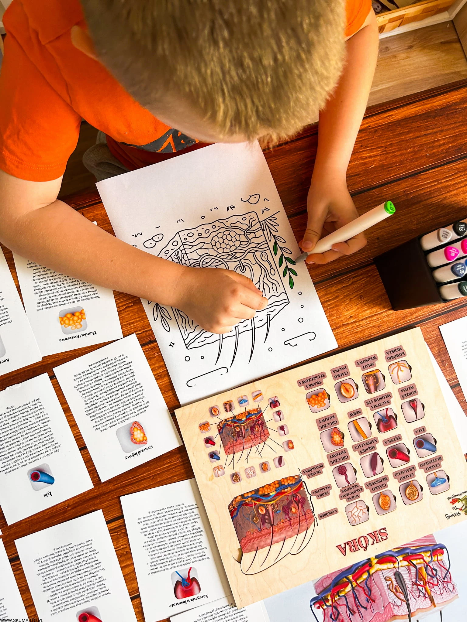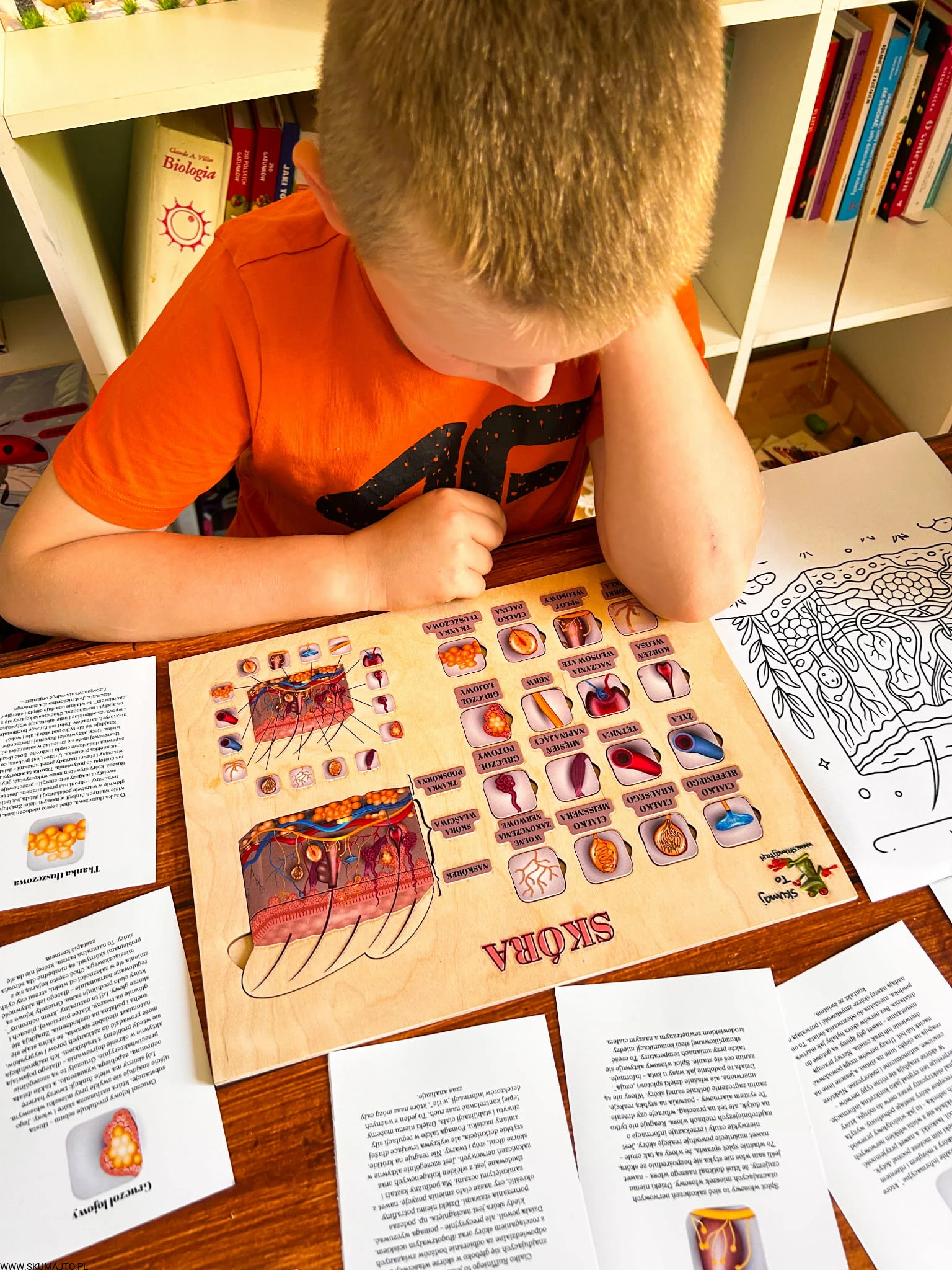 Układanka edukacyjna „Skóra” to kompletna, piękna i bogata w treść pomoc, która zmienia naukę anatomii w przygodę.