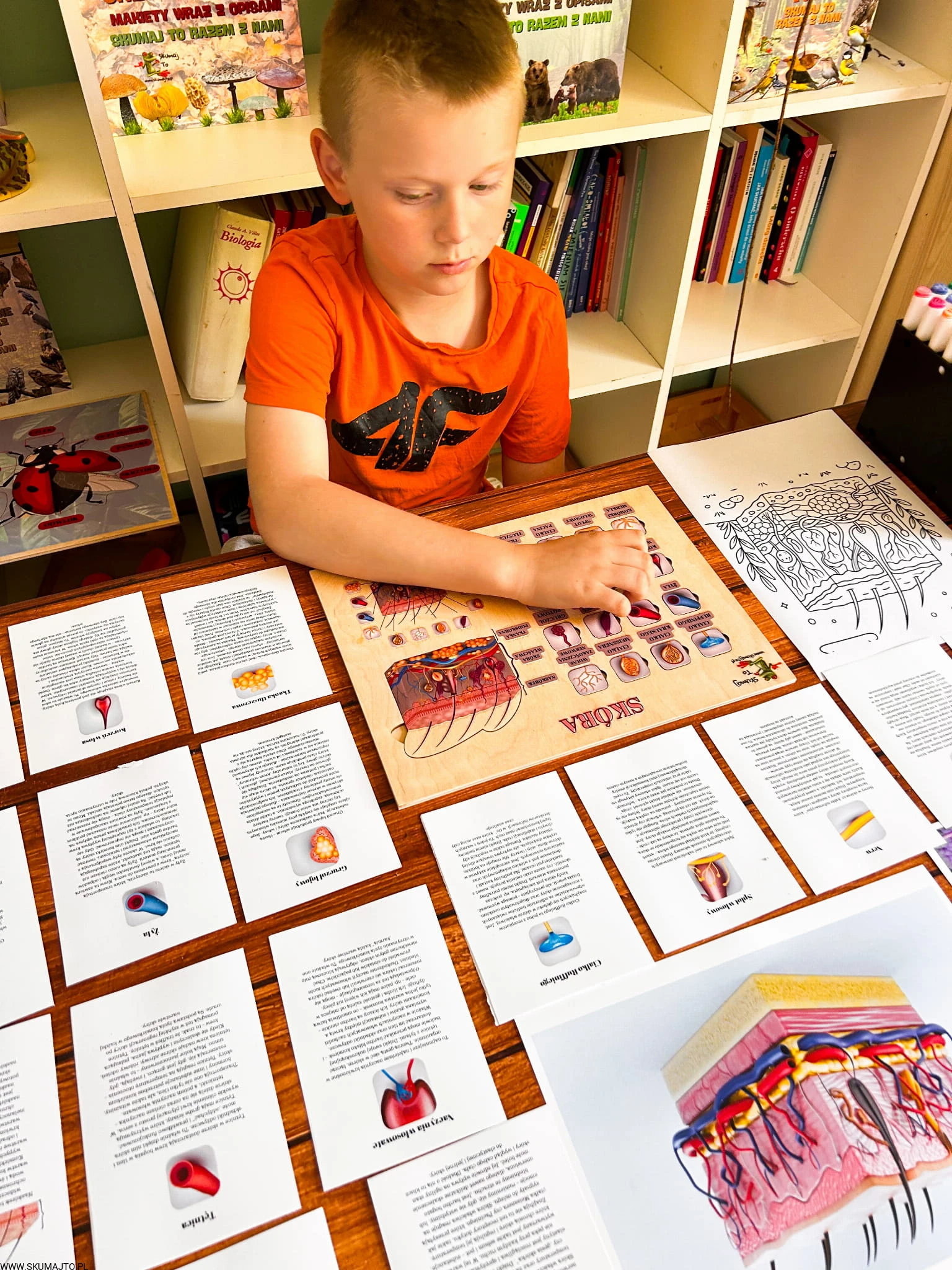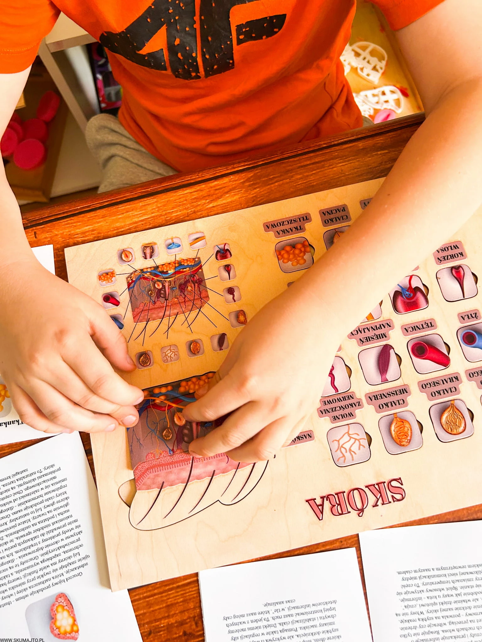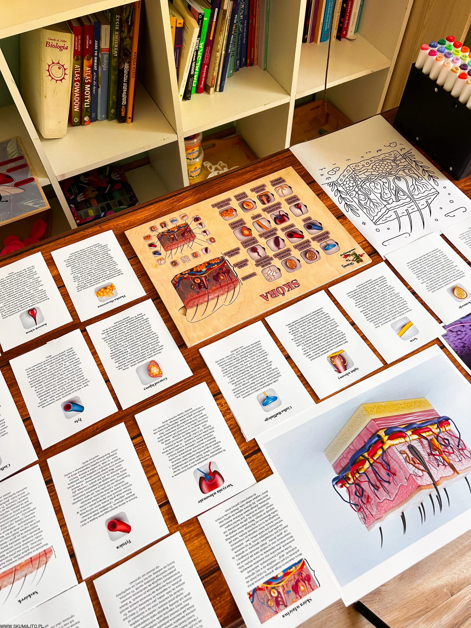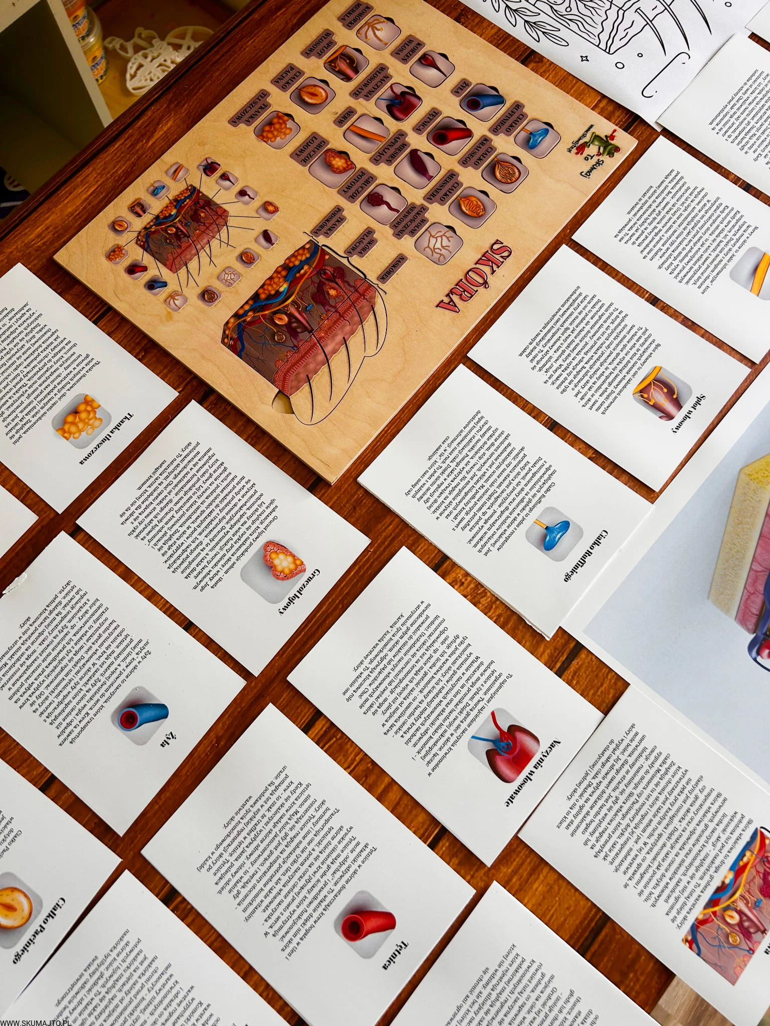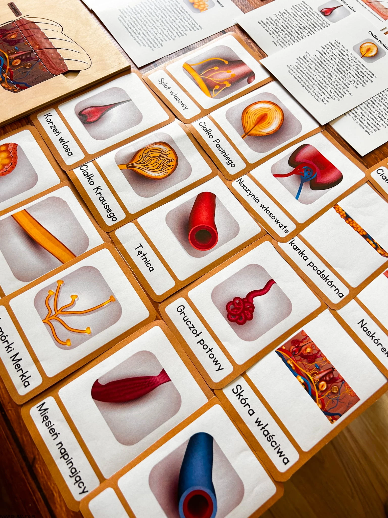 Układanka edukacyjna „Skóra” to kompletna, piękna i bogata w treść pomoc, która zmienia naukę anatomii w przygodę.