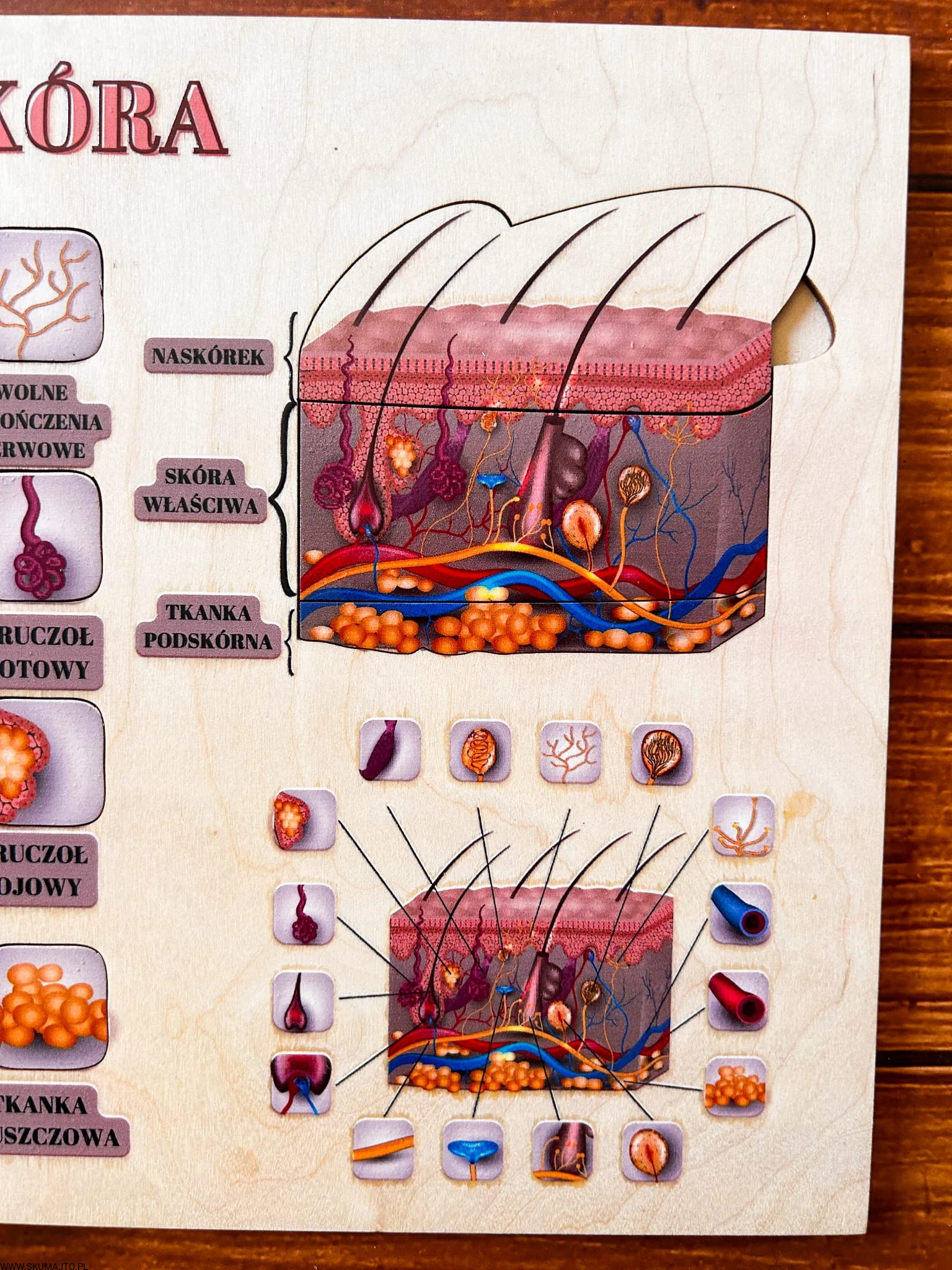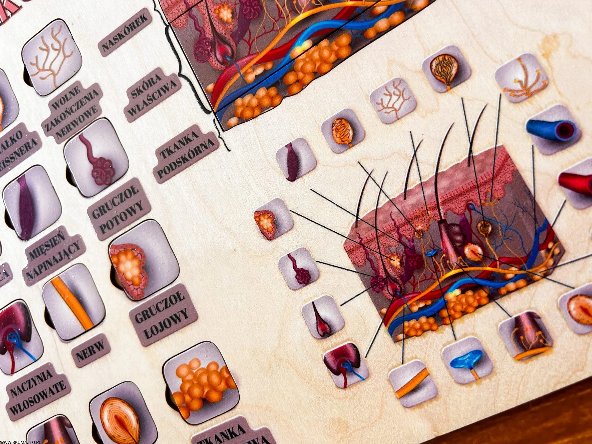 Budowa skóry człowieka, drewniana układanka, przekrój przez skórę
