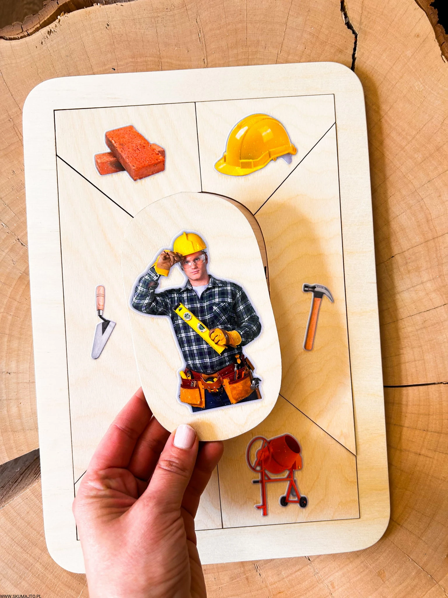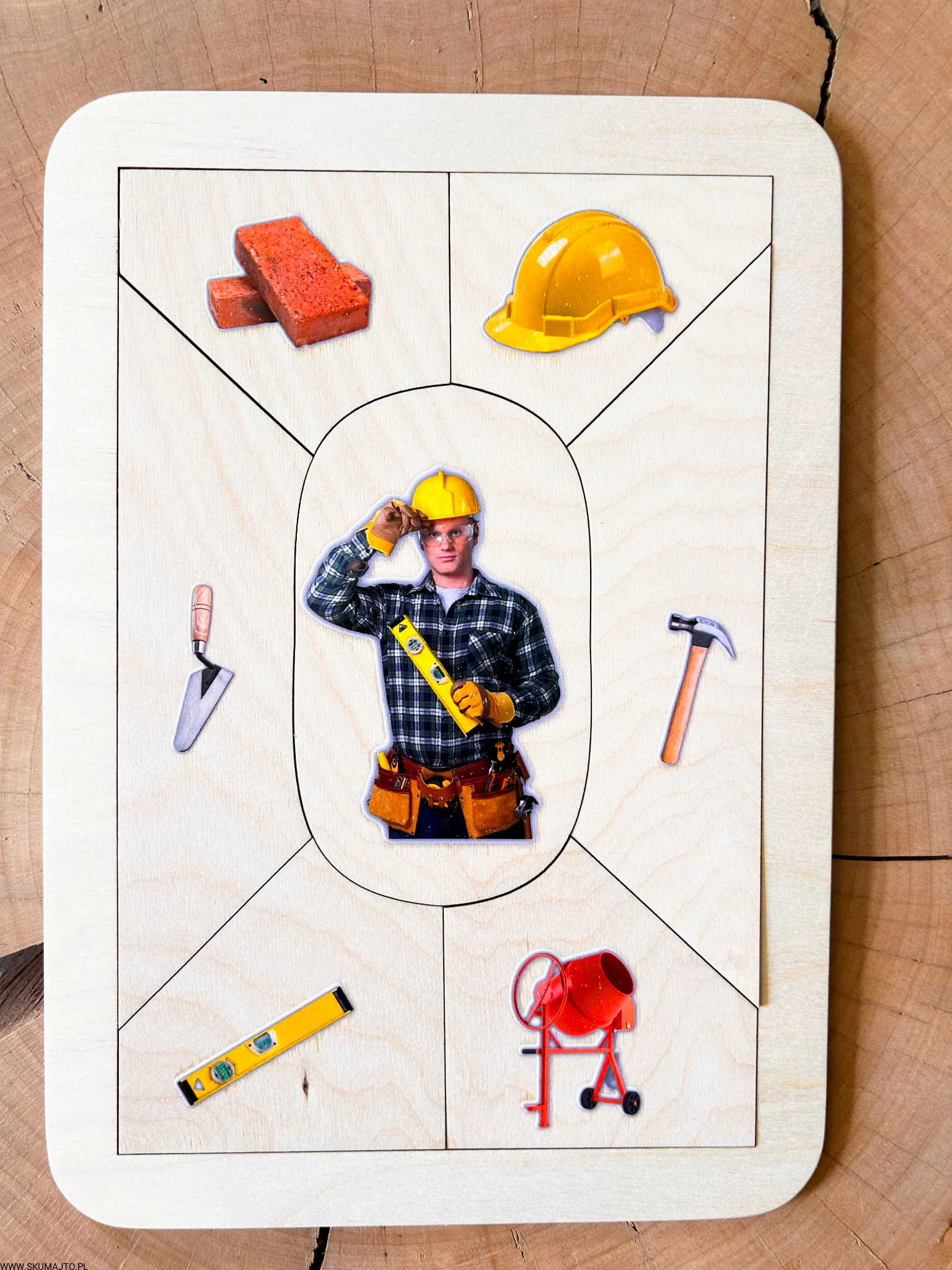 Drewniana układanka edukacyjna „Zawód: Budowlaniec” – uczymy przez działanie, rozwijamy przez zabawę