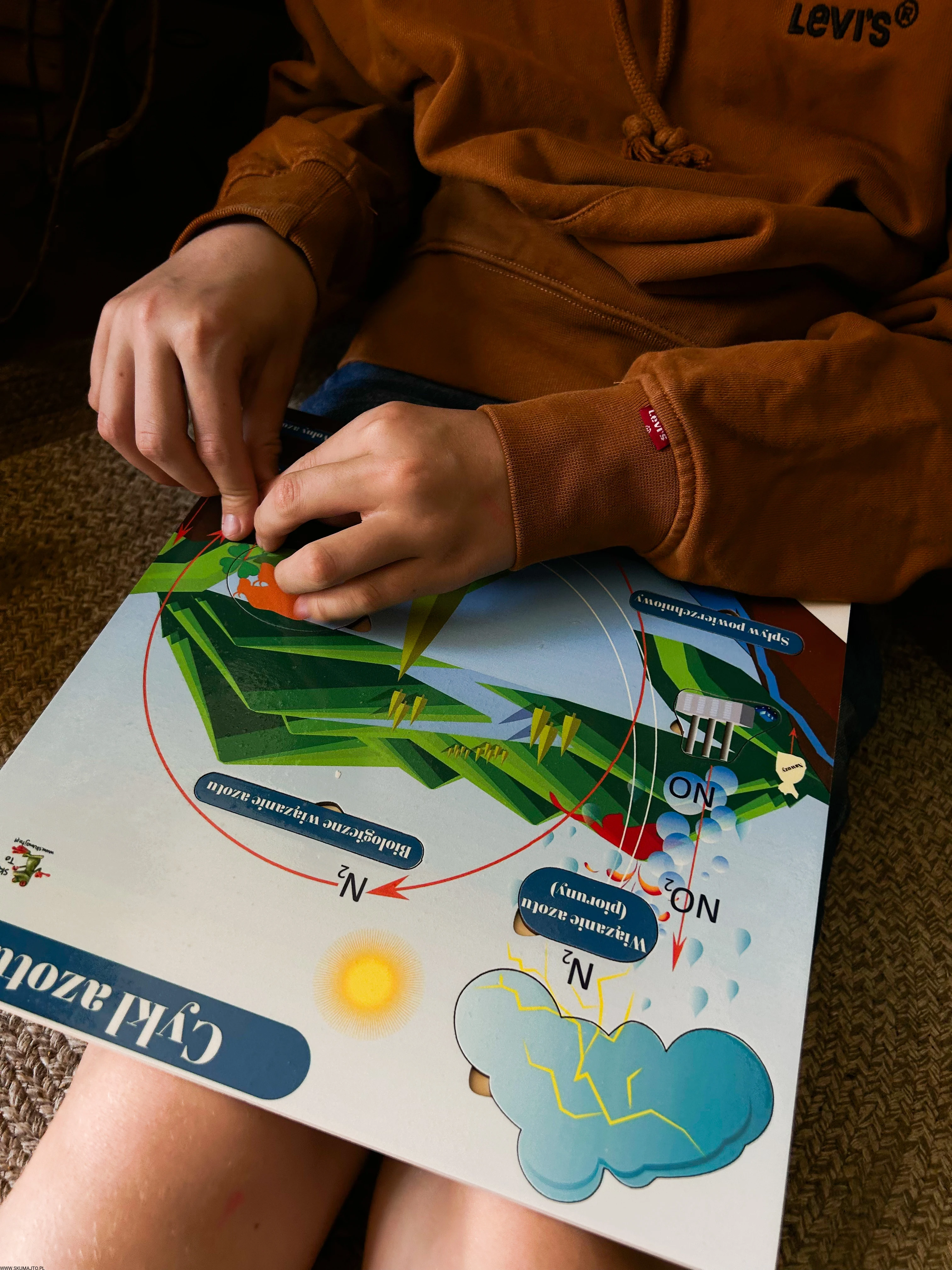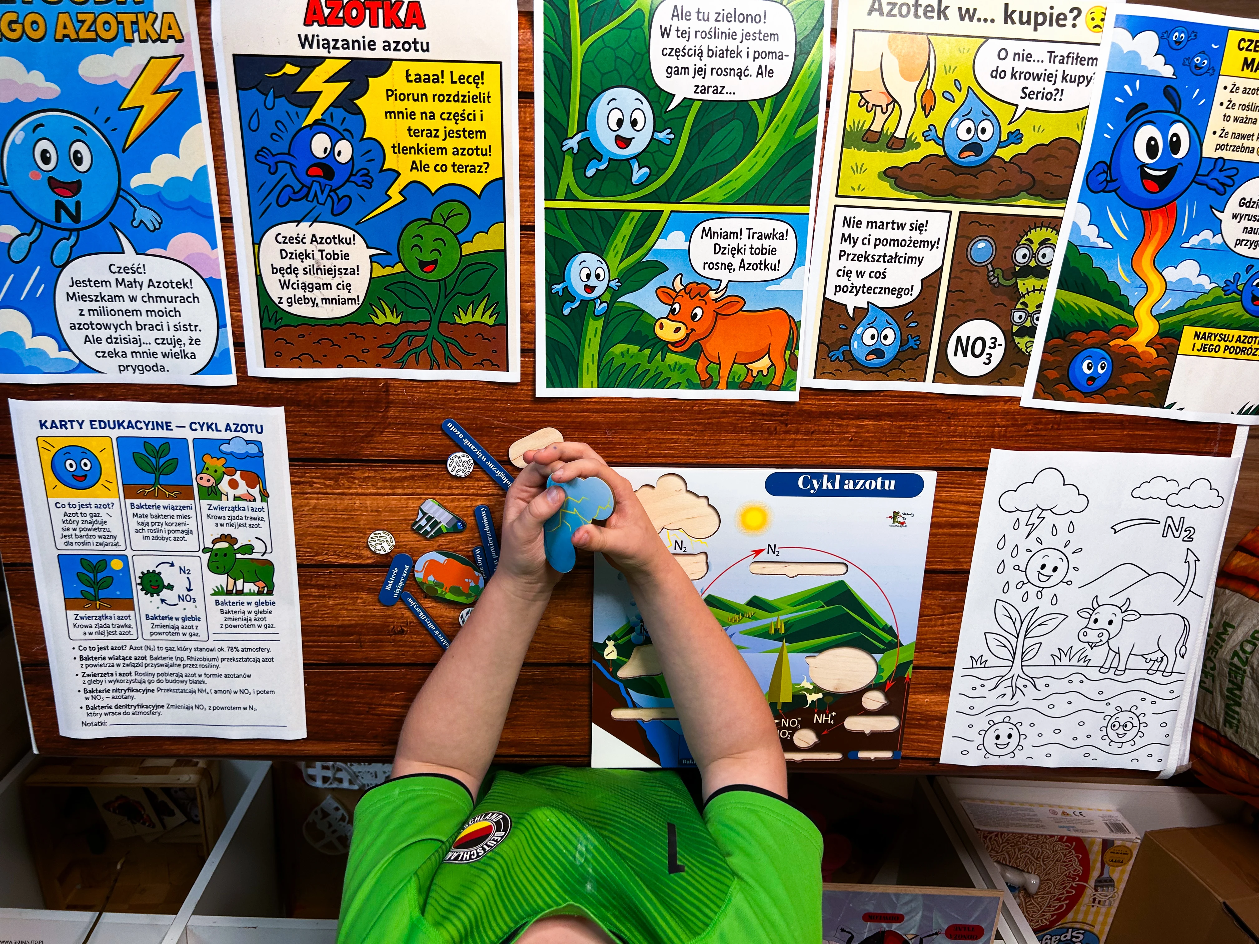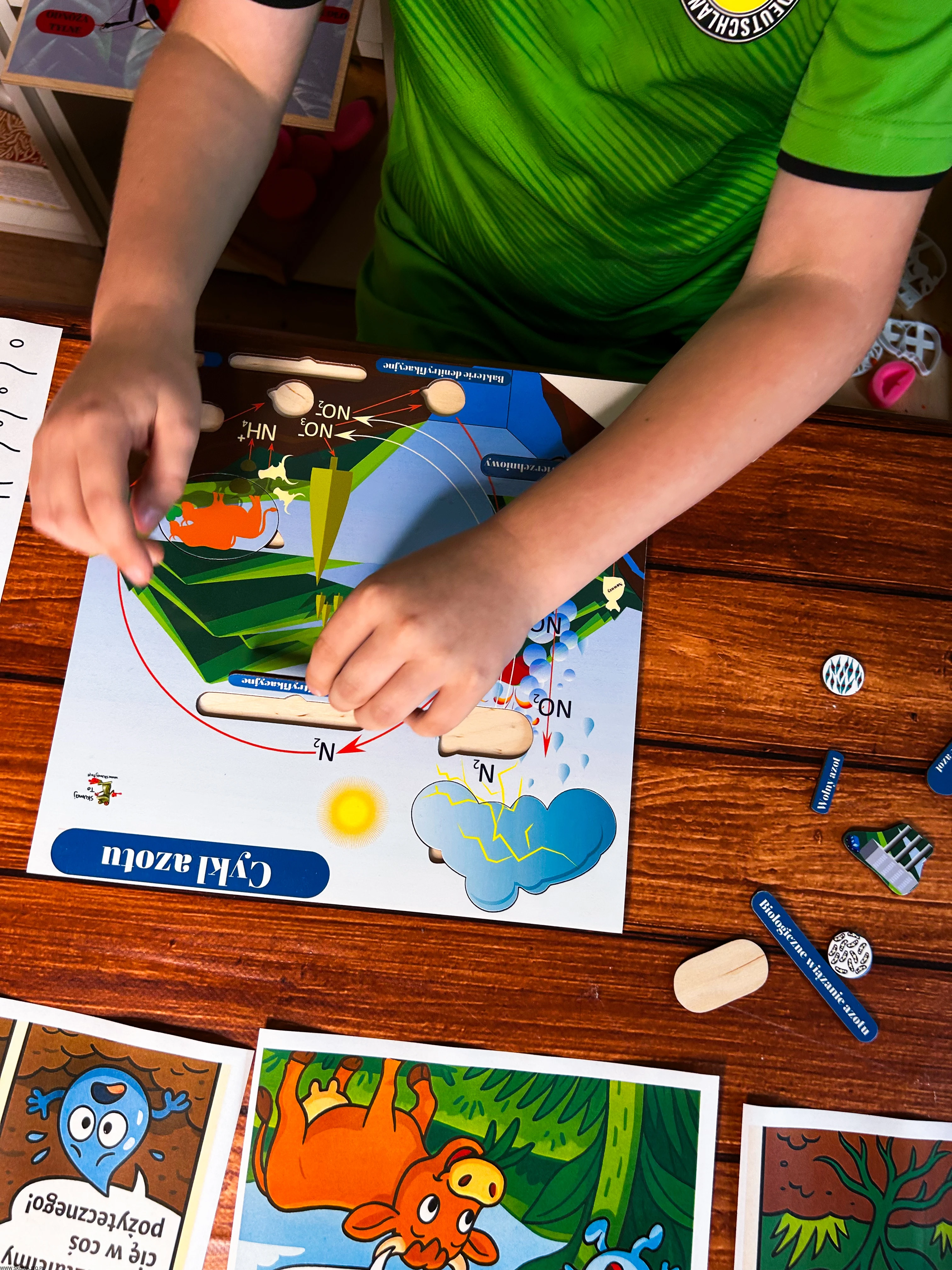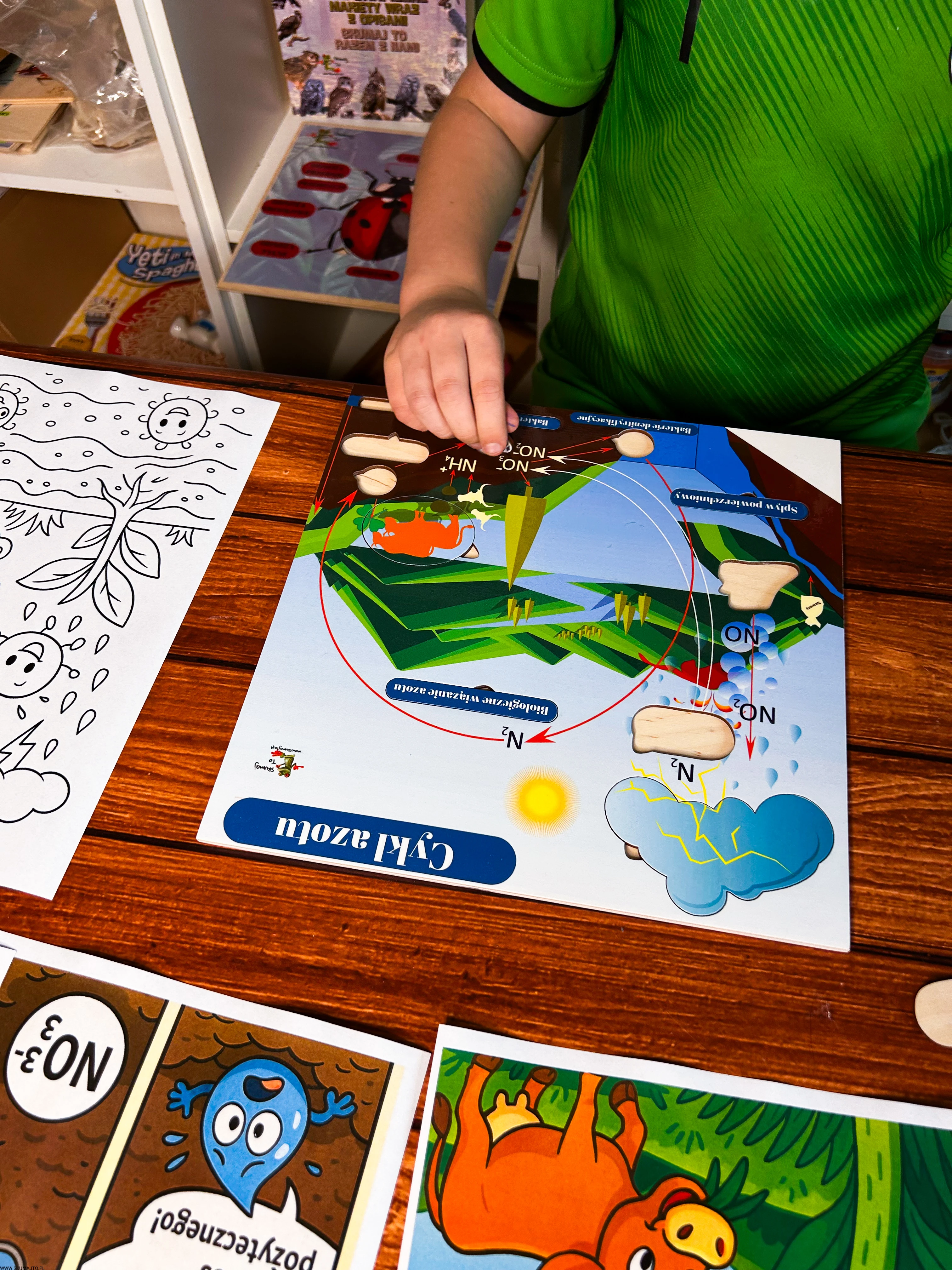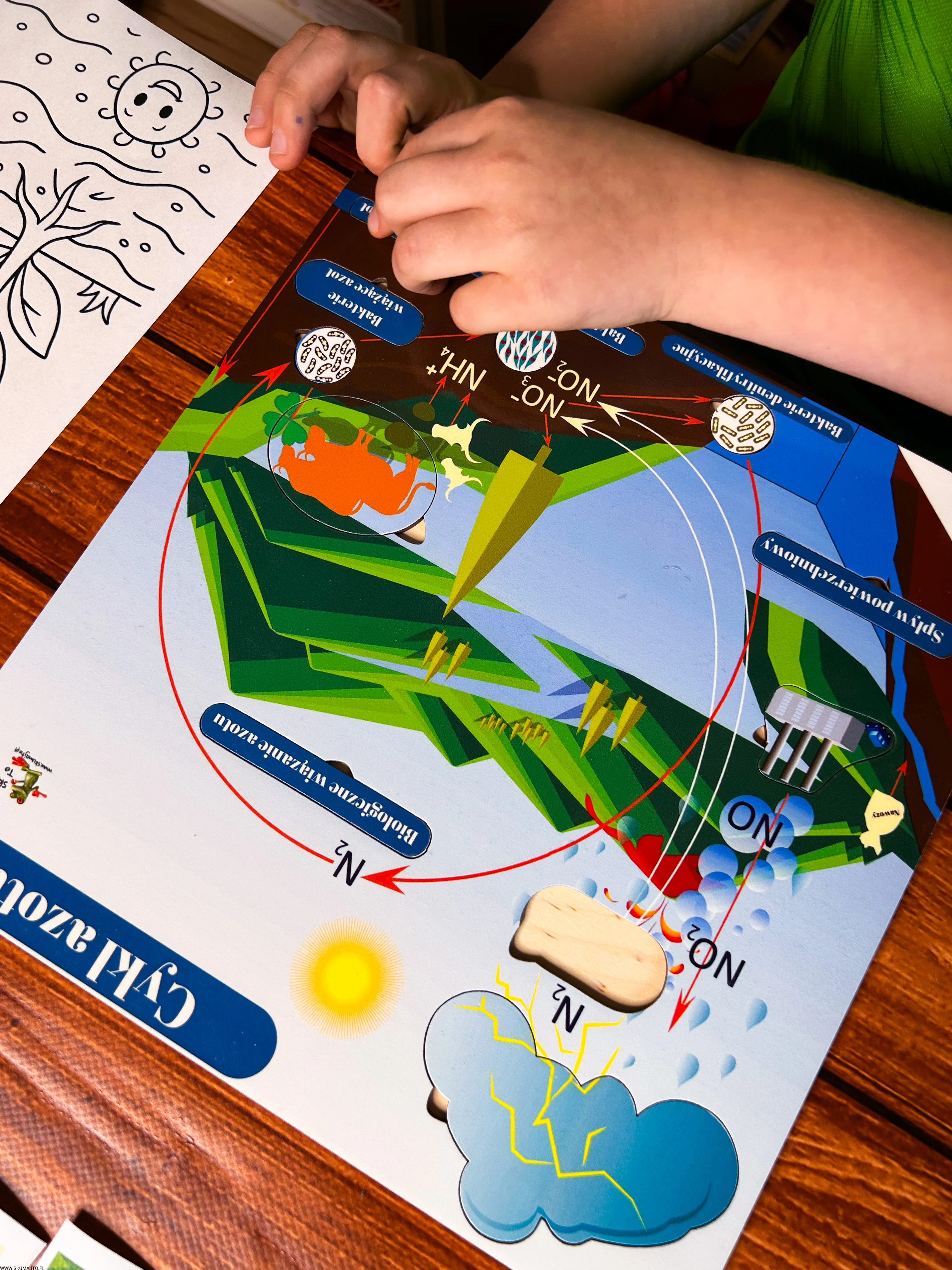 Cykl azotu to jeden z najbardziej fascynujących i jednocześnie trudnych do wyjaśnienia procesów w przyrodzie. Ale nie musi taki być – wystarczy, że dziecko zobaczy go w przystępnej, kolorowej formie, która tłumaczy wszystko… bez zbędnych wykładów.
