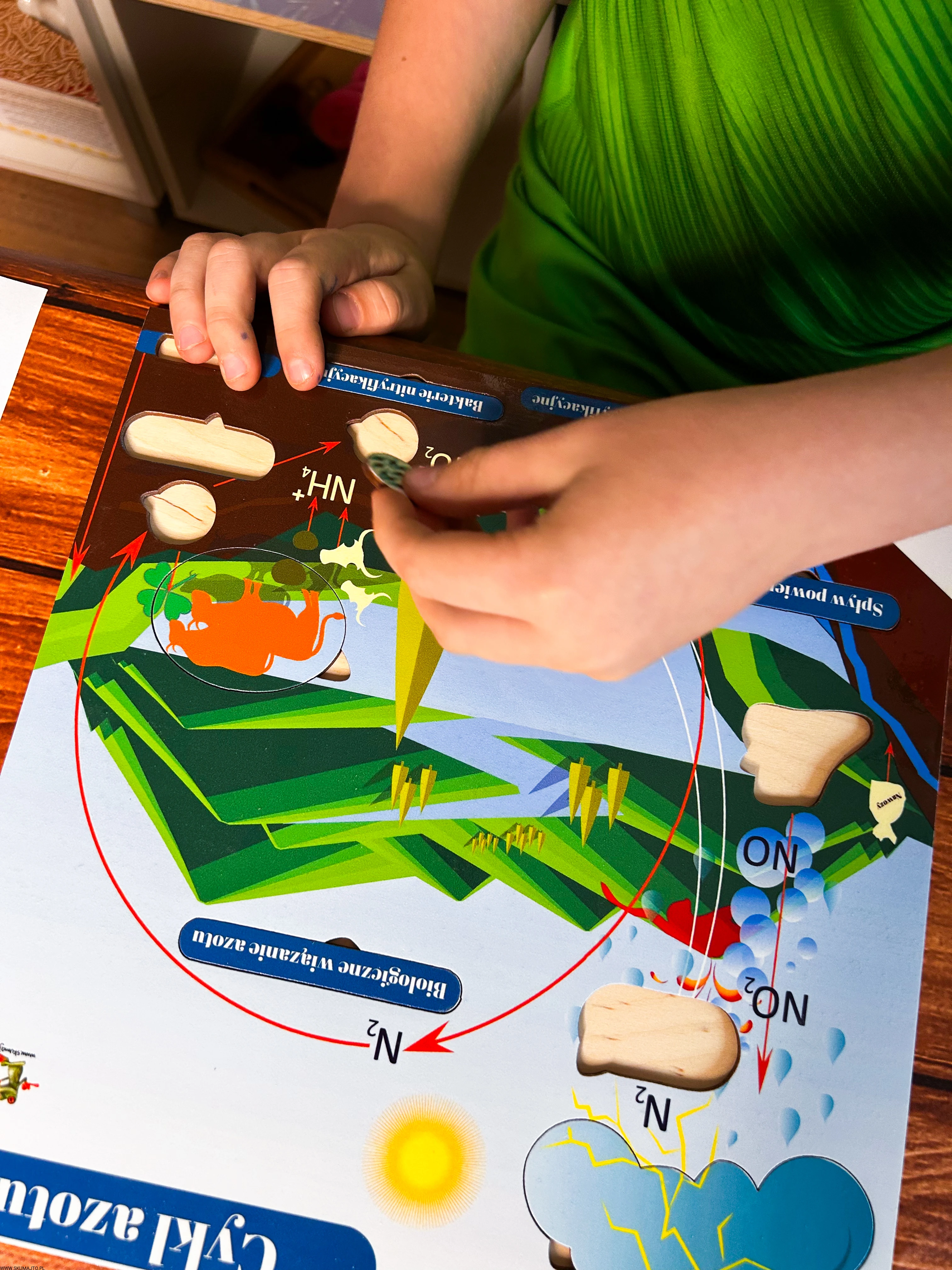 Cykl azotu, drewniana układanka edukacyjna, ochrona środowiska