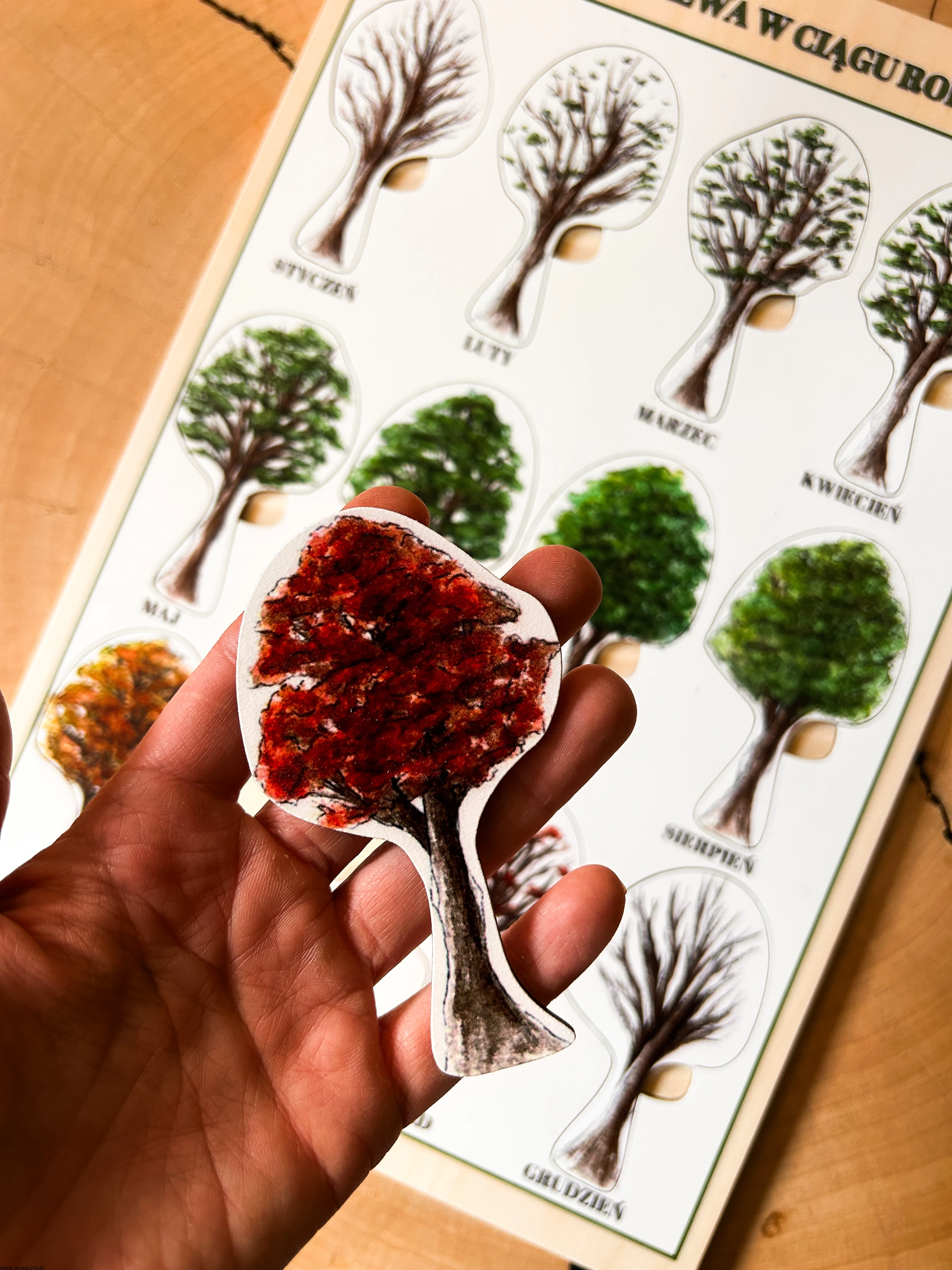 Nauka miesięcy i pór roku – dzięki skojarzeniom z wyglądem drzewa łatwiej zapamiętać, co dzieje się w danym czasie.