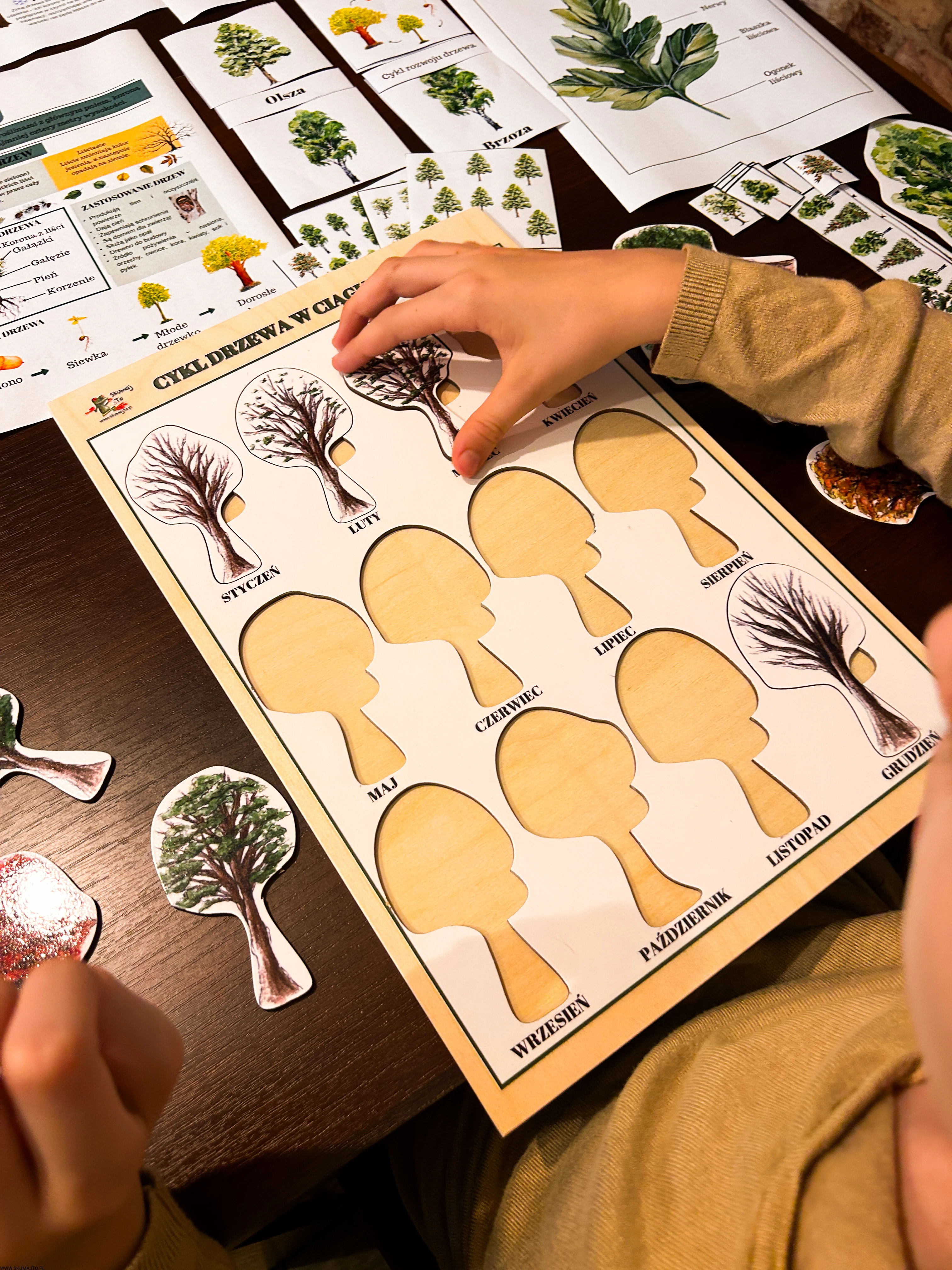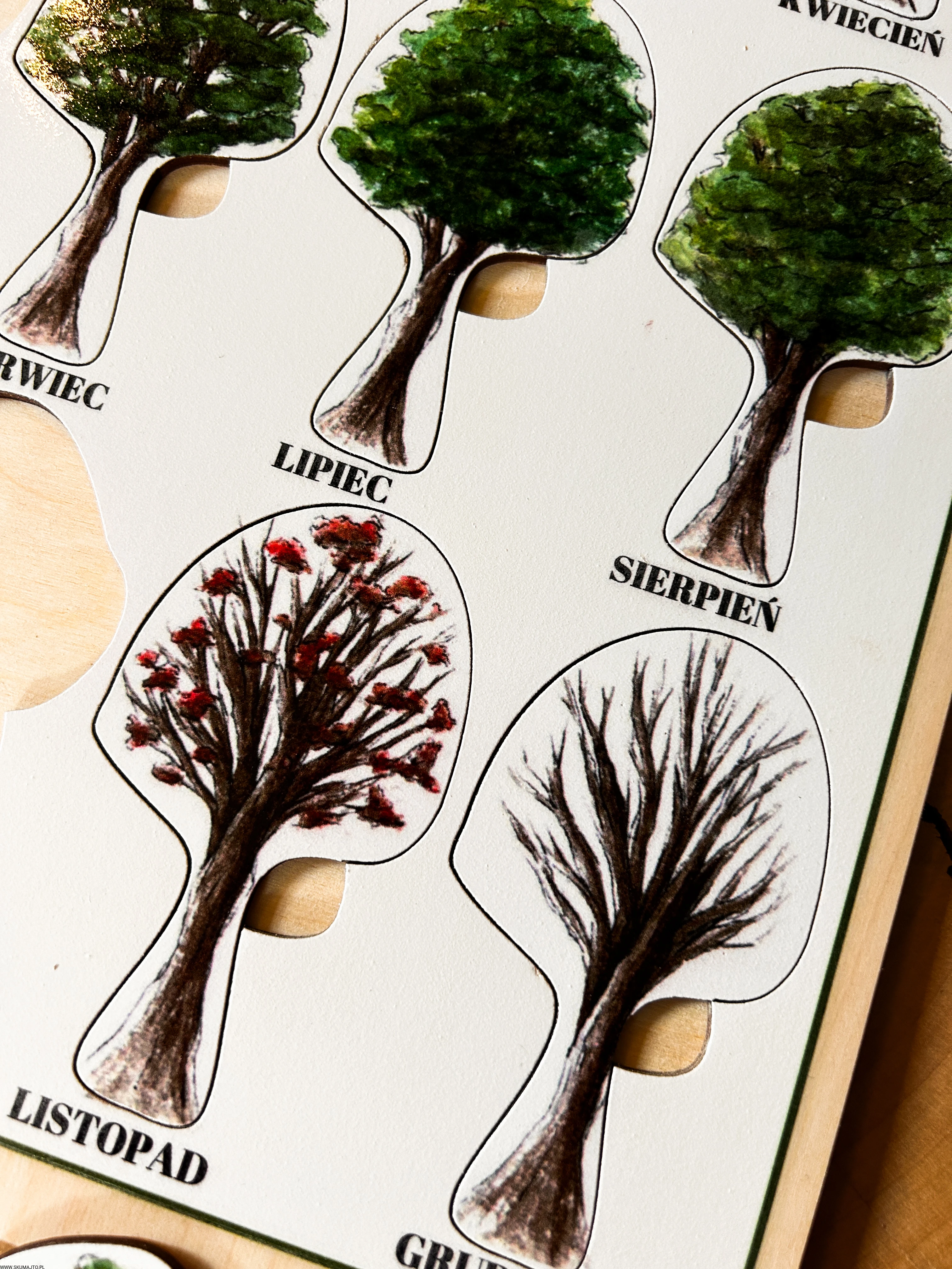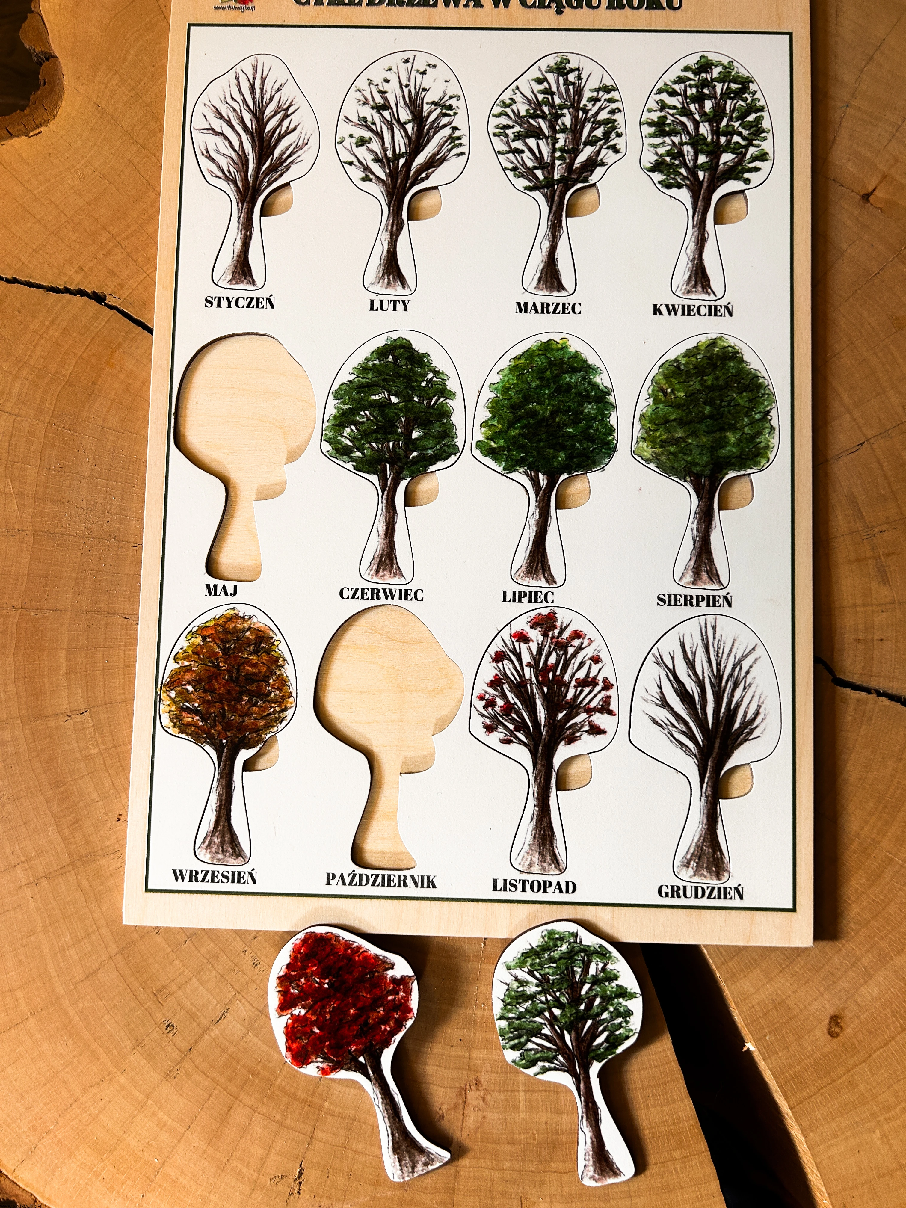 Ta układanka to nie tylko zestaw drewnianych elementów. To zaproszenie do rozmów o porach roku, przyrodzie i cykliczności życia.