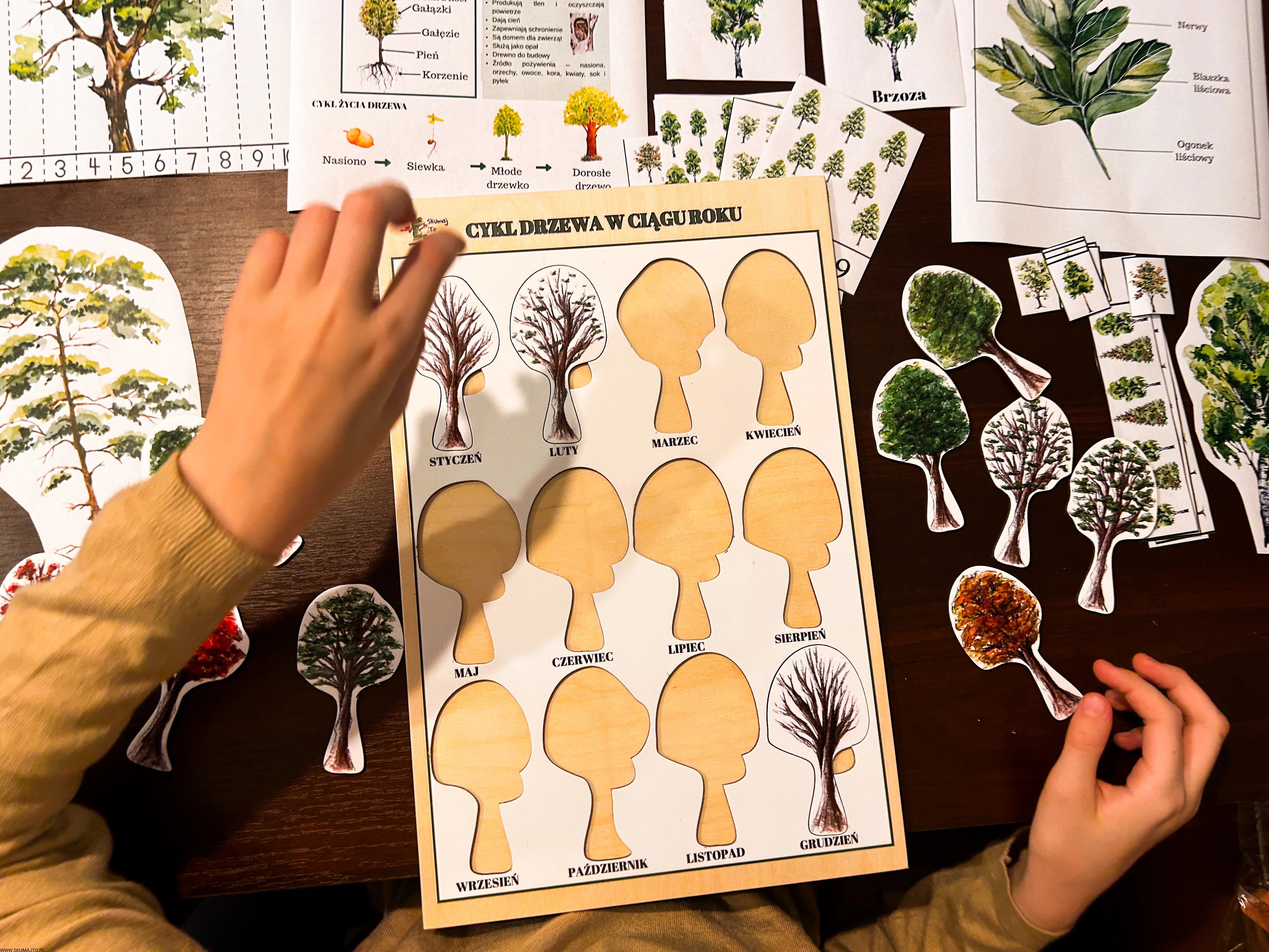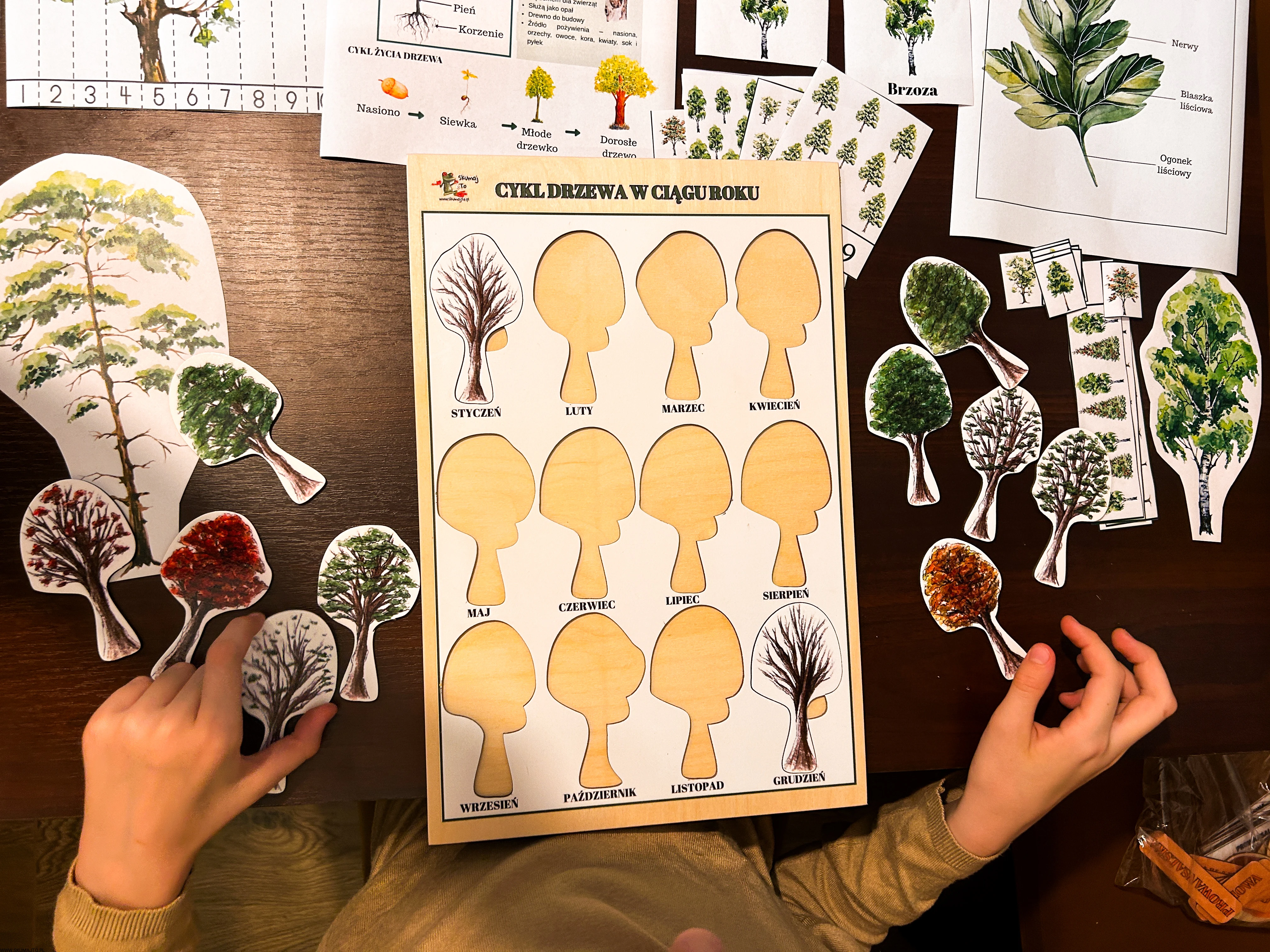 cykl drzewa w ciągu roku, zmiany w przyrodzie, edukacja przyrodnicza dla dzieci, pory roku dla przedszkolaków, drzewo w różnych porach roku, układanka edukacyjna drzewa, budowa drzewa, karty edukacyjne drzewa, zabawy z drzewem, materiały przyrodnicze dla dzieci, miesiące nauka dla dzieci, obserwacja przyrody