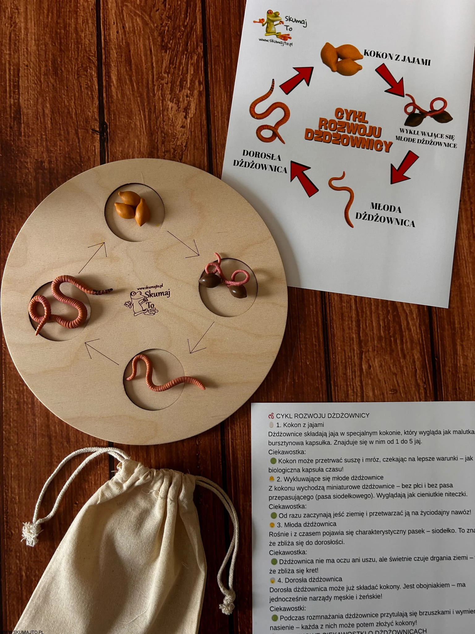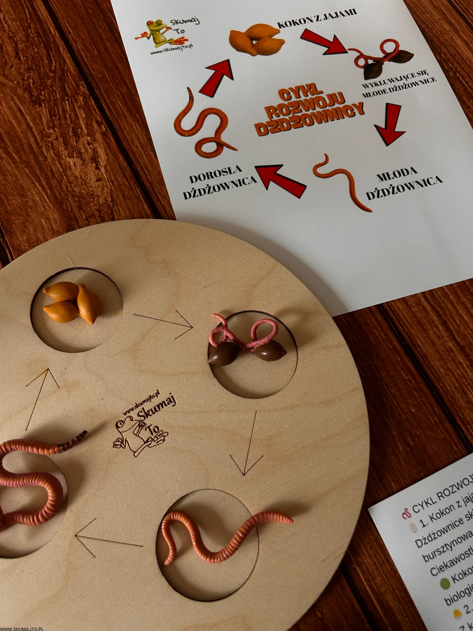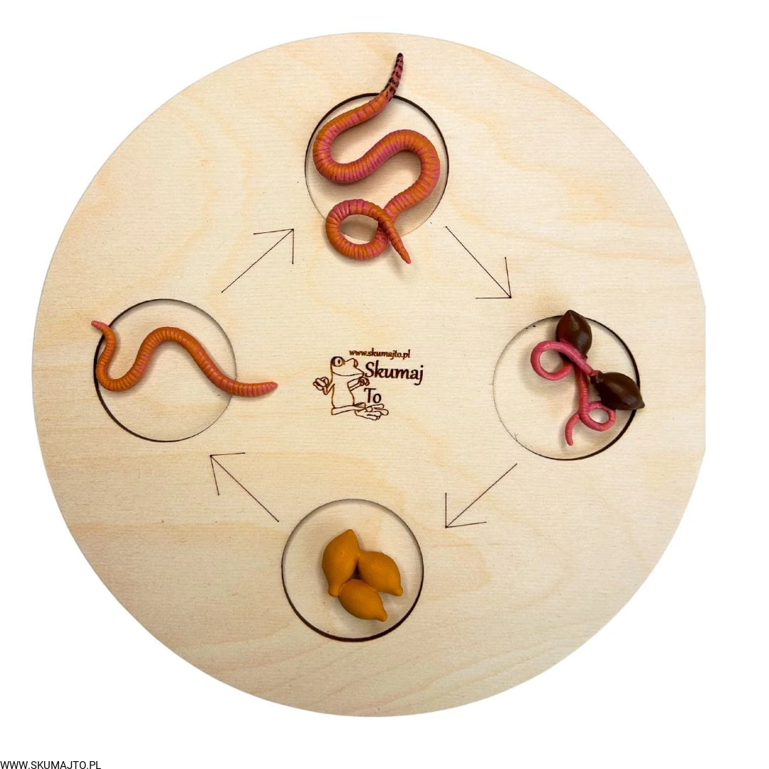 Cykl rozwoju Dżdżownicy, drewniana układanka, figurki, Montessori