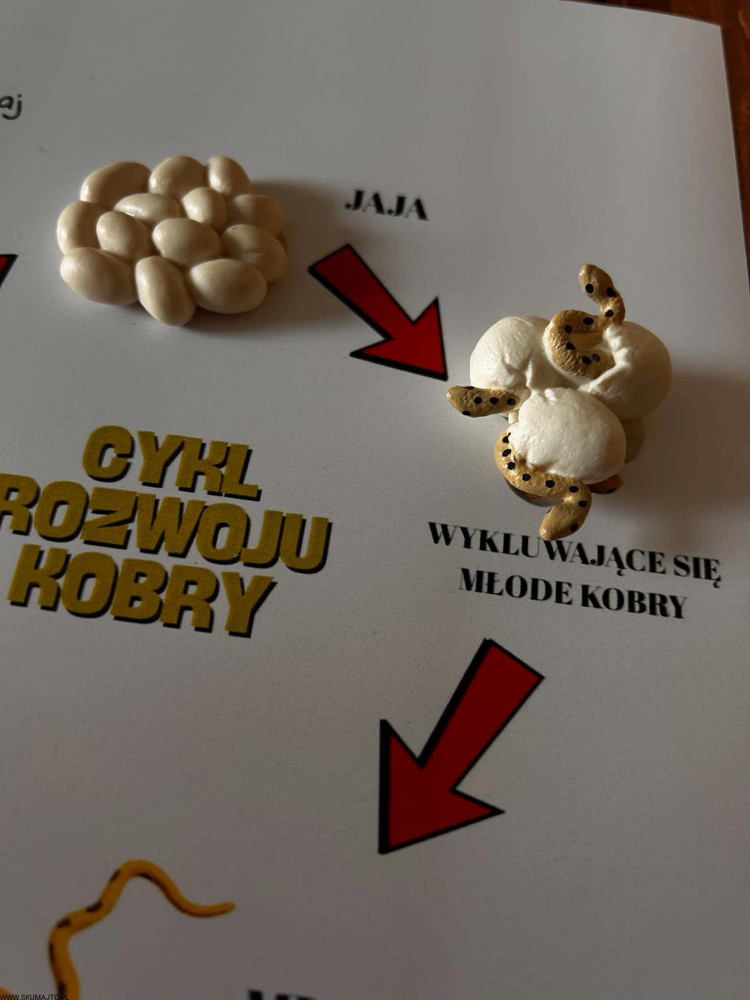 Każdy etap życia kobry został odwzorowany z dbałością o szczegóły – od kształtu jaj, przez wykluwające się maluchy, po smukłe ciało dorosłej kobry. To nauka, która pobudza zmysły.