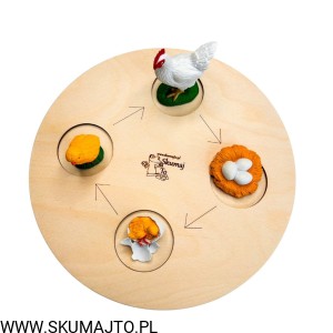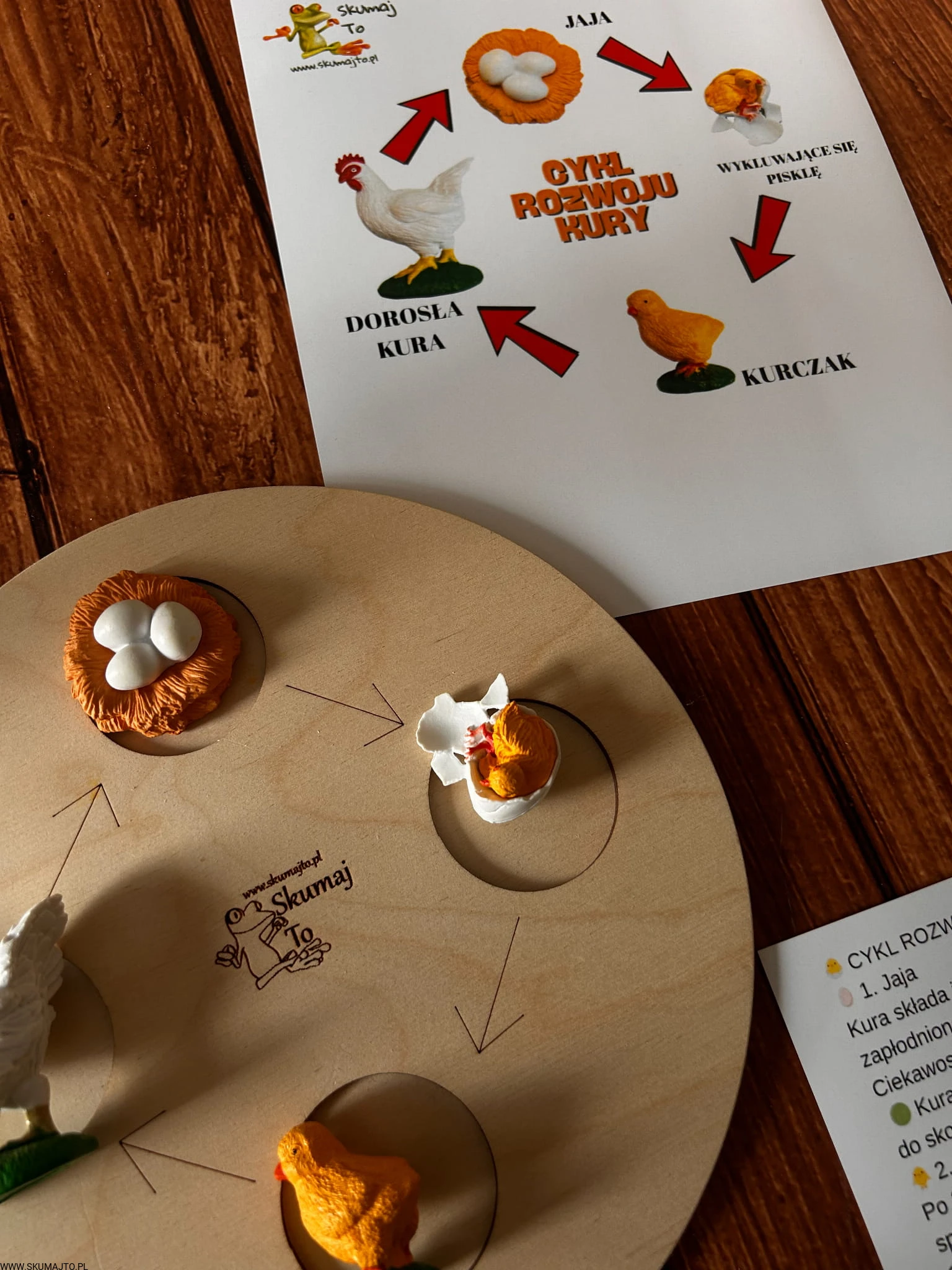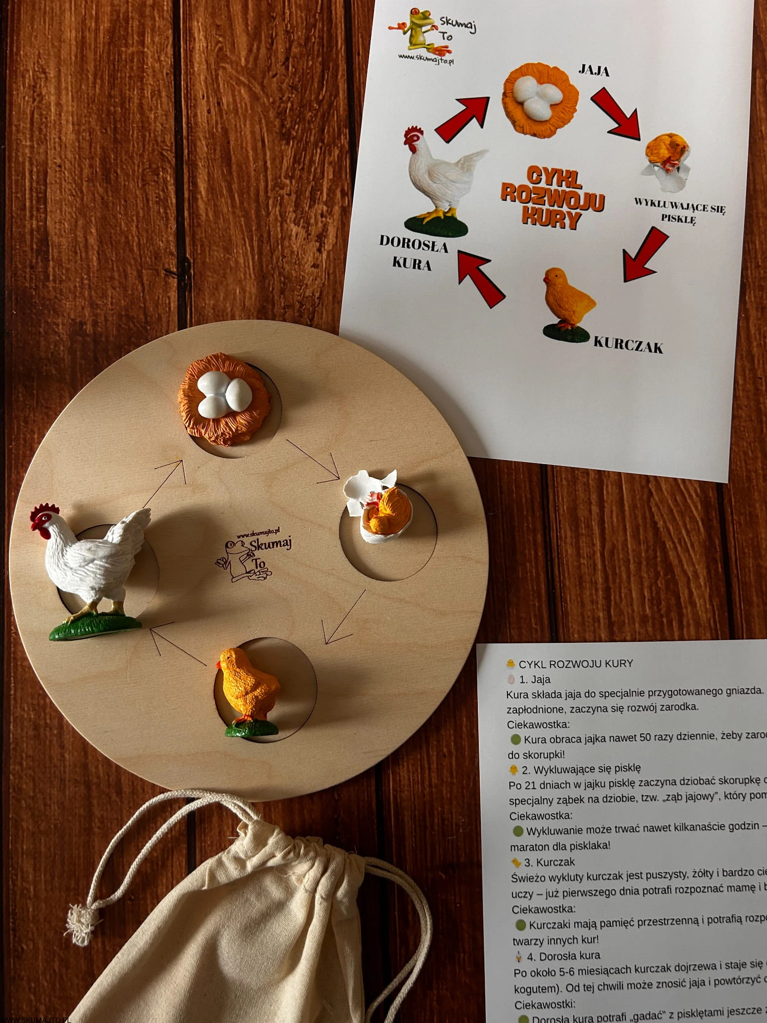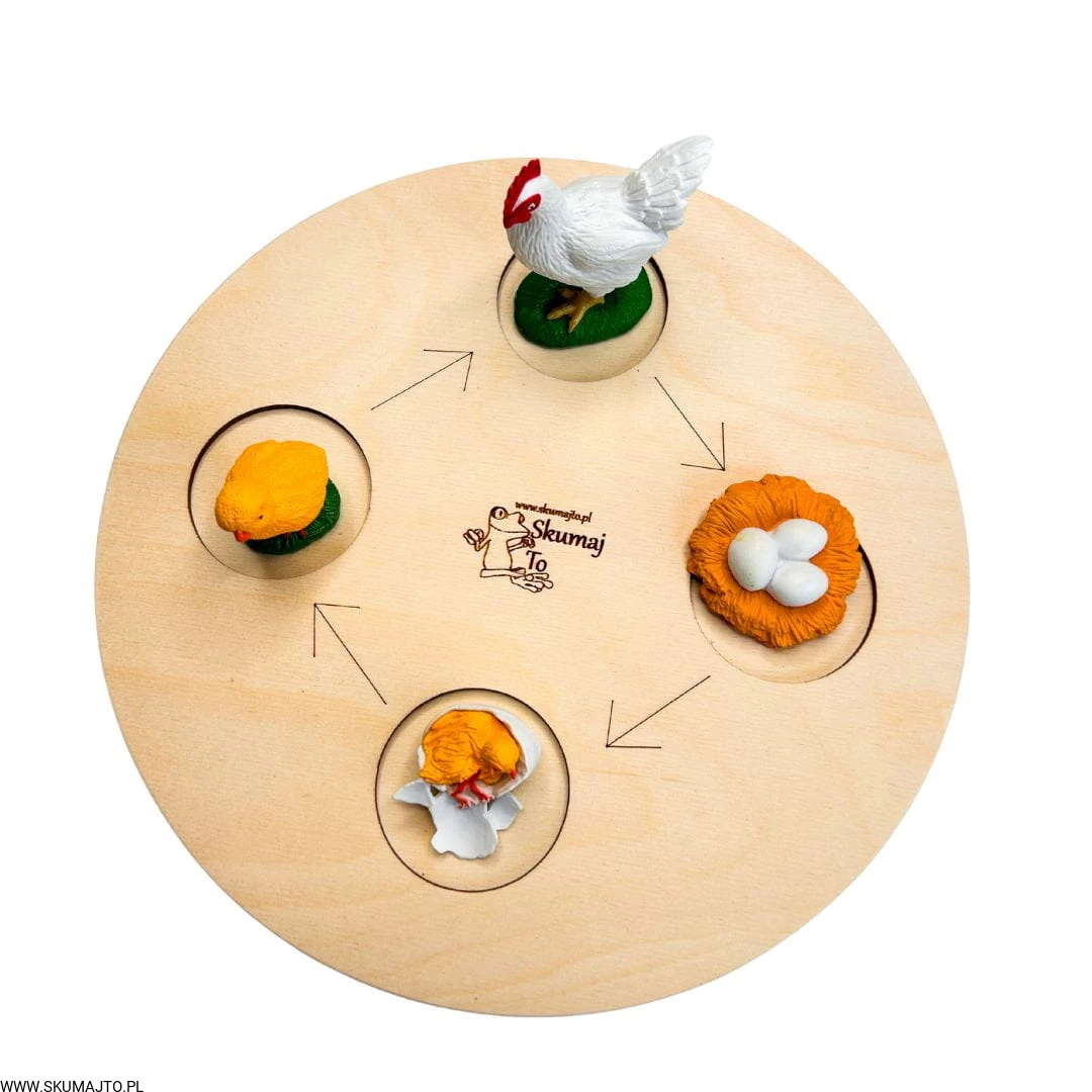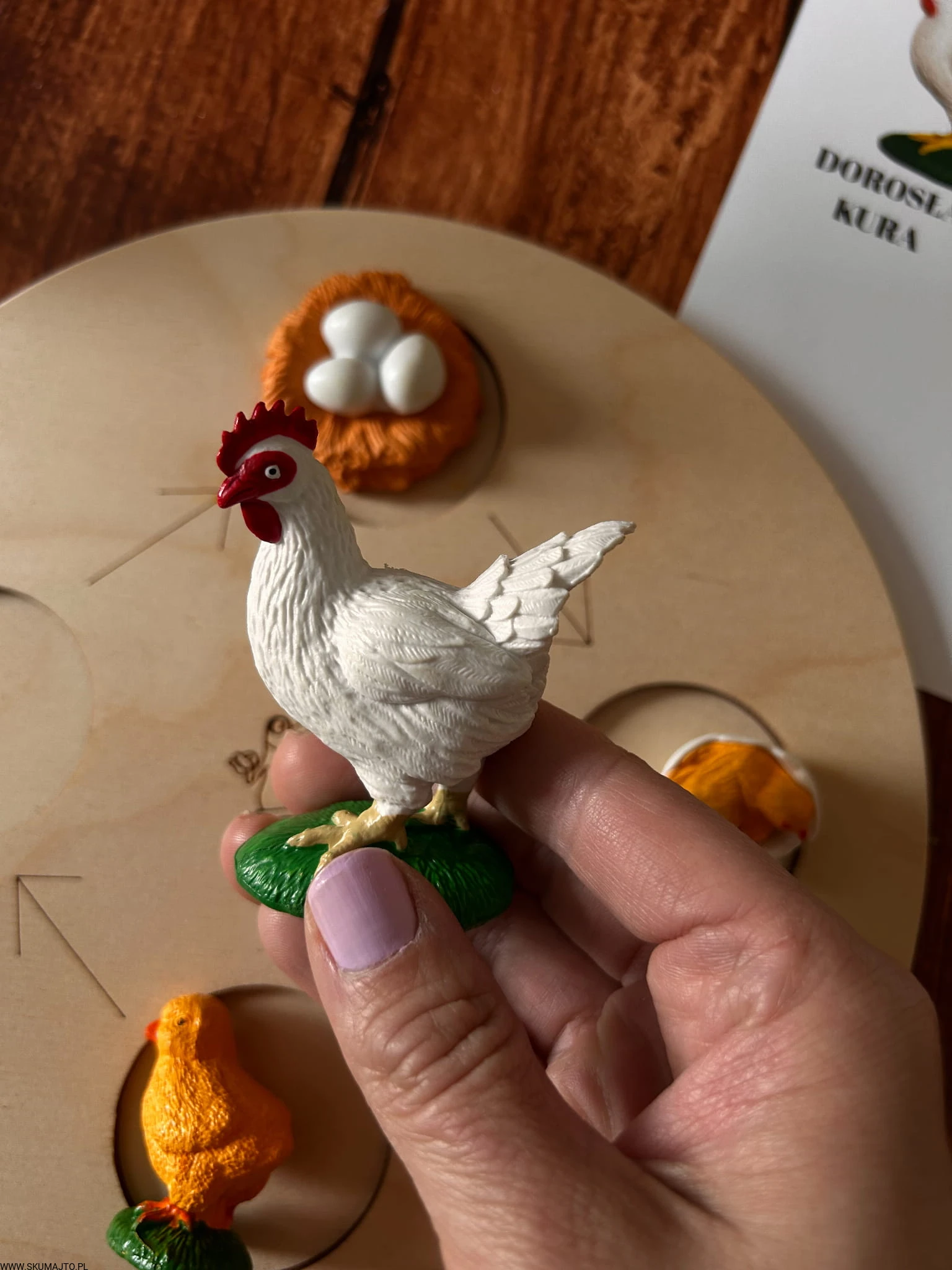 Cykl rozwoju Kury, drewniana układanka, figurki, Montessori