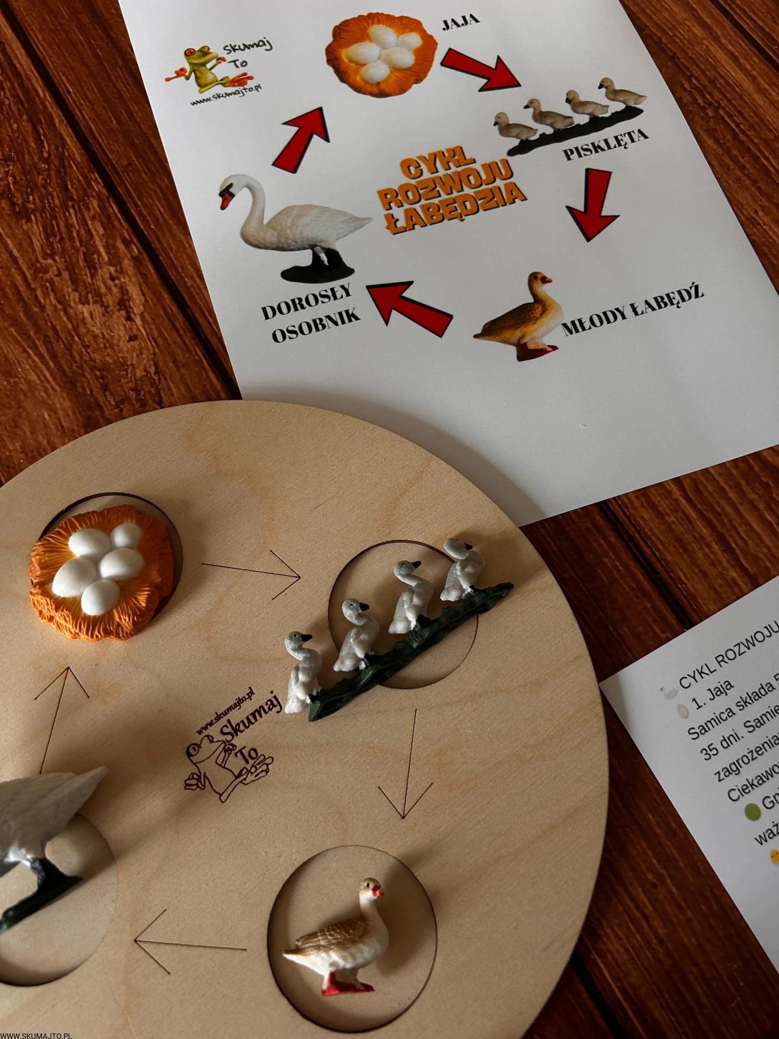 Cykl rozwoju Łabędzia, figurki, Montessori