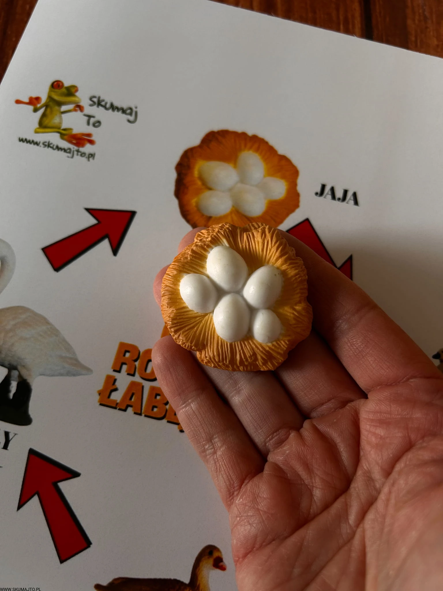 Każdy etap życia łabędzia odwzorowany jest z ogromną dbałością o szczegóły. Dziecko z łatwością zapamięta, jak wygląda jajko, pisklę i dorosły ptak.