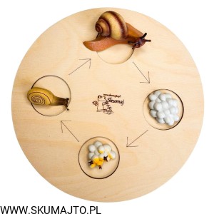 To sensoryczna pomoc edukacyjna, która przedstawia cztery etapy rozwoju ślimaka: