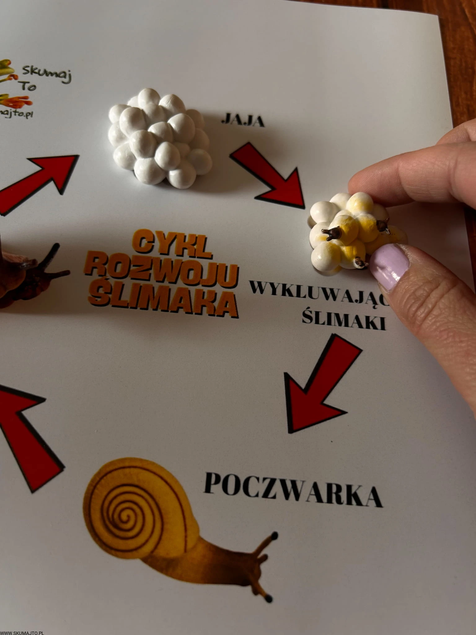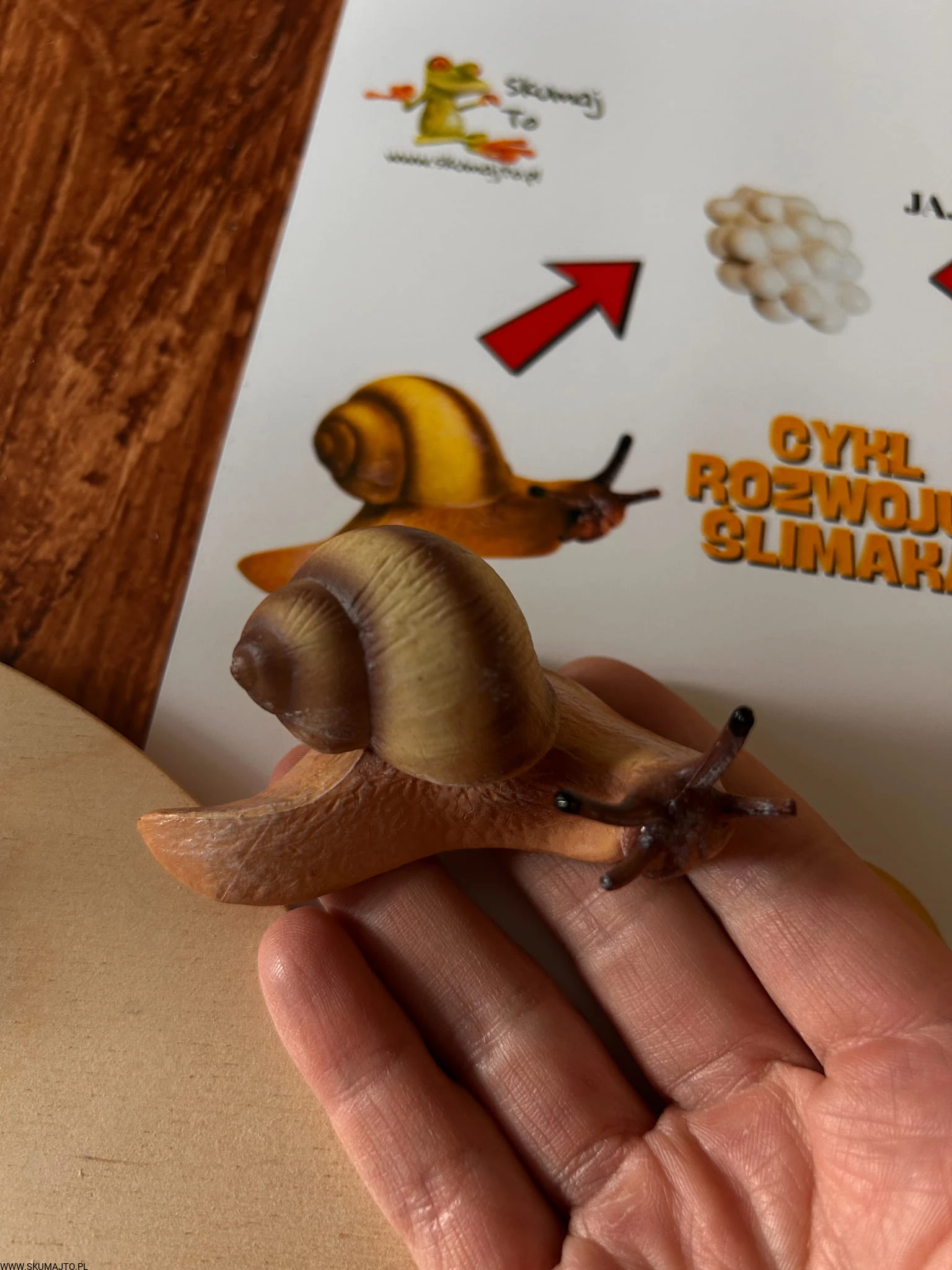 Zamiast odpowiadać ogólnikowo, daj mu możliwość samodzielnego odkrywania! Dzięki tej układance dziecko dowiaduje się, jak naprawdę wygląda rozwój ślimaka — od jajeczka, przez młodego ślimaczka, aż po dorosłego osobnika.