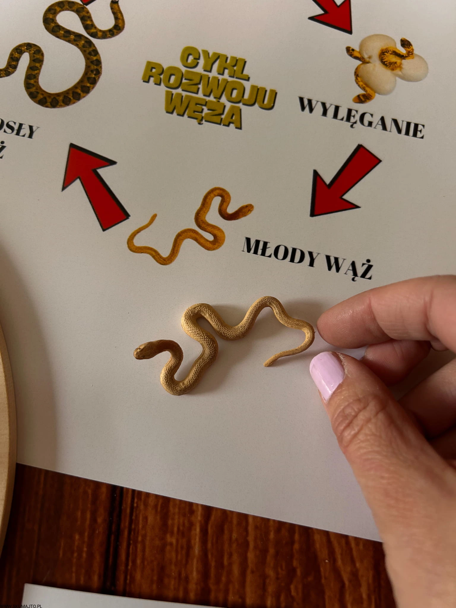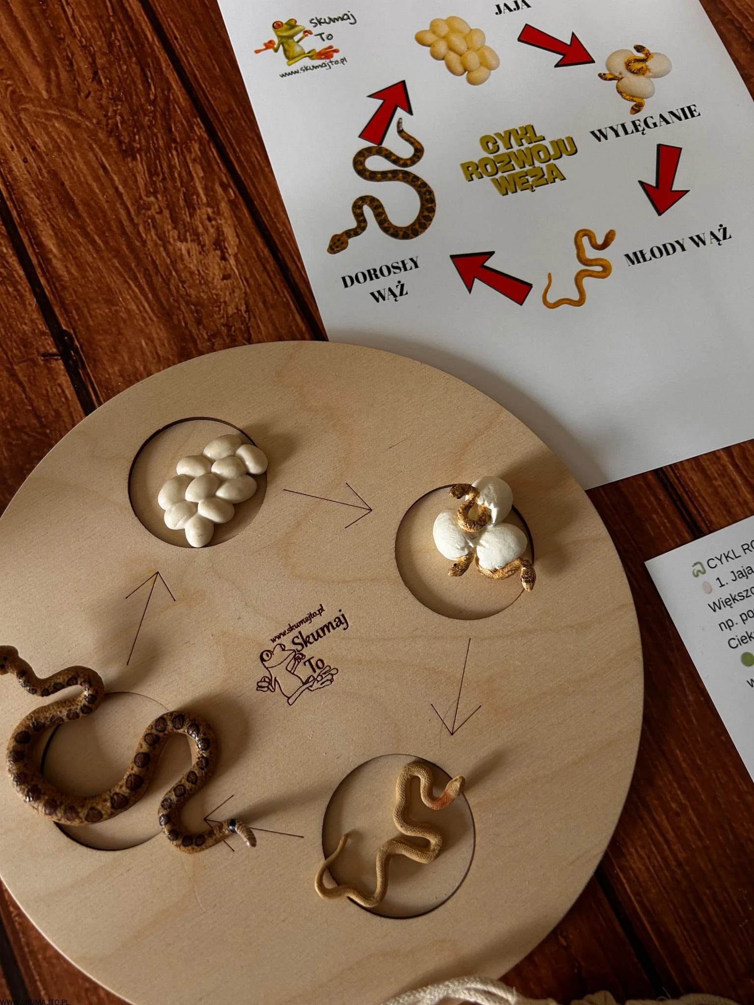 Cykl rozwoju Węża, układanka edukacyjna, figurki, Montessori