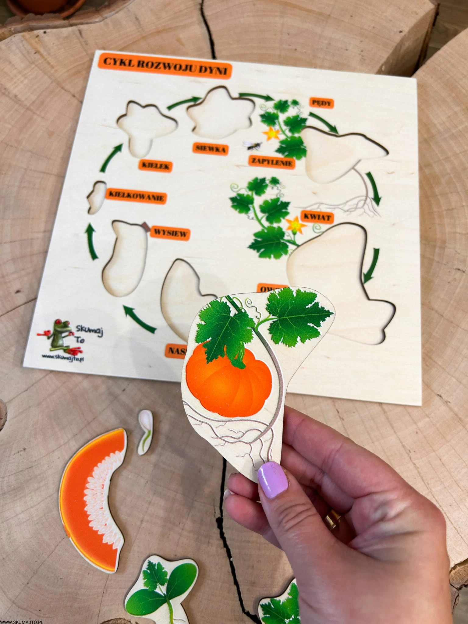 Cykl rozwoju dyni, układanka o dyni, dynia