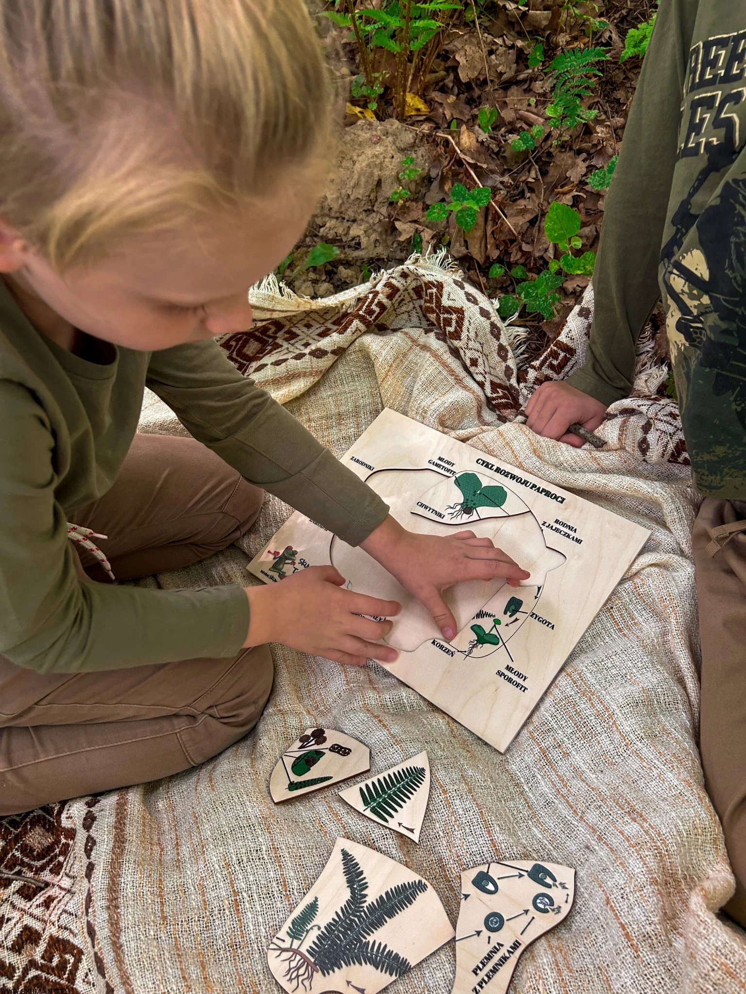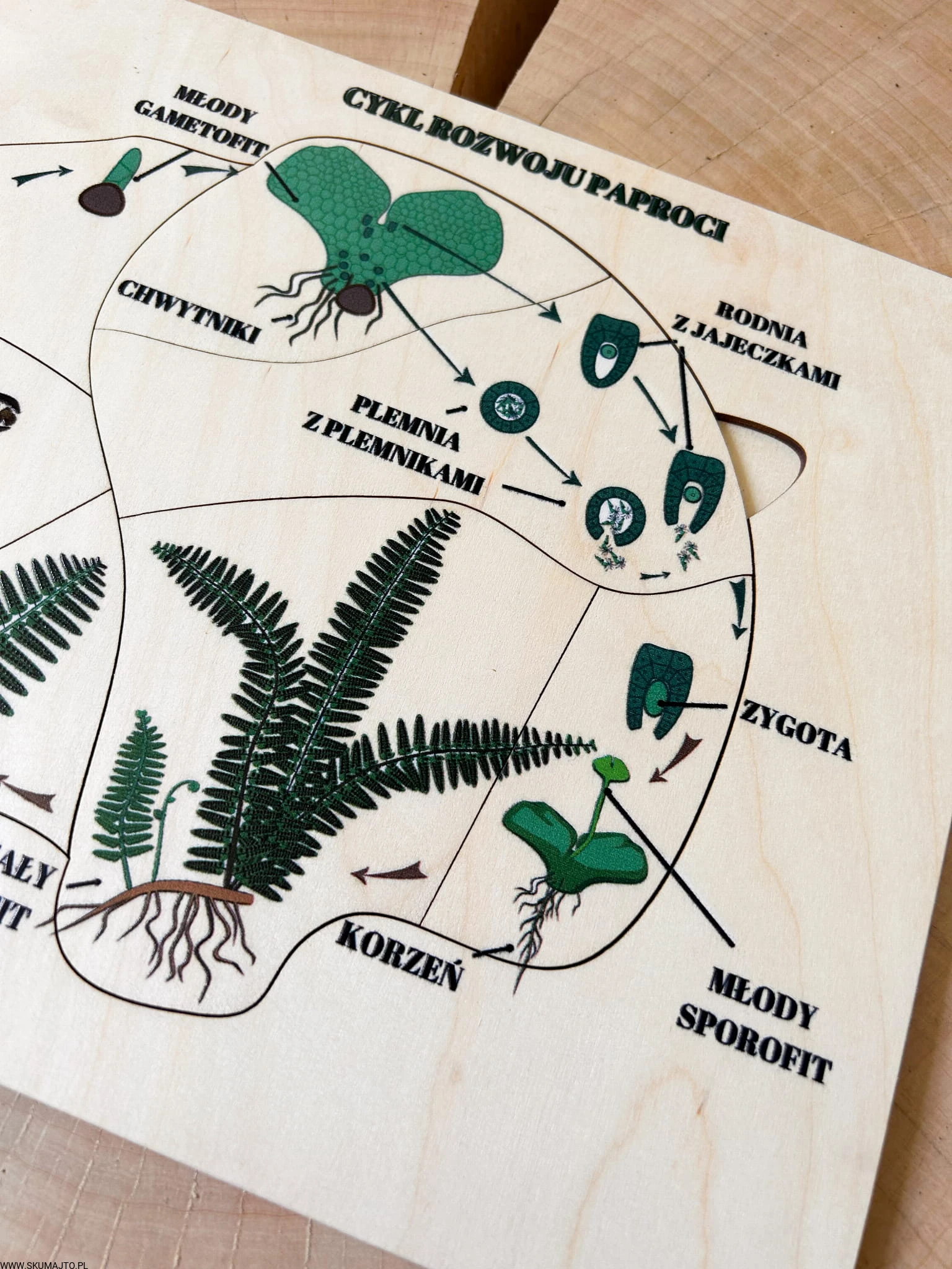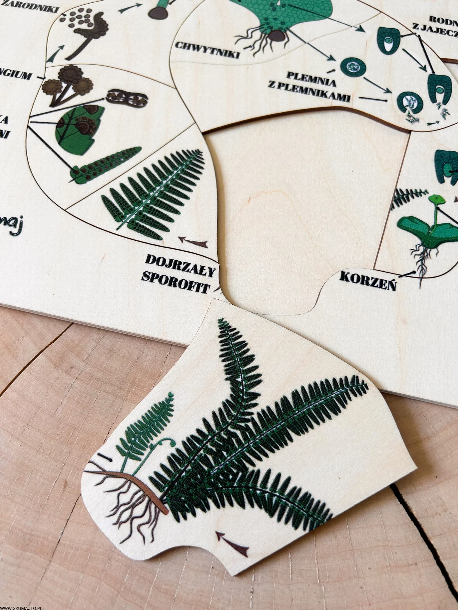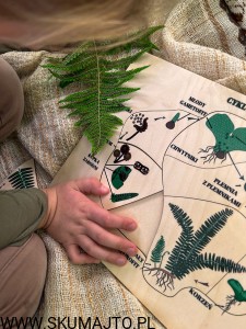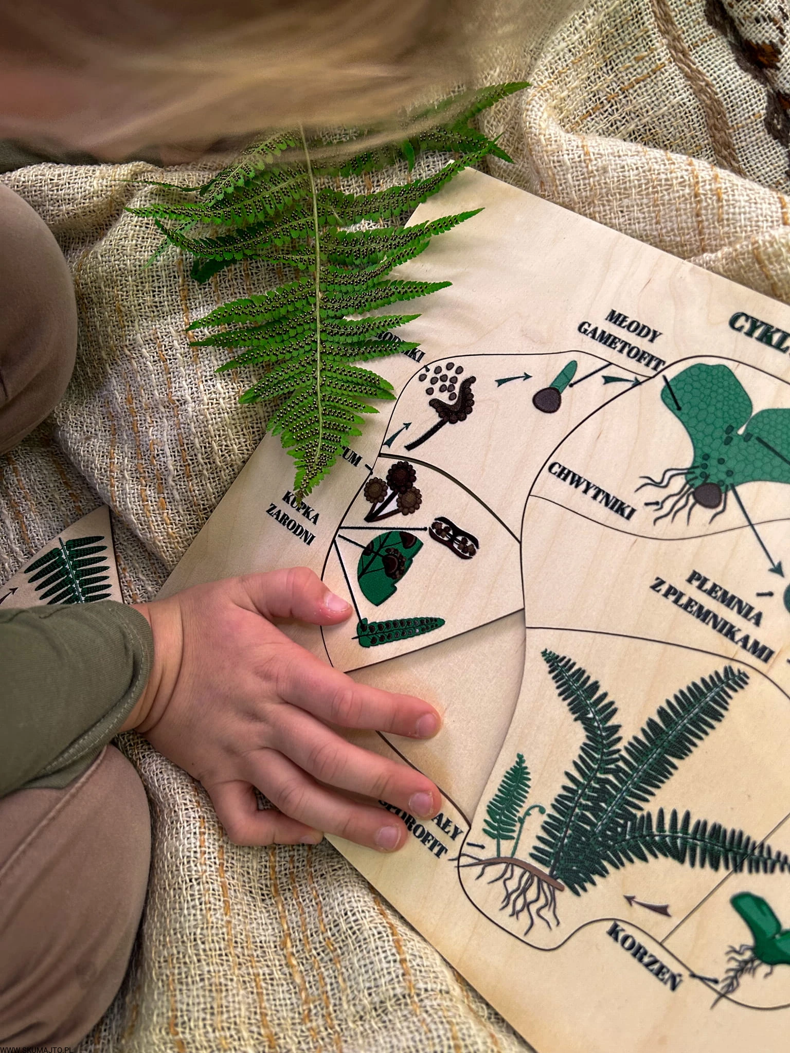 Cykl rozwoju paproci, drewniana układanka, edukacja leśna
