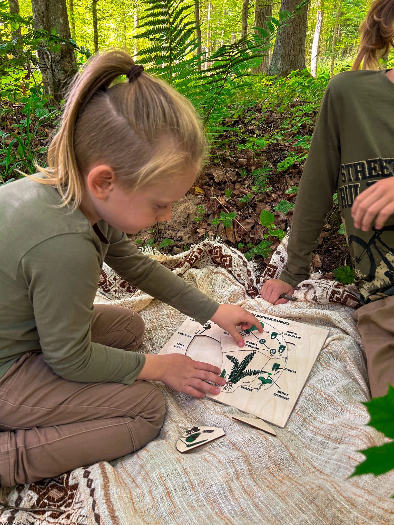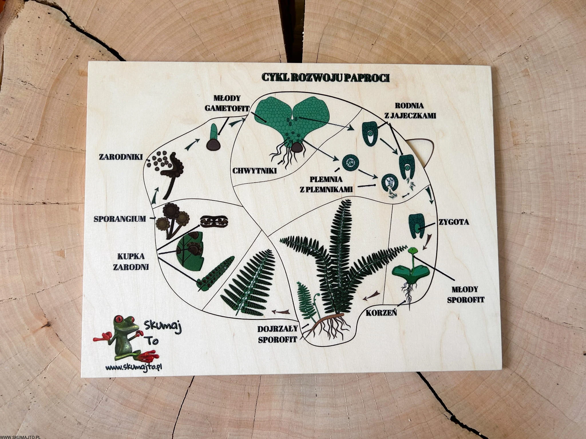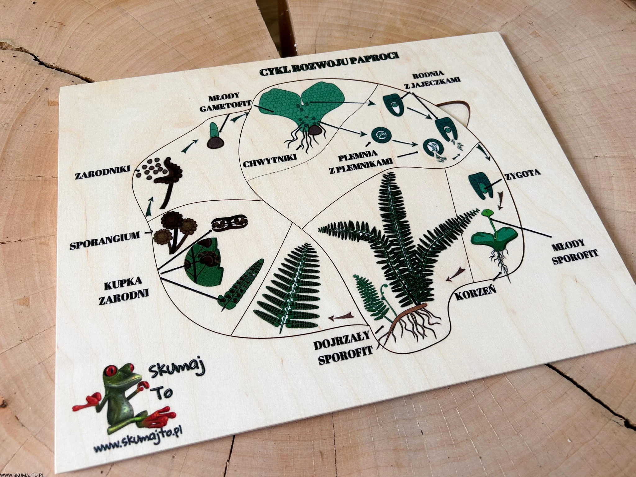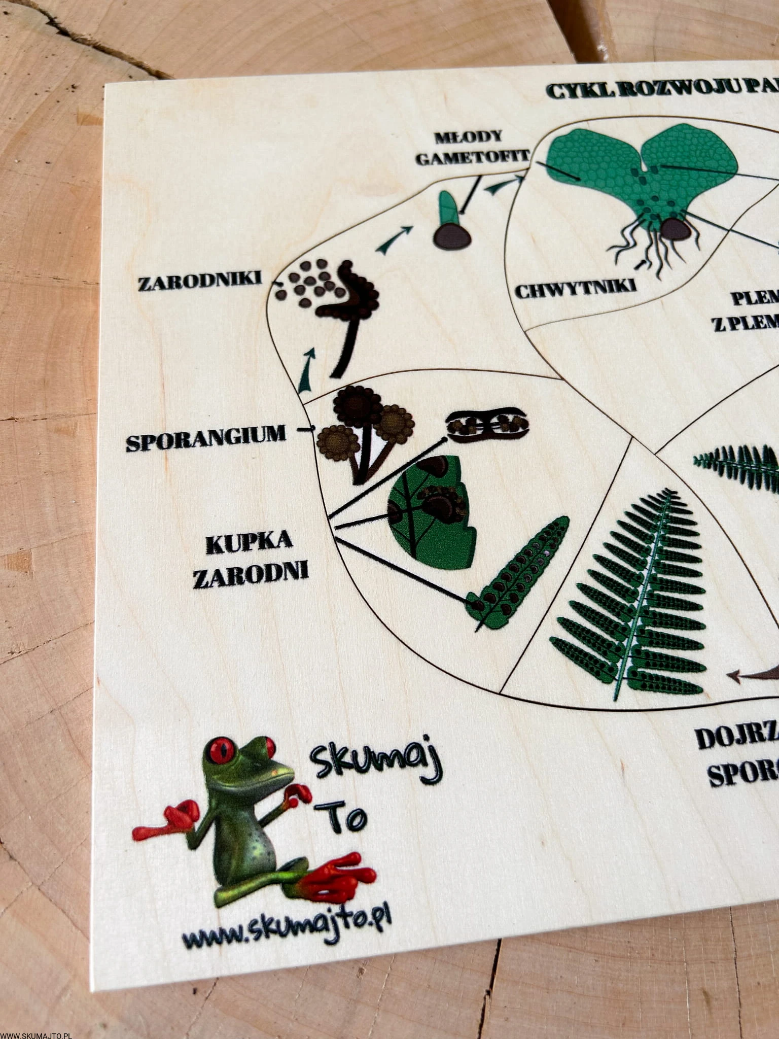 Cykl rozwoju paproci, drewniana układanka, edukacja leśna
