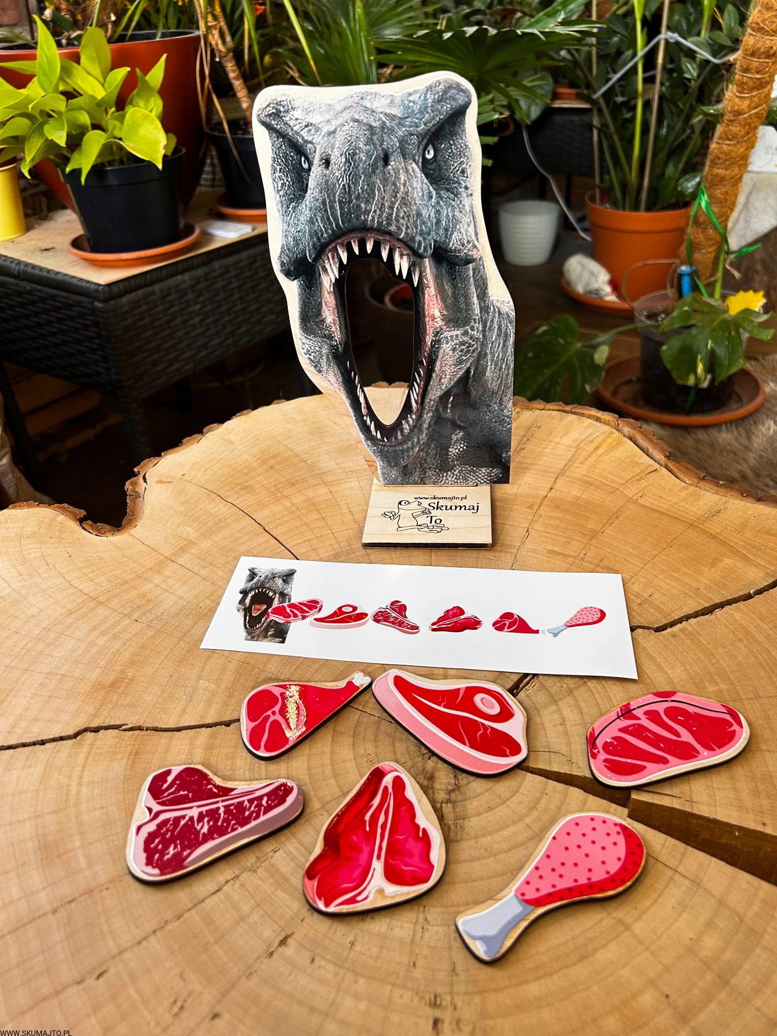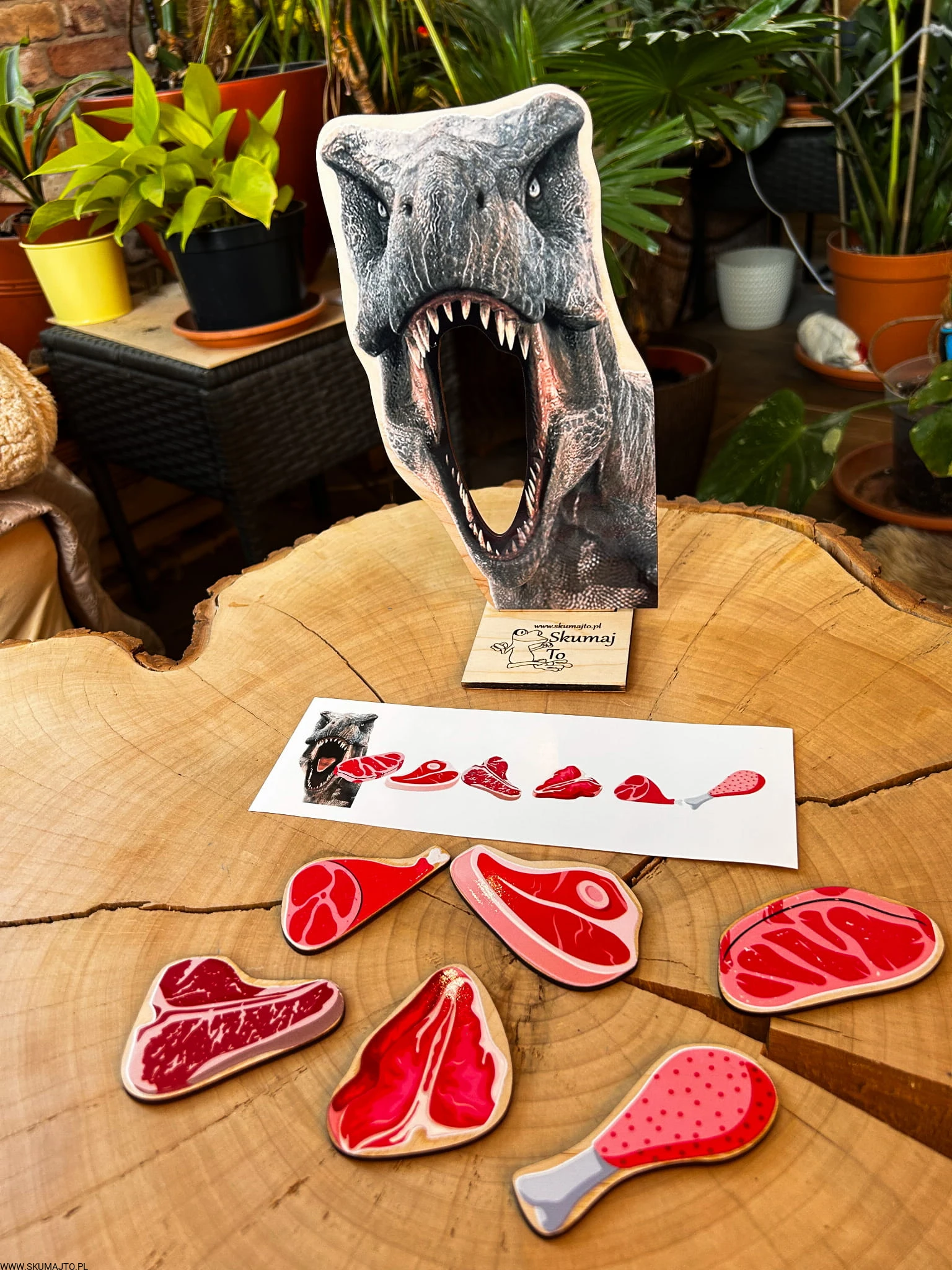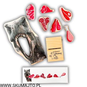Co zje dziś nasz dinozaur? A może oprócz mięsa dostanie coś „ekstra”? Dzieci uwielbiają wymyślać własne scenariusze zabawy, a ta układanka pozwala na mnóstwo kreatywnych eksperymentów!