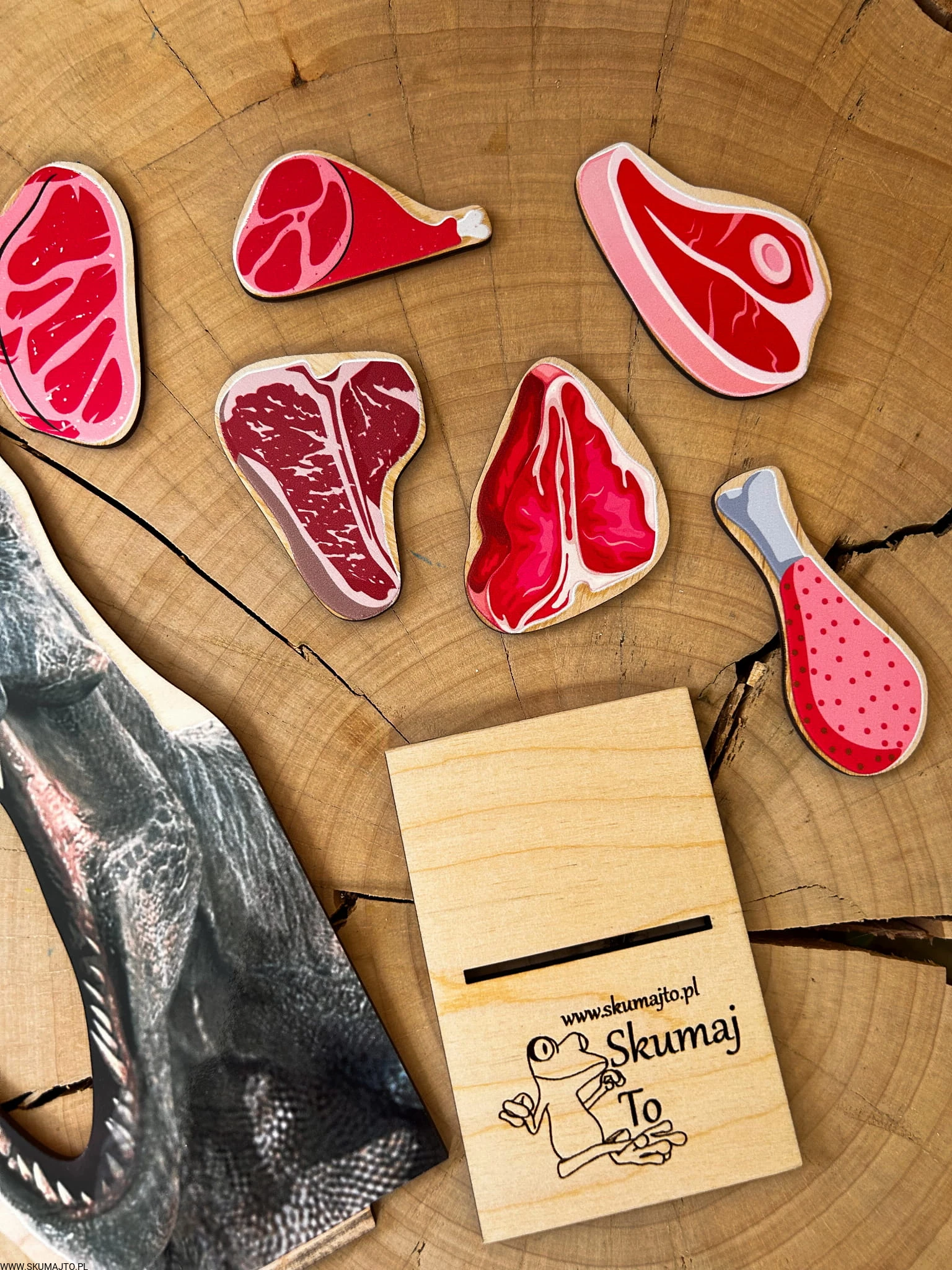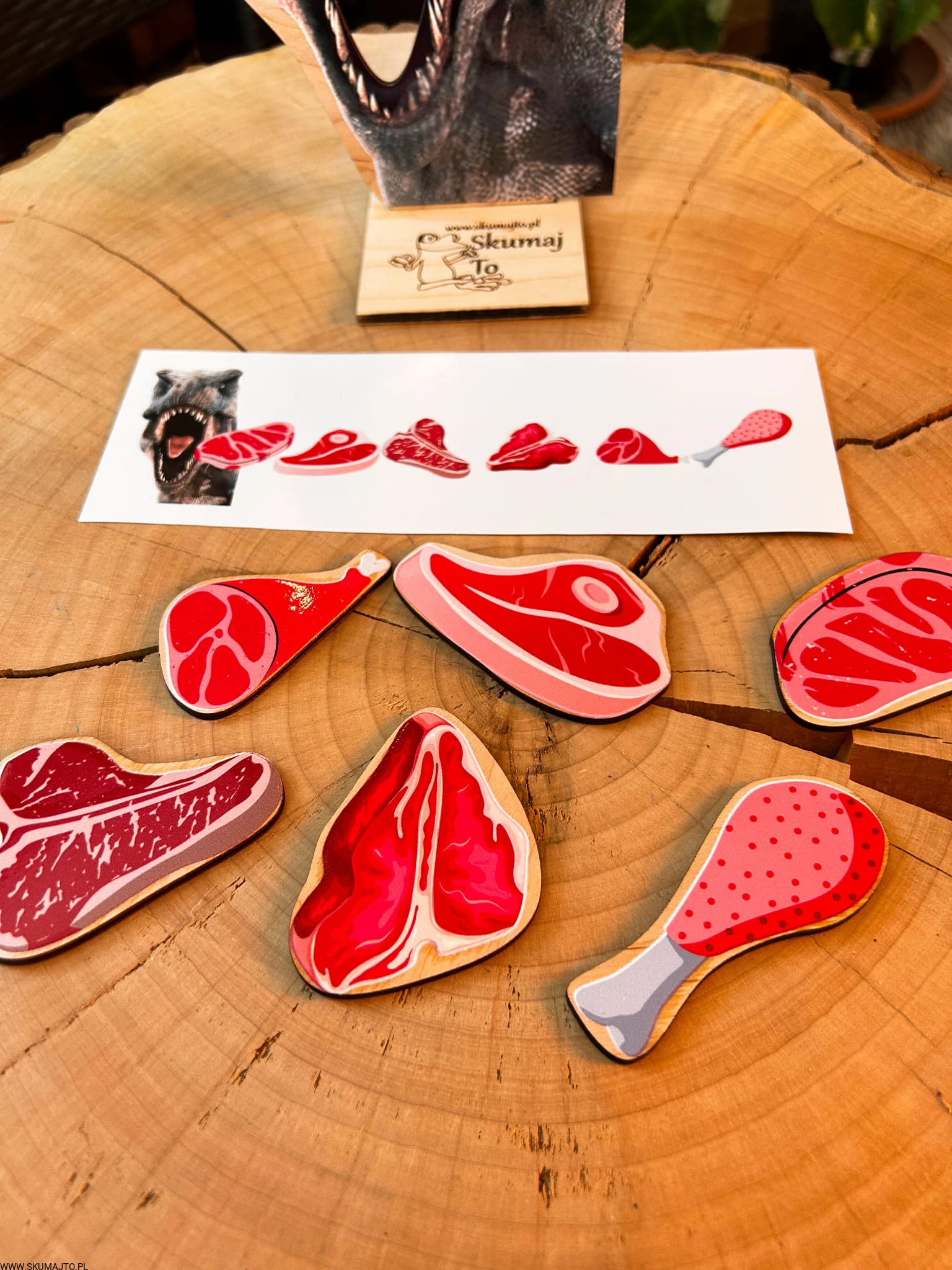 ✔️ 6 kawałków mięsa – różne rodzaje soczystych steków i kawałków kurczaka, które dziecko musi dopasować.