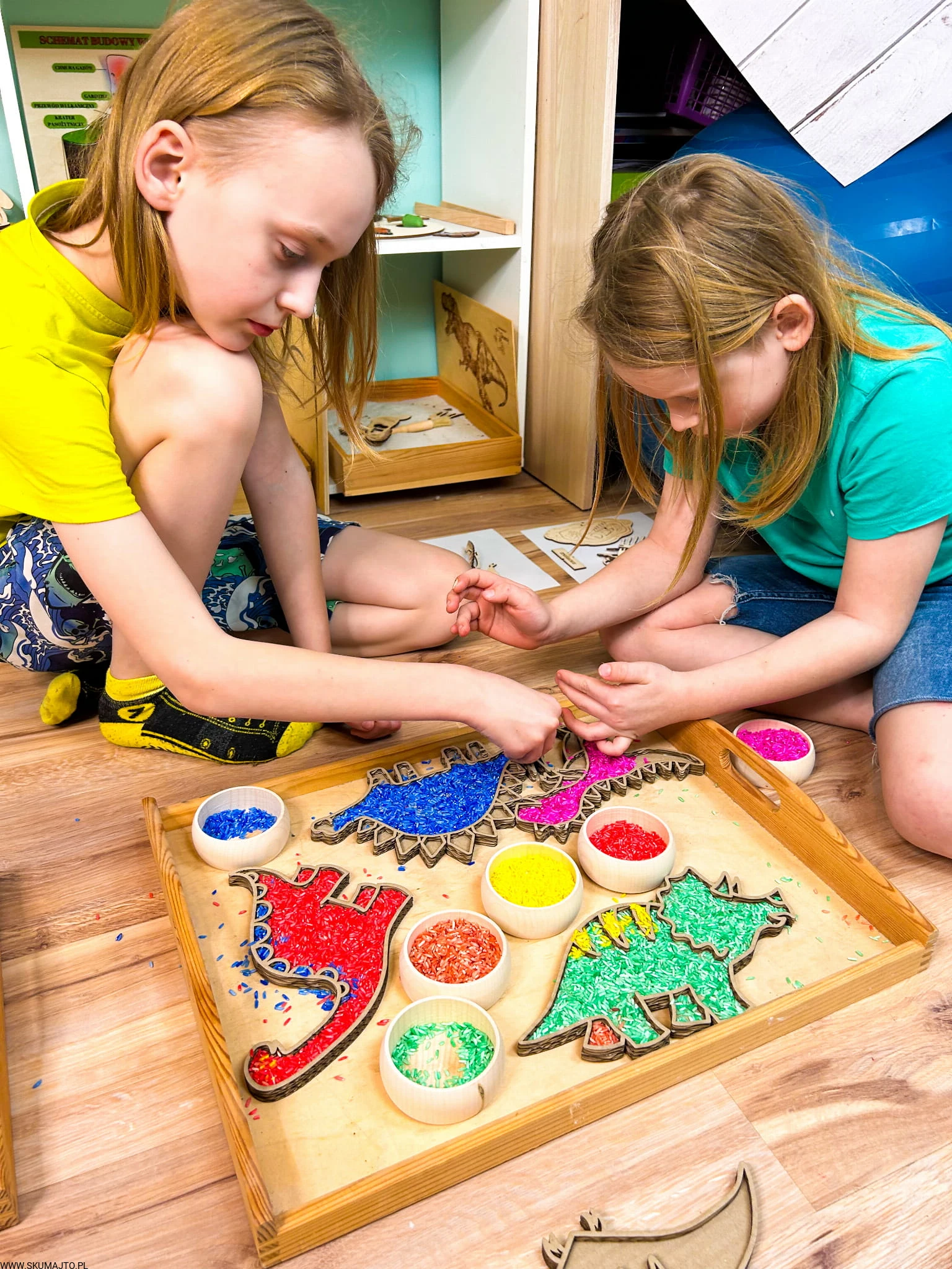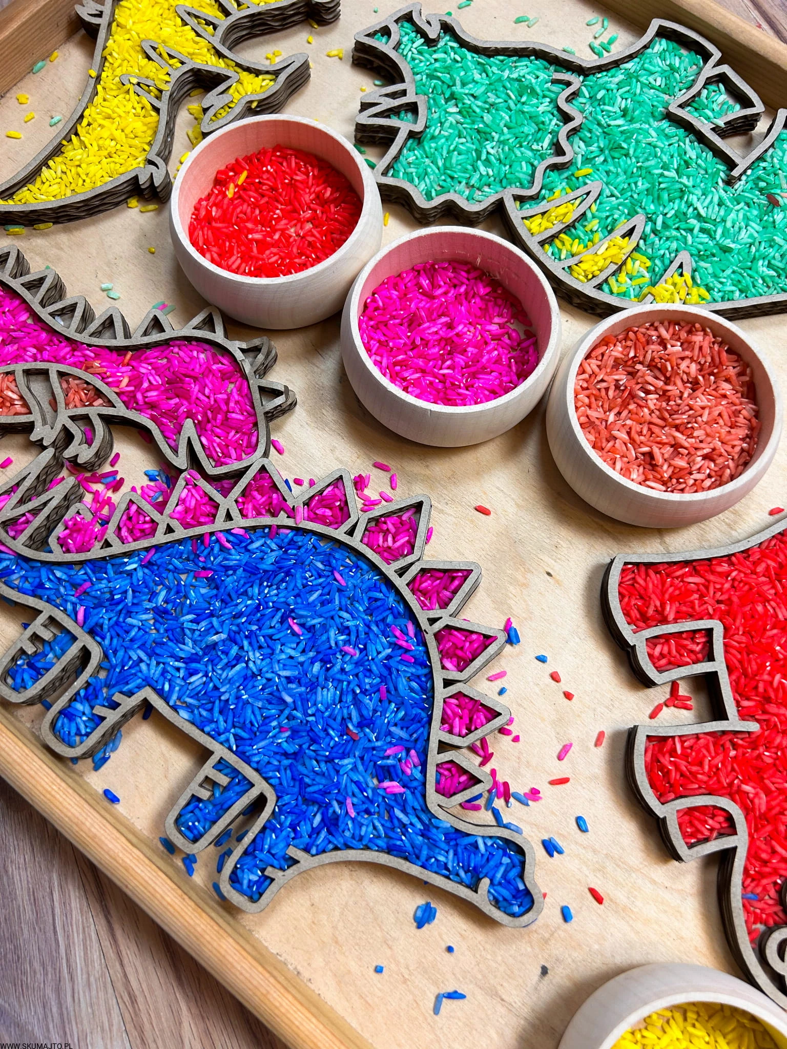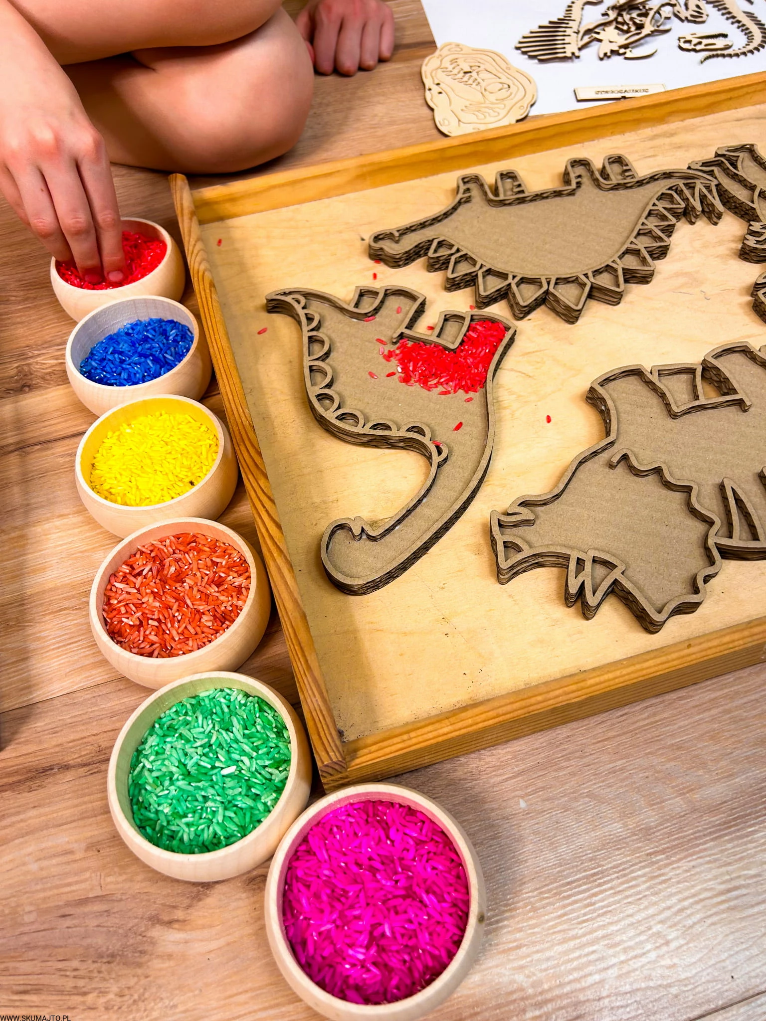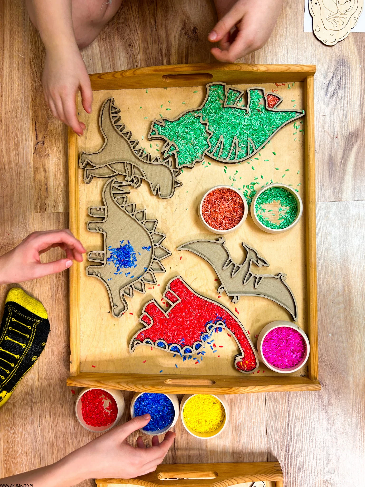 Zapraszamy do prehistorycznego świata z naszym zestawem "Dinozaurowe Sensorki" - wyjątkową kolekcją zabawek sensorycznych, która przeniesie Twoje dziecko w czasie do epoki dinozaurów! Ta starannie zaprojektowana kolekcja z kartonu, składająca się z pięciu wysypywanek przedstawiających różne gatunki dinozaurów, to idealny sposób na rozwijanie zmysłów dotyku, wzroku i koordynacji ręka-oko u dzieci w wieku przedszkolnym i szkolnym.