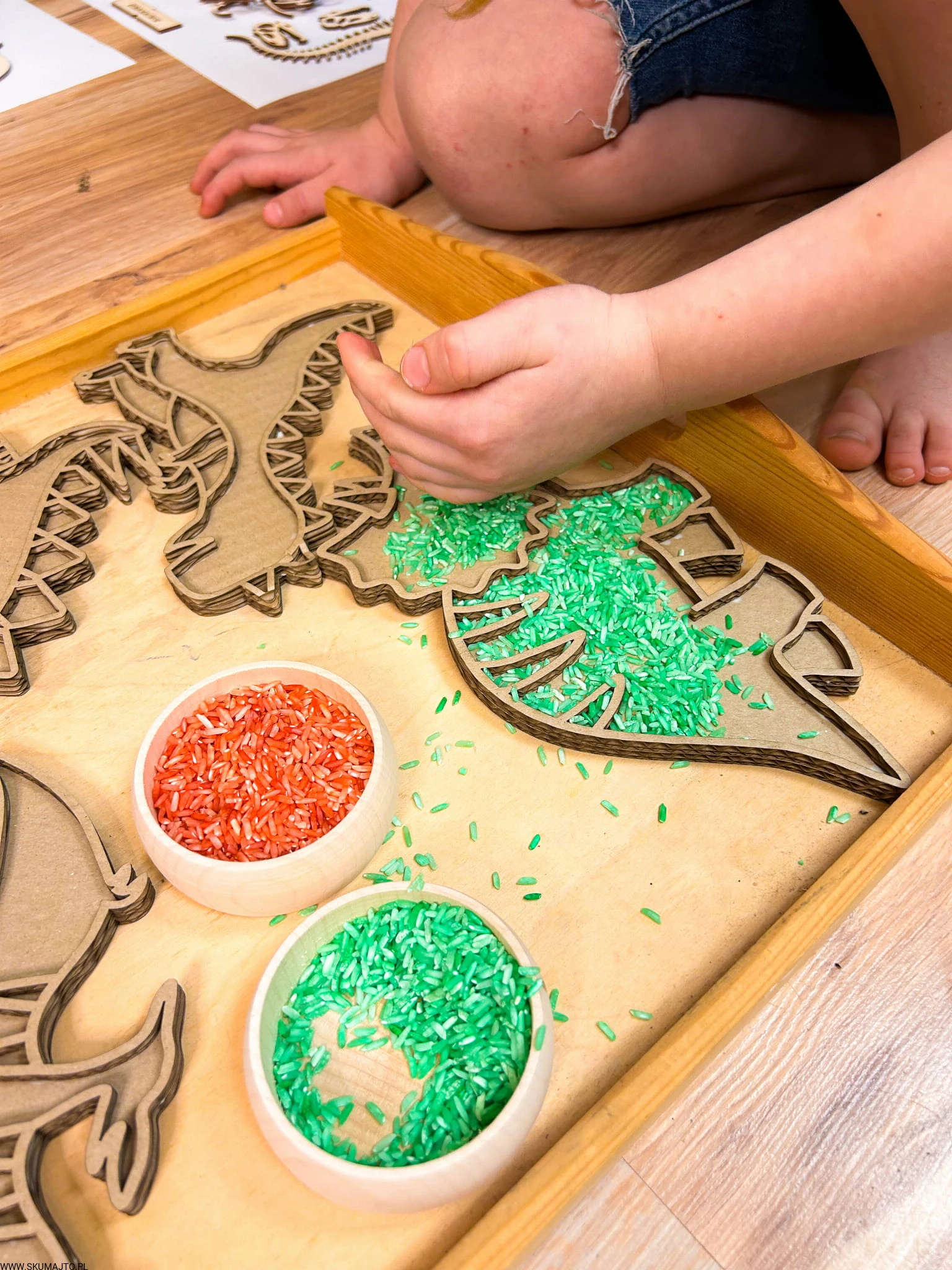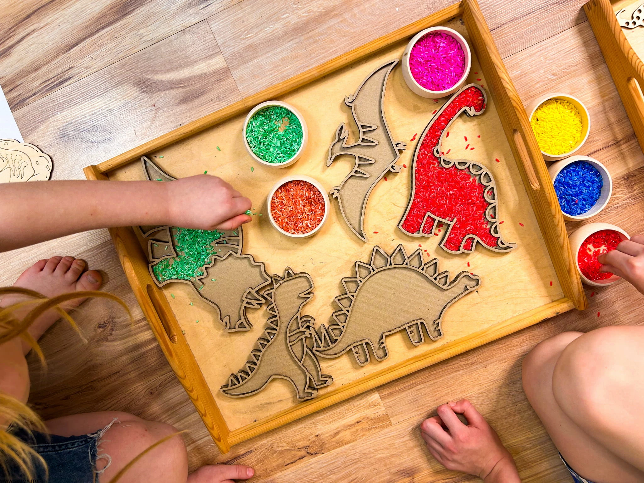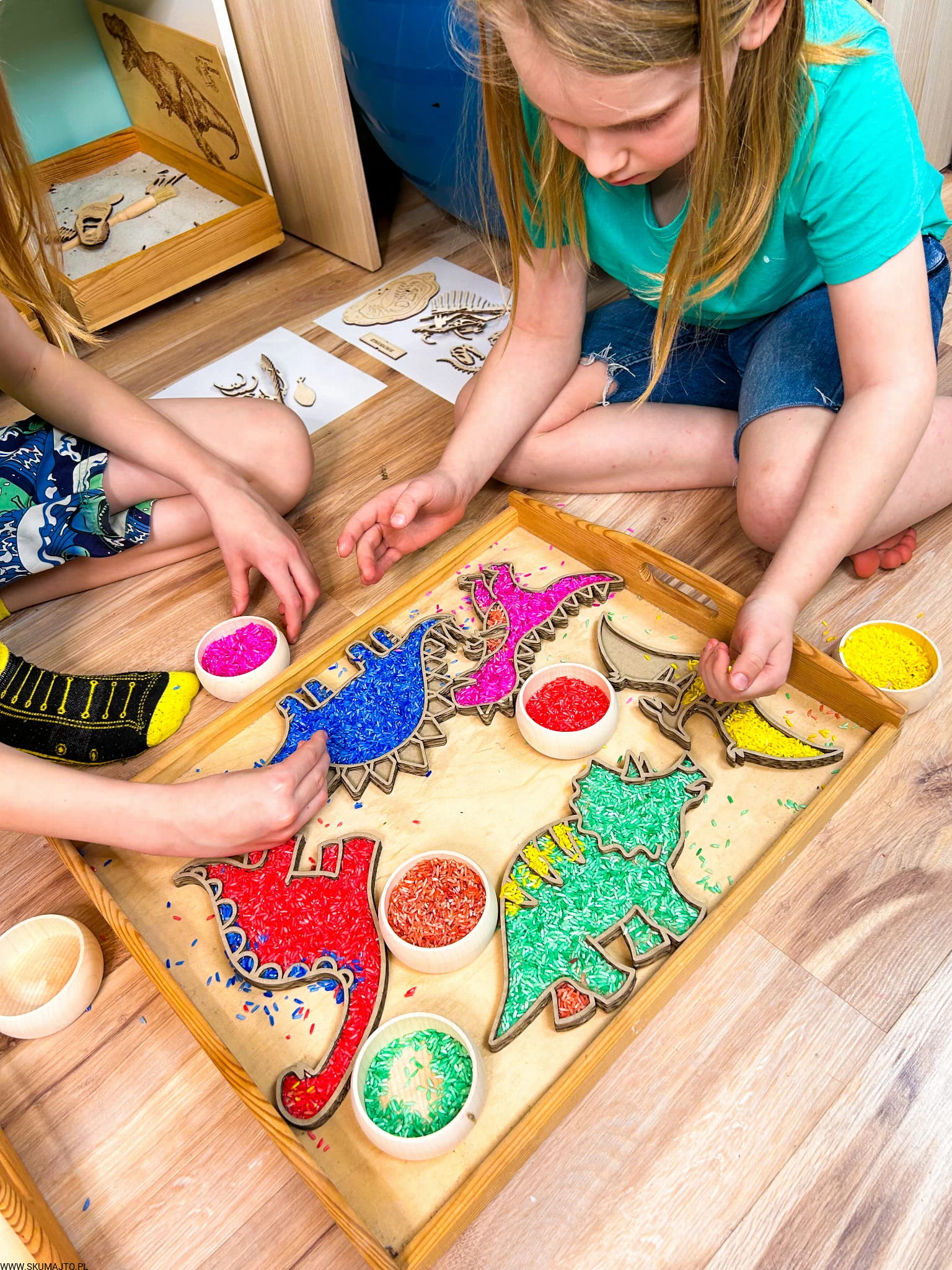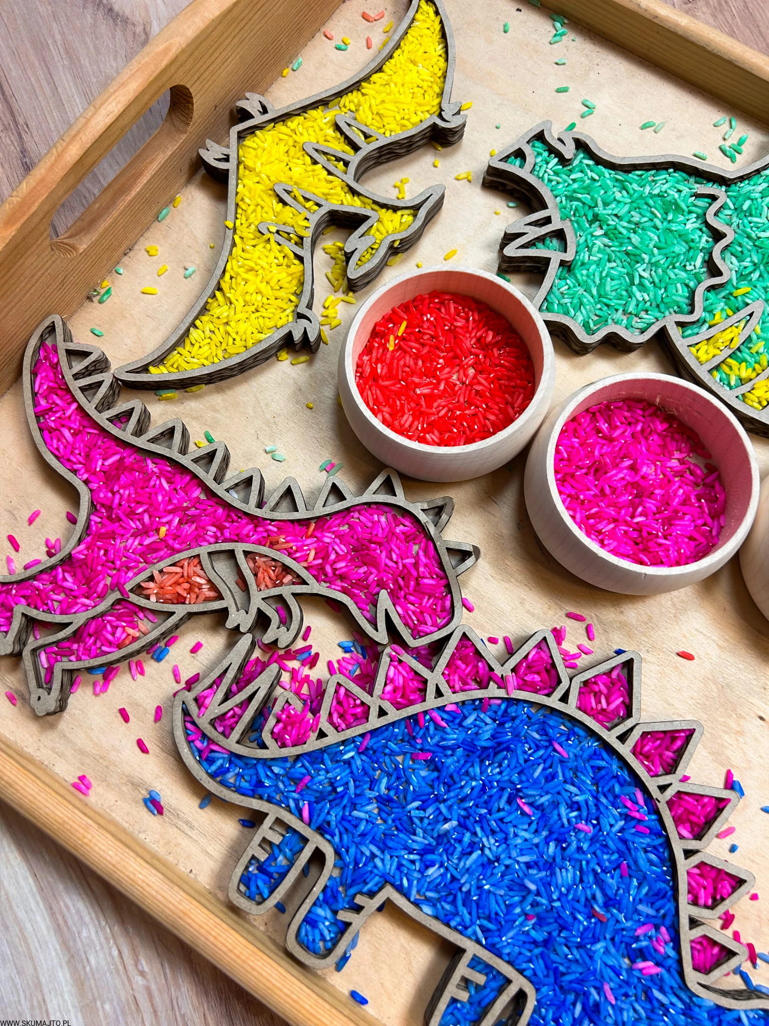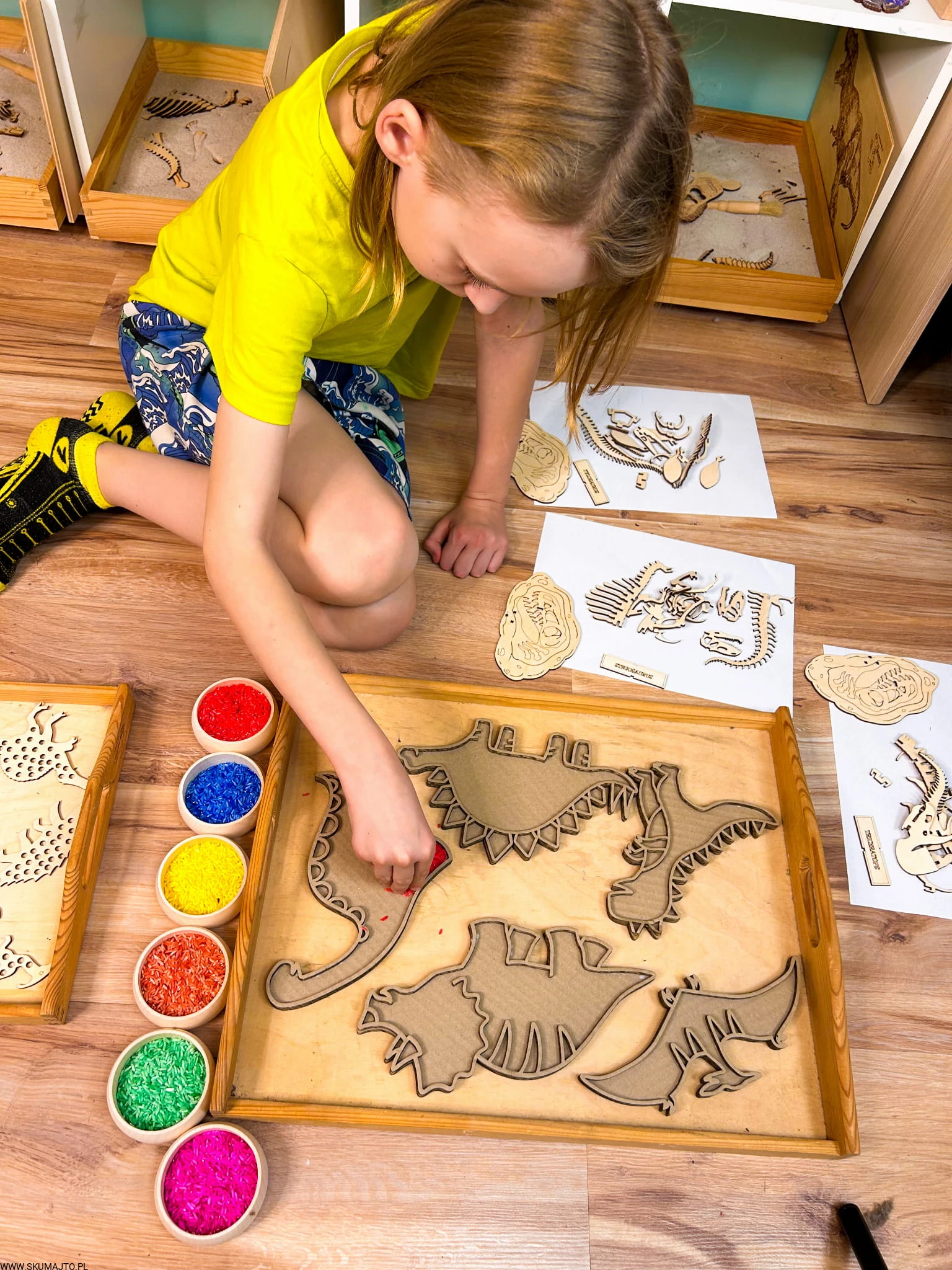 Zapraszamy do prehistorycznego świata z naszym zestawem "Dinozaurowe Sensorki" - wyjątkową kolekcją zabawek sensorycznych, która przeniesie Twoje dziecko w czasie do epoki dinozaurów! Ta starannie zaprojektowana kolekcja z kartonu, składająca się z pięciu wysypywanek przedstawiających różne gatunki dinozaurów, to idealny sposób na rozwijanie zmysłów dotyku, wzroku i koordynacji ręka-oko u dzieci w wieku przedszkolnym i szkolnym.