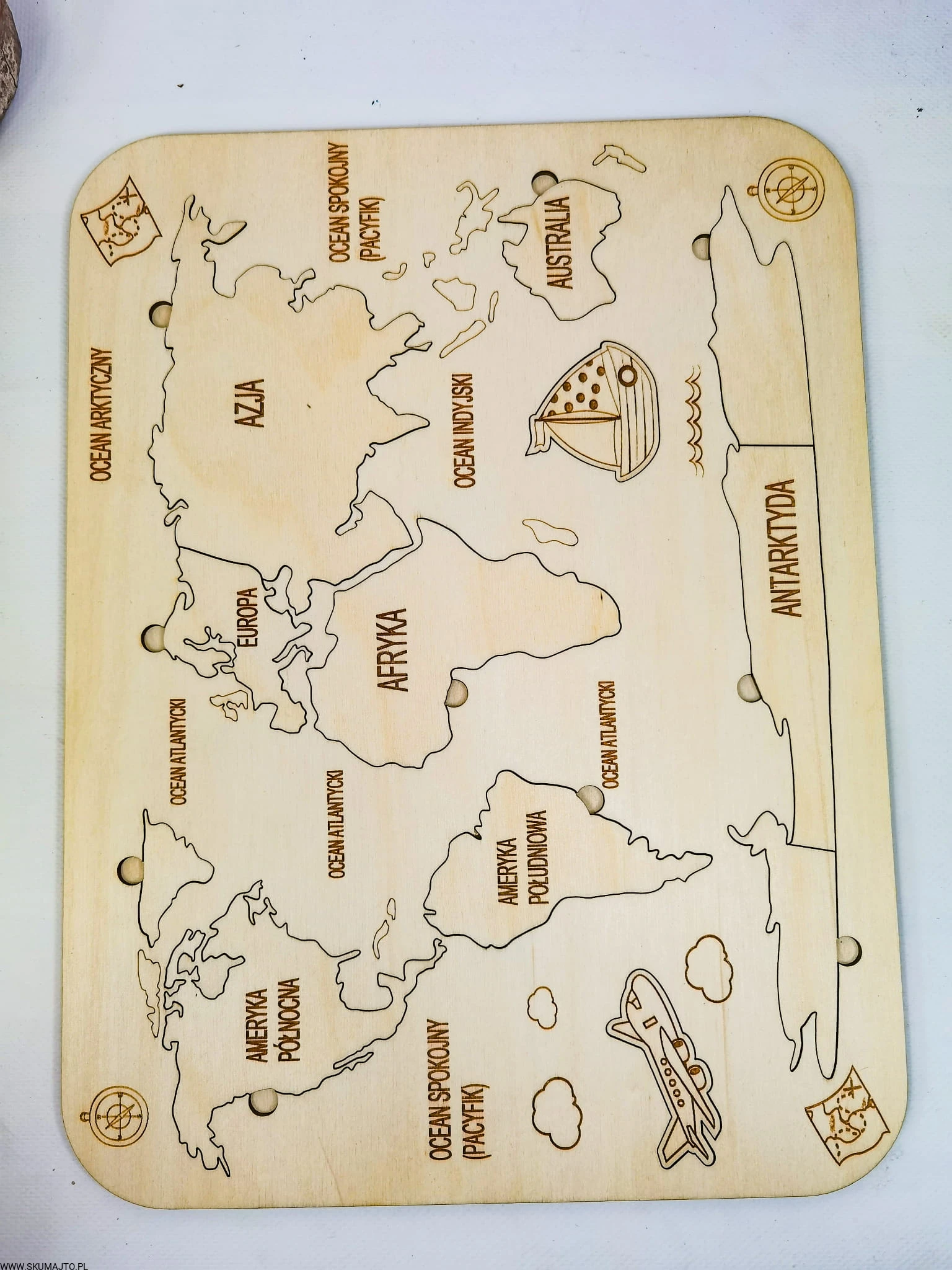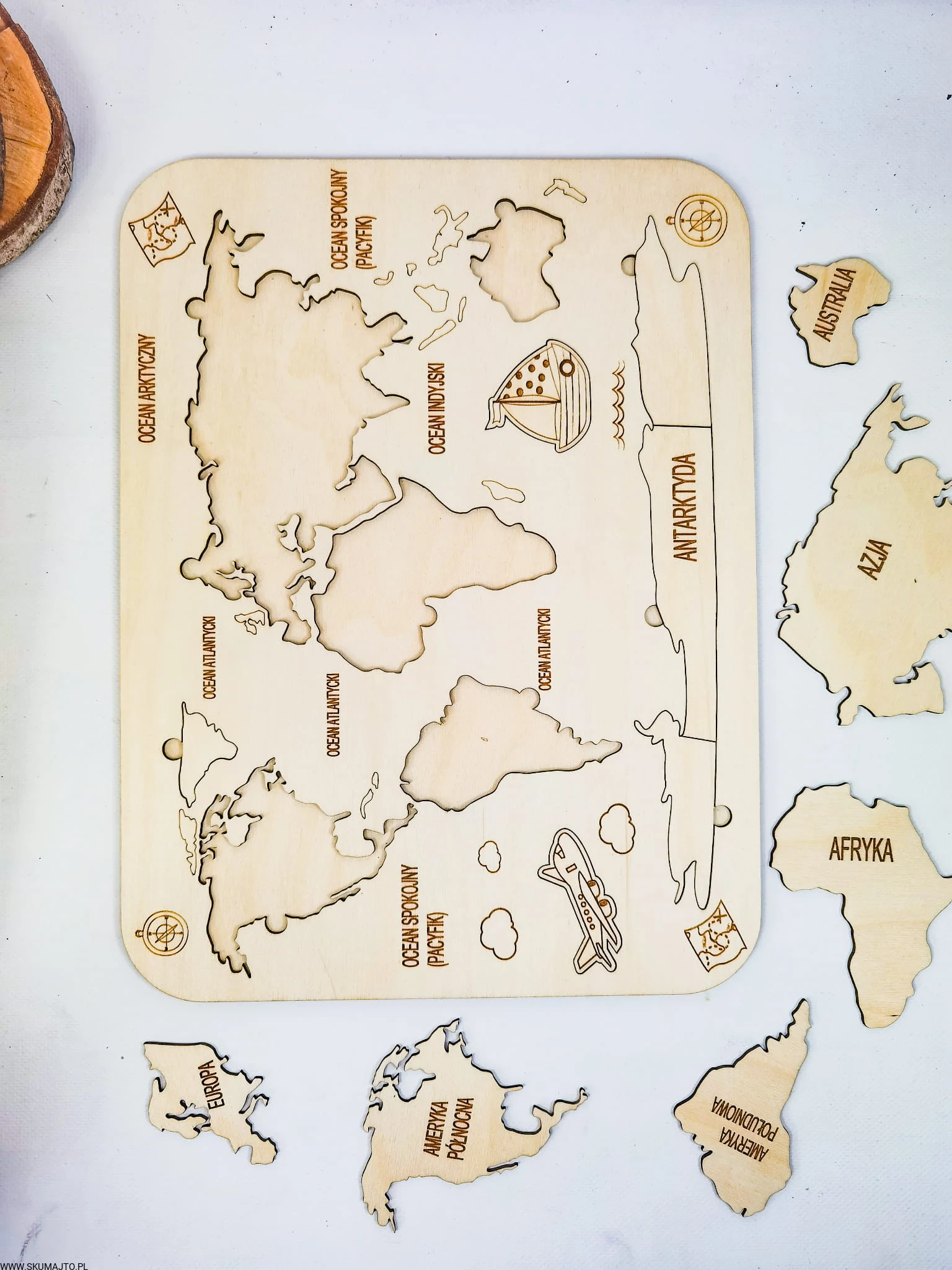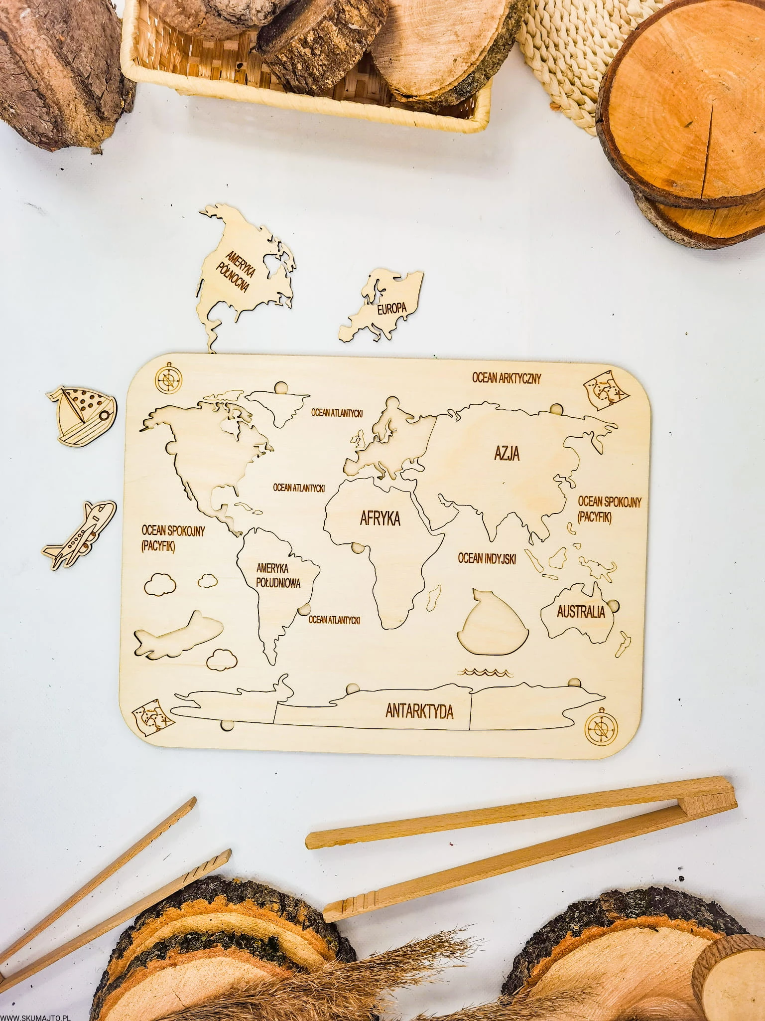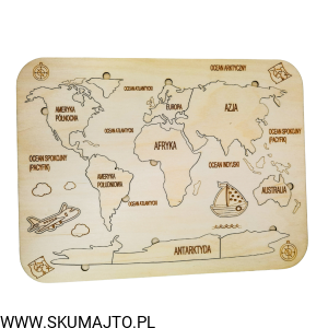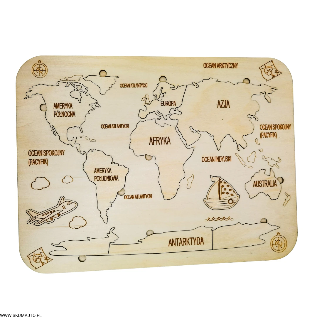 Drewniana Mapa Świata, drewniana mapa, nauka kontynentów